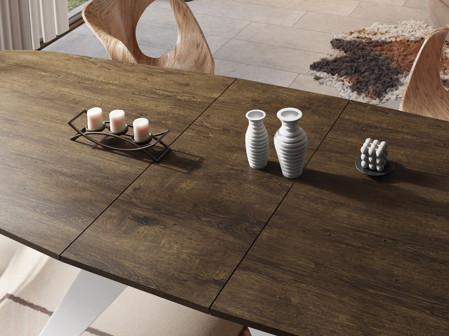 Erleben Sie modernes Design mit diesem hochwertigen, ausziehbaren Esstisch. Dank seiner stabilen Konstruktion und eleganten Optik eignet er sich ideal für stilvolle Essbereiche. Die ausziehbare Funktion macht ihn flexibel für unterschiedliche Anlässe.