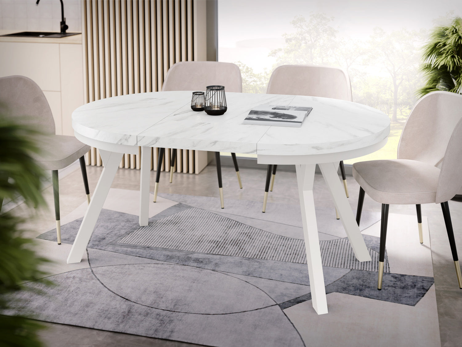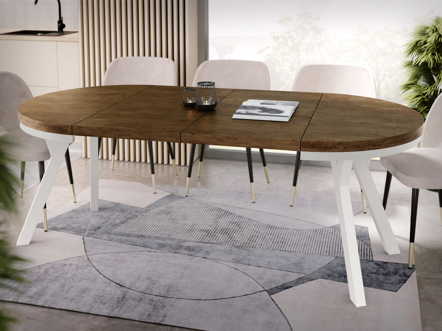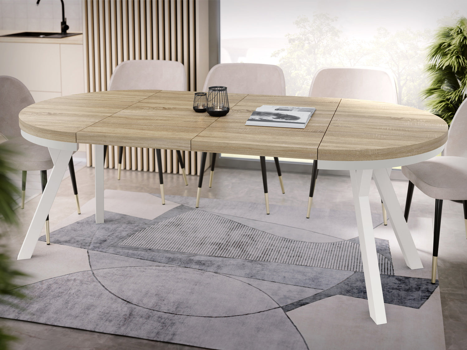 Erleben Sie moderne Eleganz mit unserem ausziehbaren Esstisch, der Funktionalität und stilvolles Design vereint.