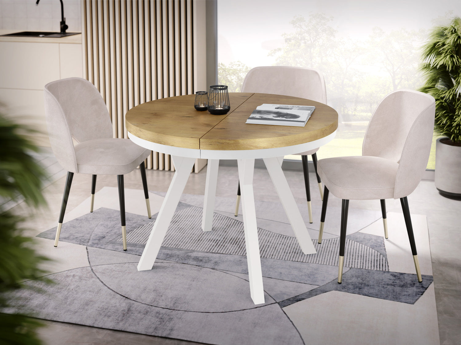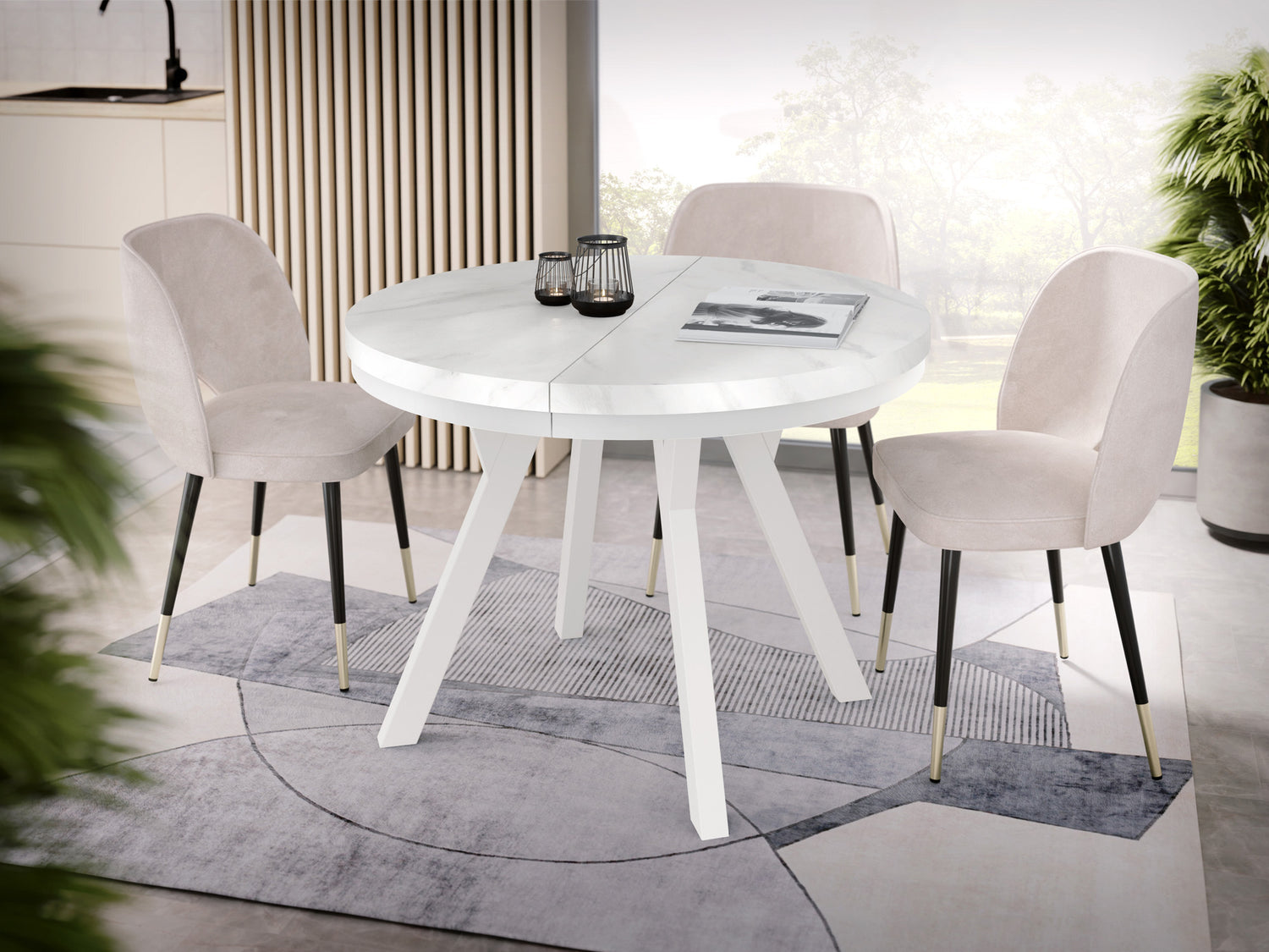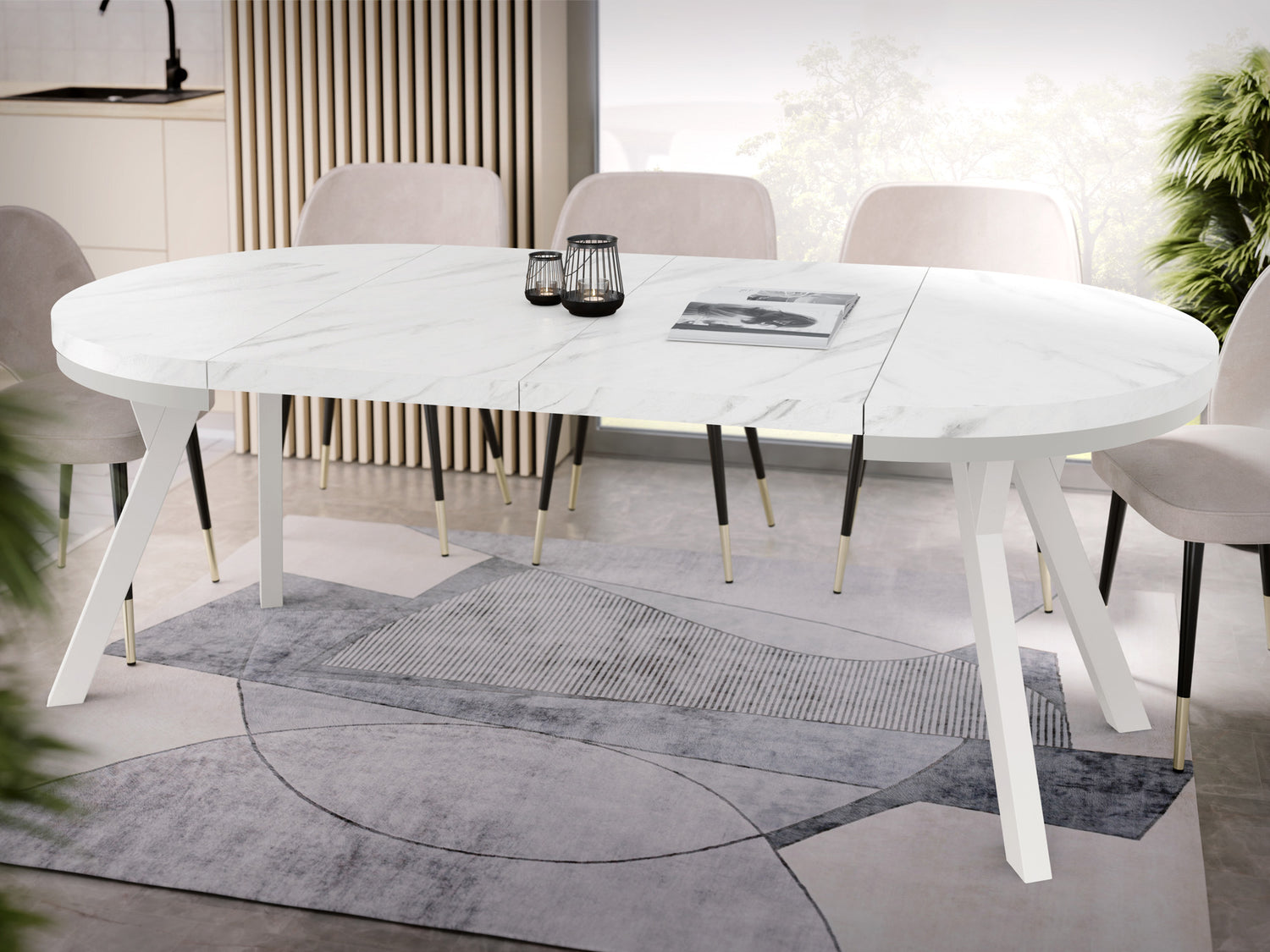 Erleben Sie moderne Eleganz mit unserem ausziehbaren Esstisch, der Funktionalität und stilvolles Design vereint.