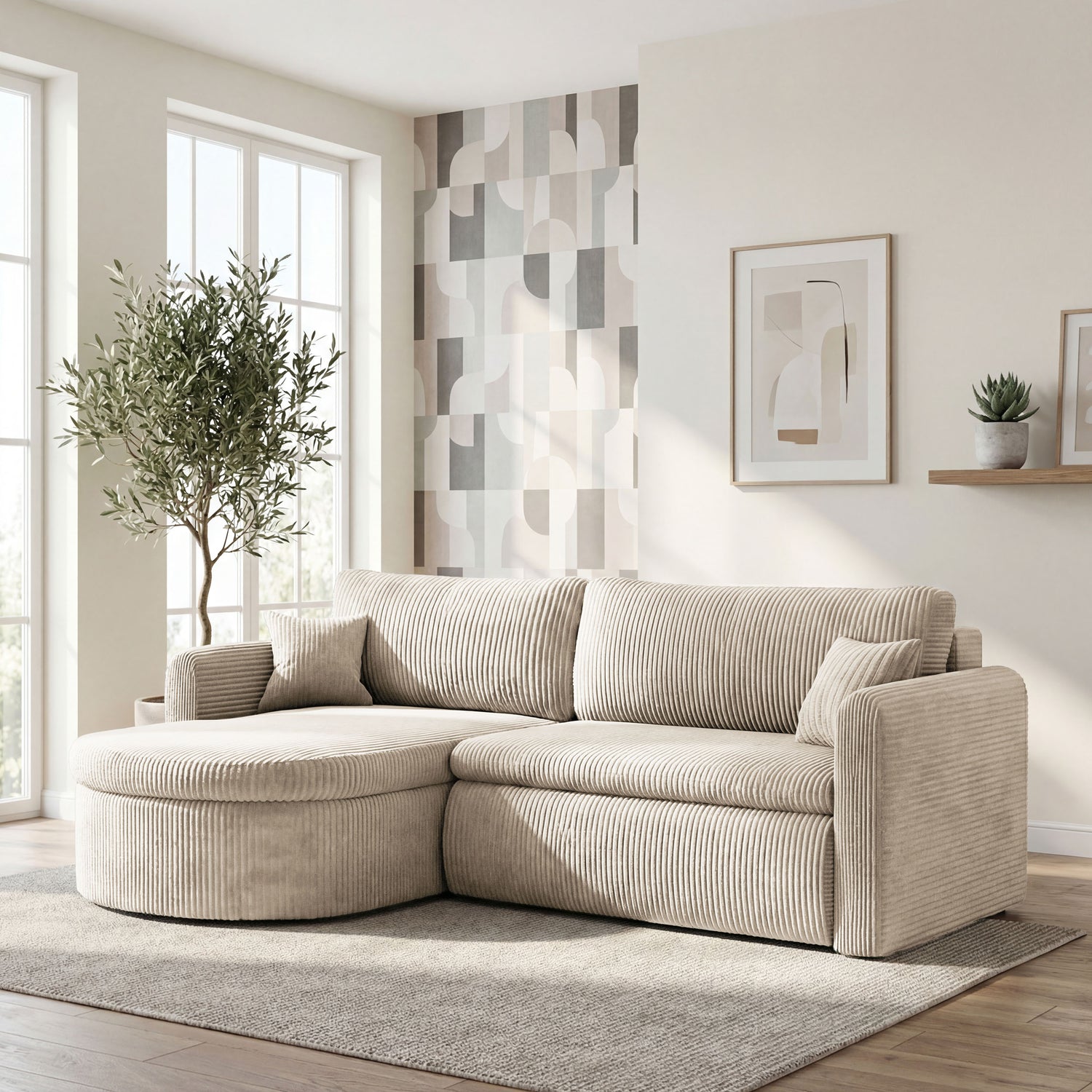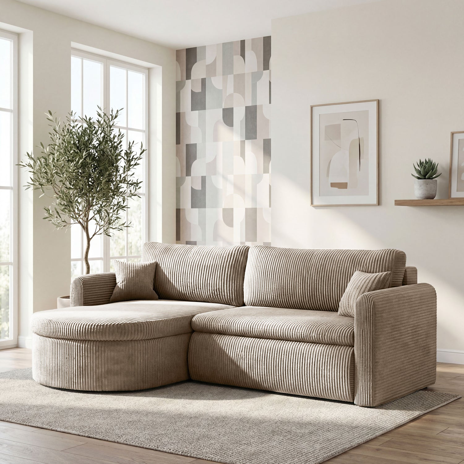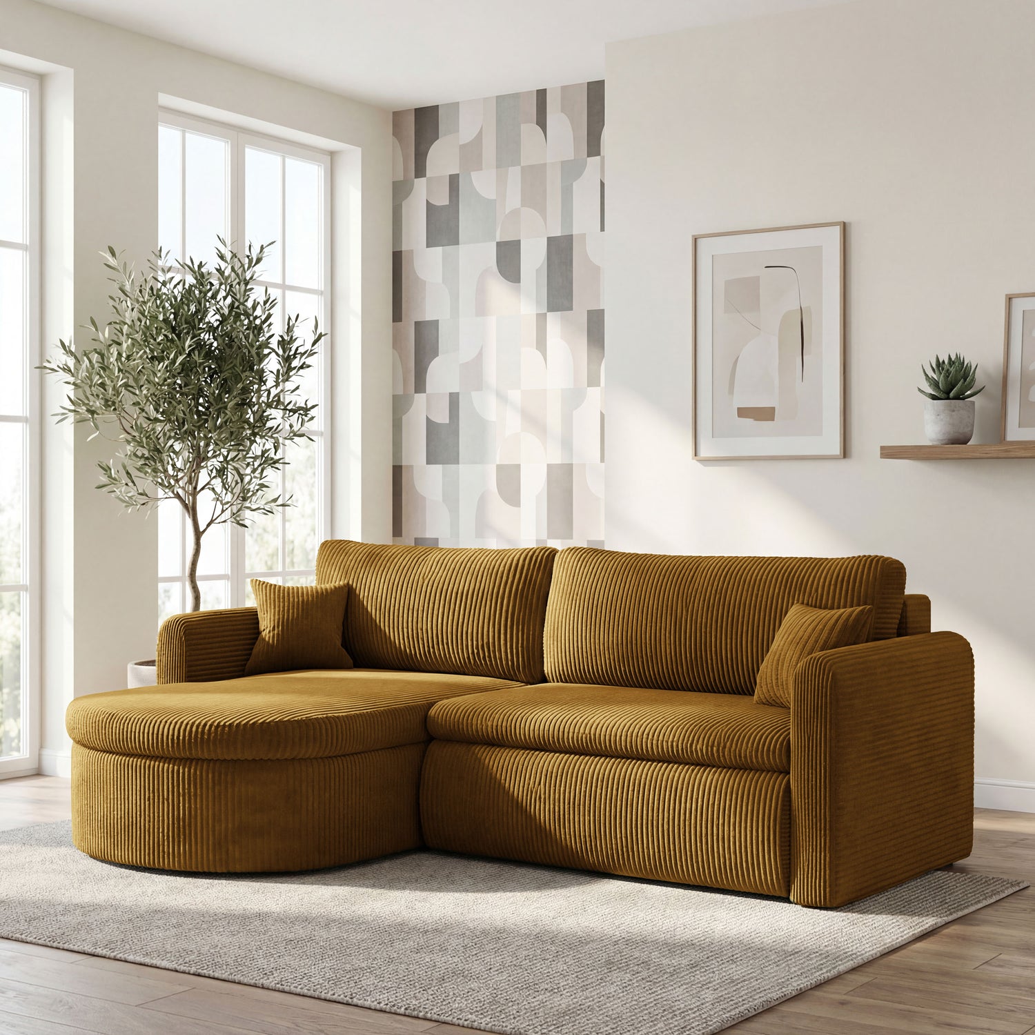 Cora – Freistehendes Ecksofa mit Schlaffunktion & Bettkasten