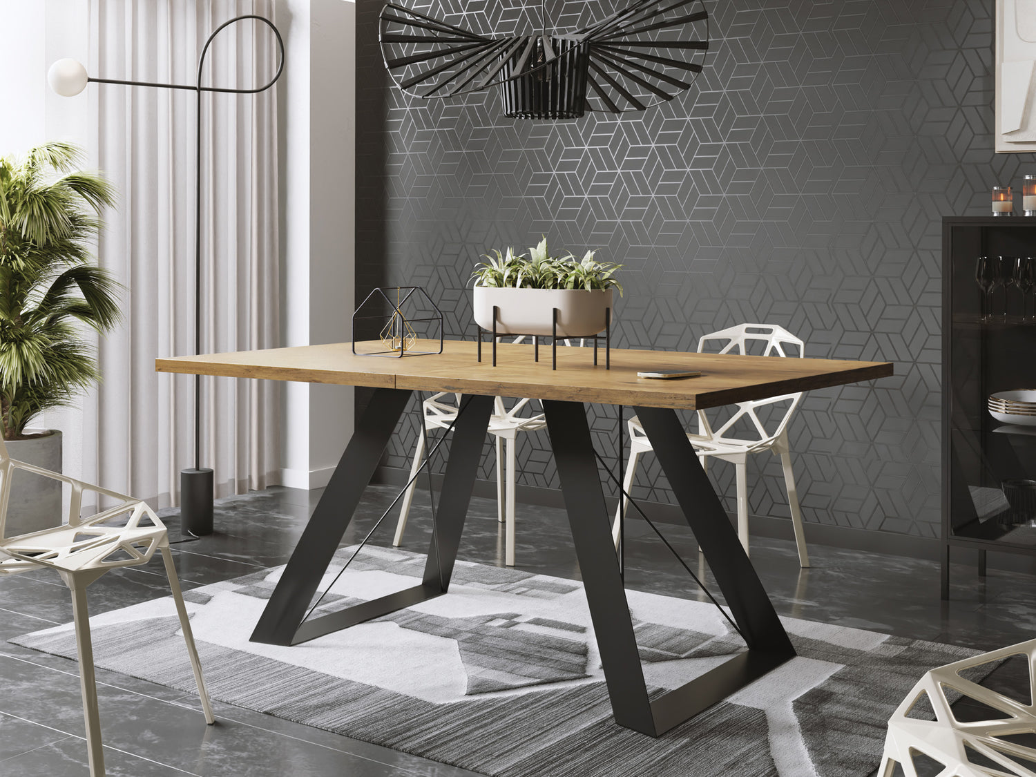 Jeder Tisch ist mit einer Reihe von Oberflächenausführungen erhältlich. Sie haben die Wahl zwischen authentisch wirkenden Holzdekoren, die ein natürliches Ambiente erzeugen, oder der raffinierten Marmoroptik, die Ihrem Esszimmer einen Hauch von Eleganz verleiht. Diese Dekore werden fachmännisch aus hochwertigen Spanplatten hergestellt, die eine lange Lebensdauer und eine hohe Widerstandsfähigkeit gegen die täglichen Belastungen gewährleisten.