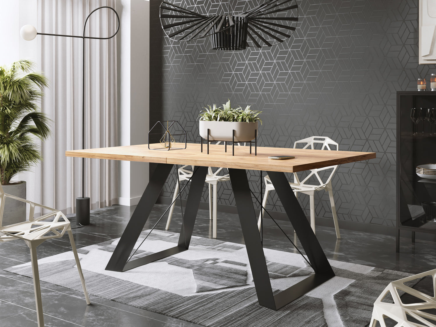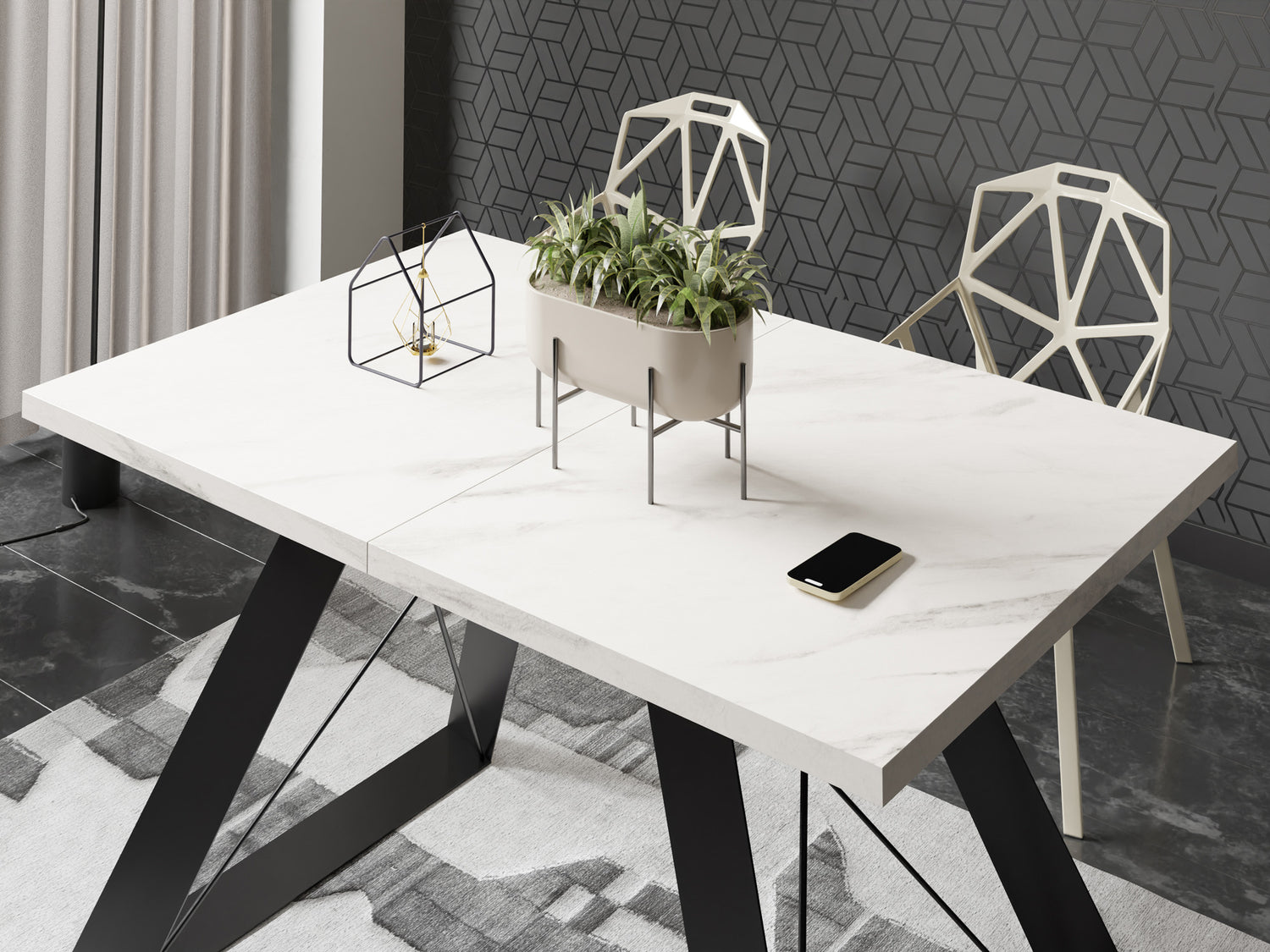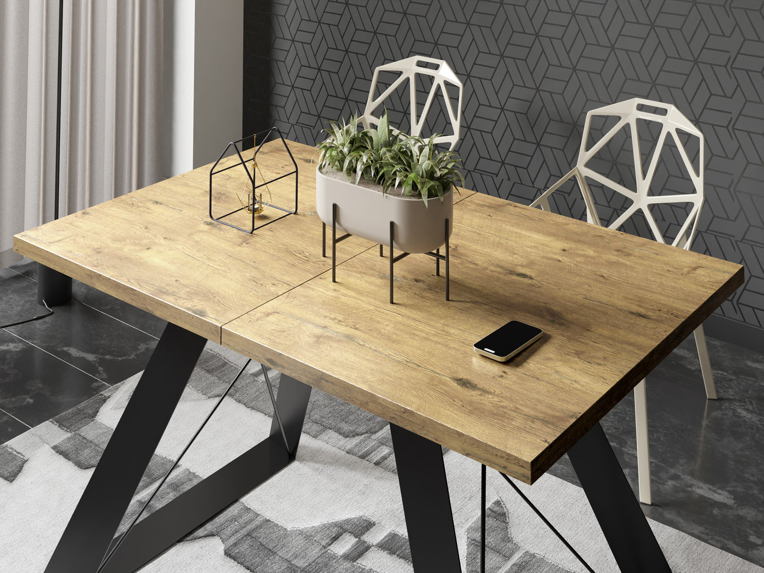EXTENDABLE DINING TABLE – This dining table offers flexibility for any space. With an extendable function, it adapts to your needs and seamlessly integrates into any room, making it ideal for both intimate gatherings and larger dinner parties.