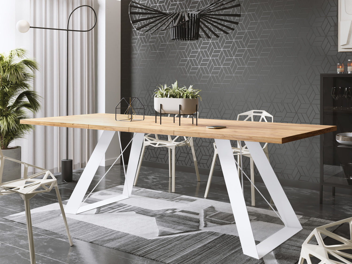 AUSZIEHBARER ESSTISCH – Dieser Esstisch bietet Flexibilität für jeden Raum. Mit einer ausziehbaren Tischplatte ist er perfekt für große Dinnerpartys oder intime Familienessen