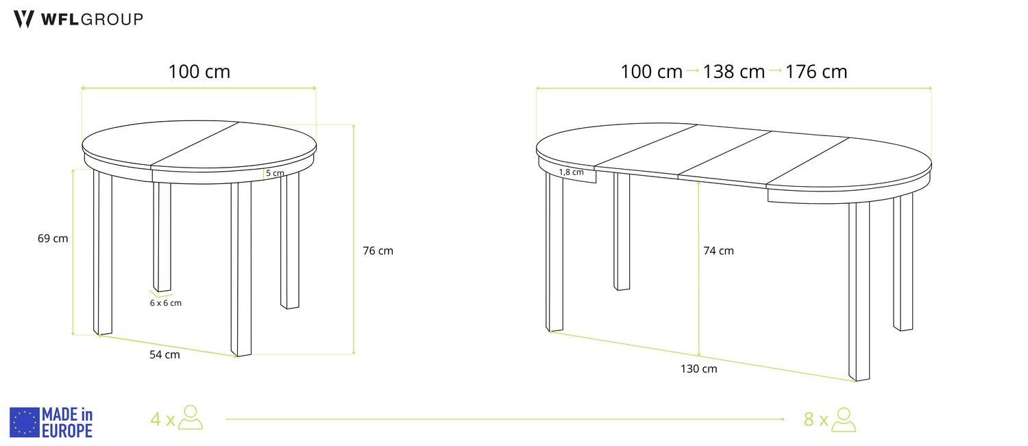 FLEXIBLE THANKS TO EXTENSION FUNCTION – Whether everyday use or guests – the table can be extended in seconds from 100 cm to 180 cm, offering space for 2-8 people