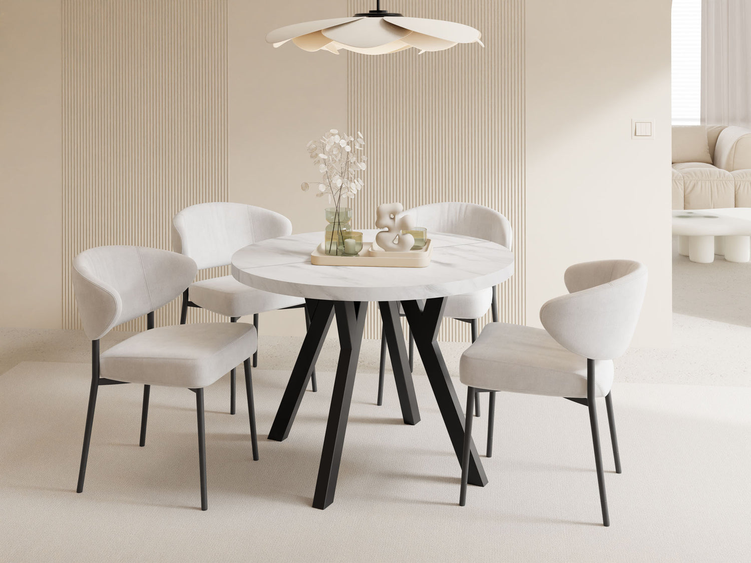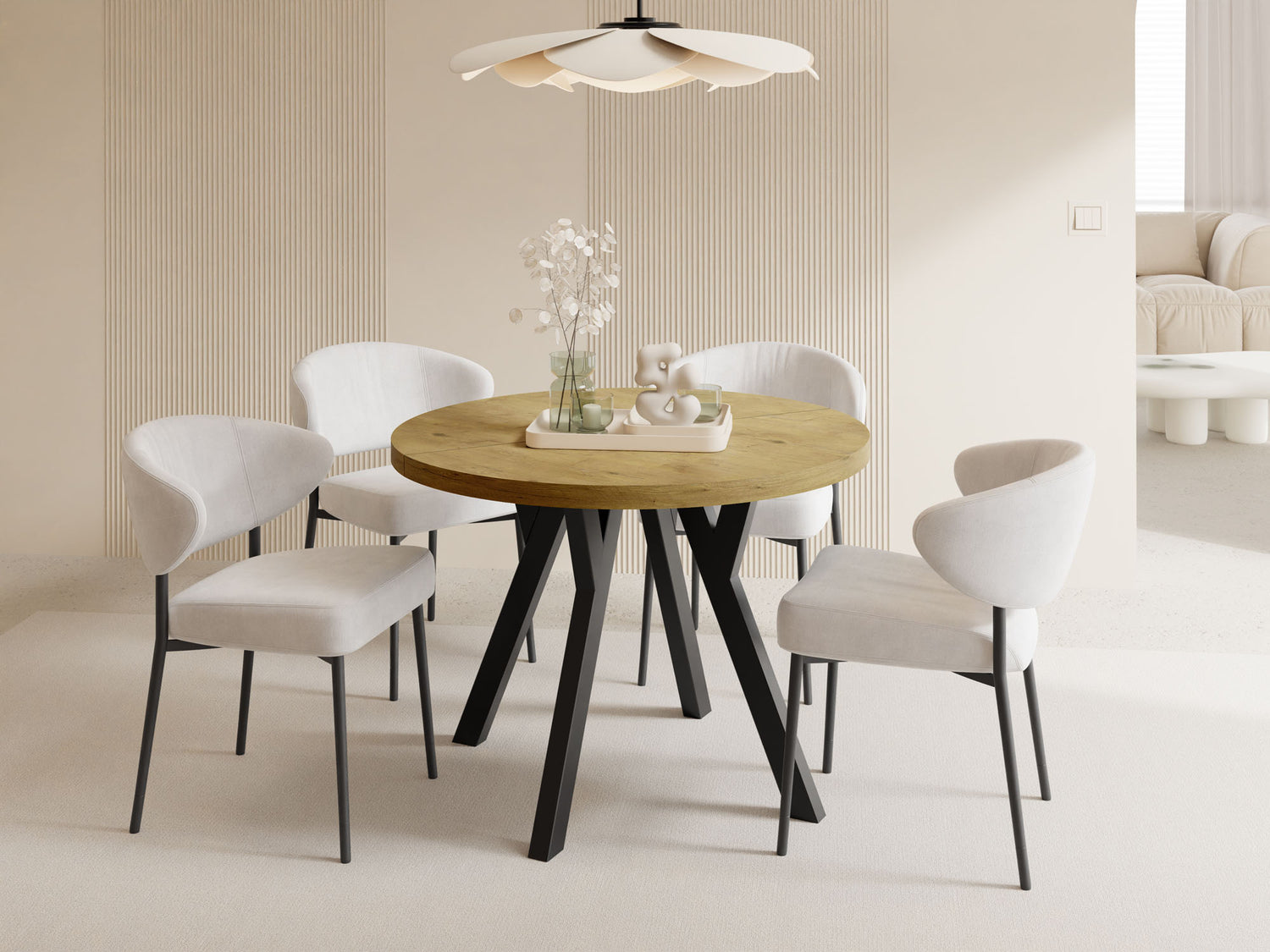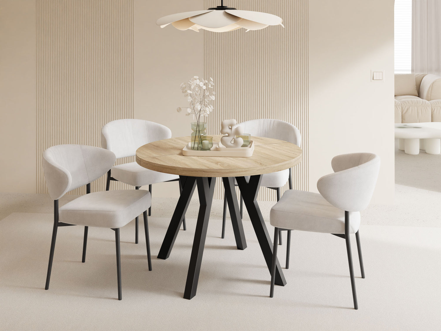 MODERN – Runder Esstisch mit klarer, ausgewogener Silhouette und zeitloser Anmutung. Das reduzierte Design setzt ein elegantes Statement und fügt sich mühelos in moderne, skandinavische oder industrielle Interieurs ein – der stilvolle Mittelpunkt in Küche und Esszimmer