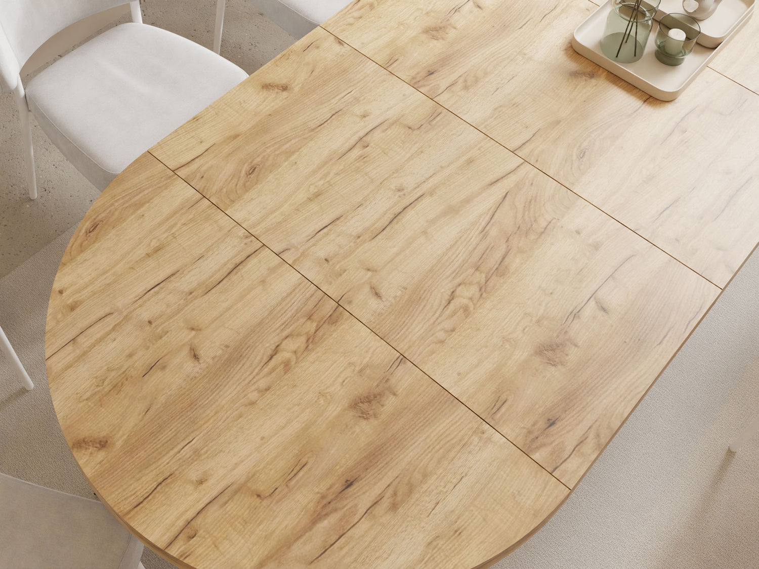 PRAKTISCH – Der Tisch ist ausziehbar von 100 cm Durchmesser auf 250 cm oder 300 cm und bietet ausreichend Platz für 5 bis 14 Personen (100 / 250 cm) oder für 5 bis 16 Personen (100 / 300 cm), die bequem Platz nehmen können. Dies macht ihn perfekt für Dinnerpartys oder Familientreffen