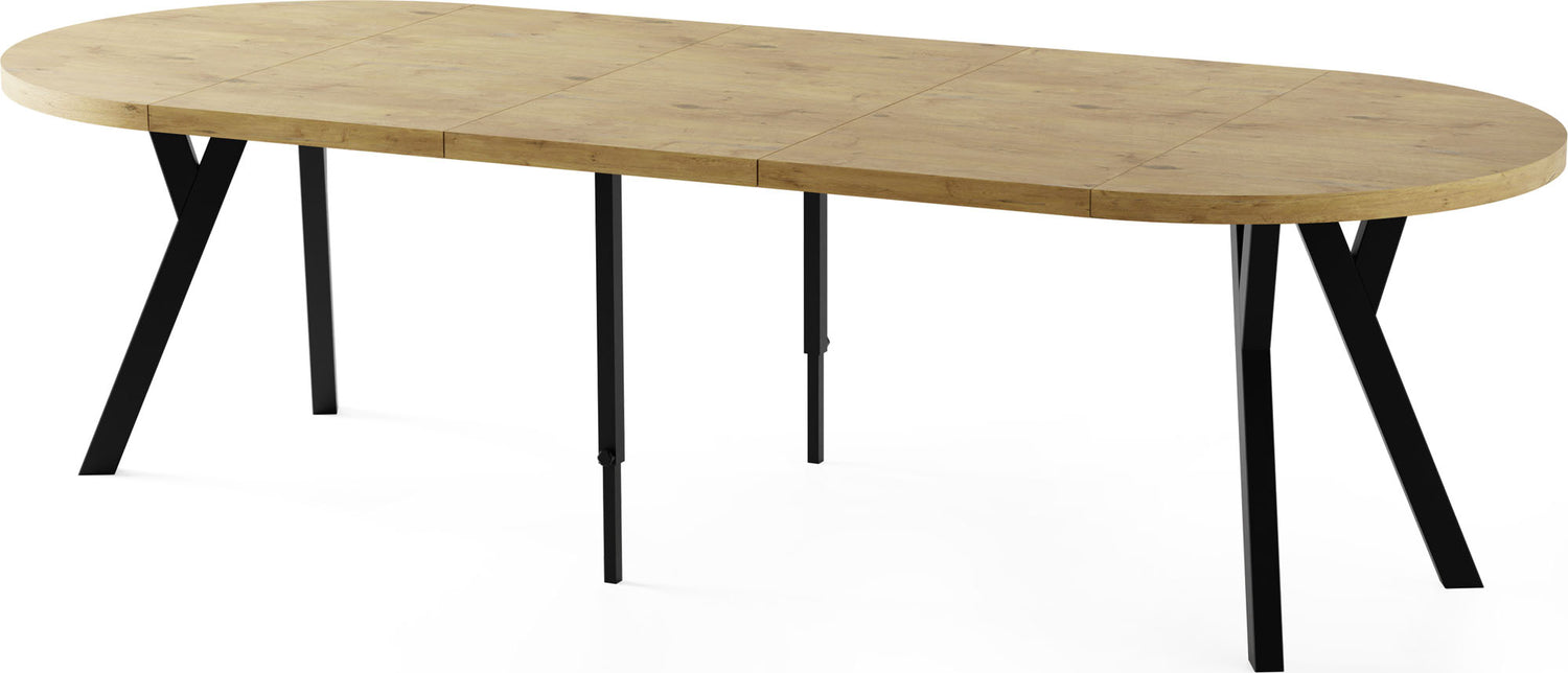 – 100/250 cm – Durchmesser: 100 cm, Höhe: 76 cm (Platte erweiterbar auf 250 cm; zusätzliche Tischplatte 3 x 50 cm)