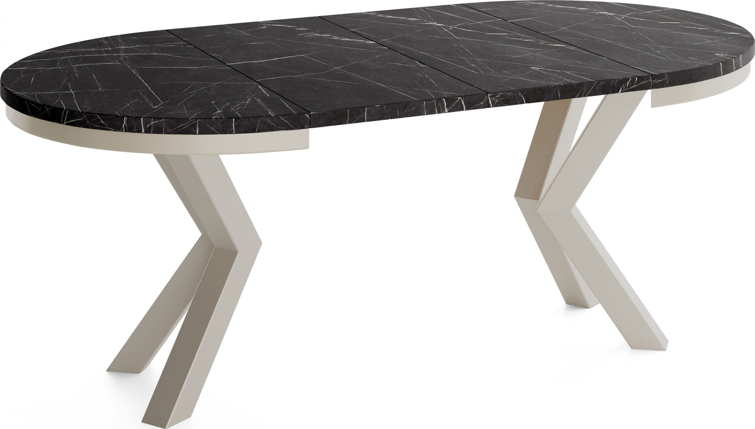 SKANDINAVISCHES X-GESTELL – Das charakteristische, grau-beige Stahlgestell in X-Form sorgt nicht nur für optimale Stabilität, sondern verleiht dem Tisch auch eine moderne, skandinavische Note