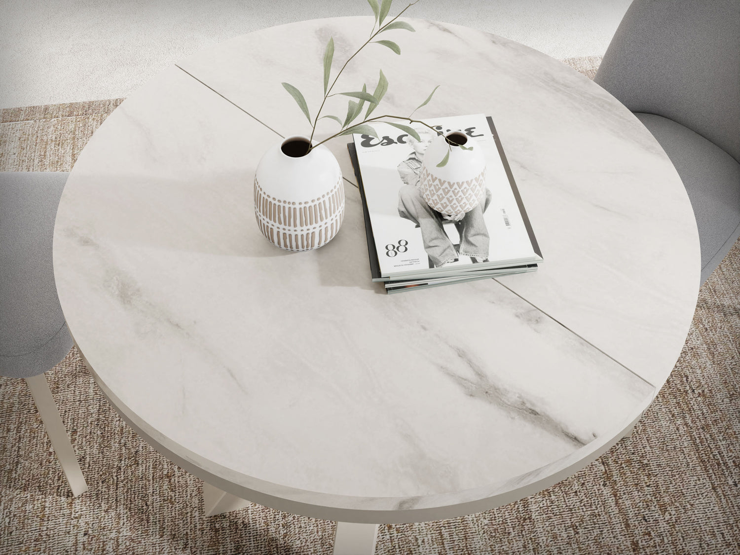 AUSZIEHBARER KOMFORT – Der Tisch ist in zwei Größen erhältlich: 100 cm und 120 cm Durchmesser, ausziehbar auf bis zu 180 cm und 200 cm. Ideal für Dinnerpartys und Familientreffen, bietet er Platz für 8 bis 10 Personen in der größeren Version