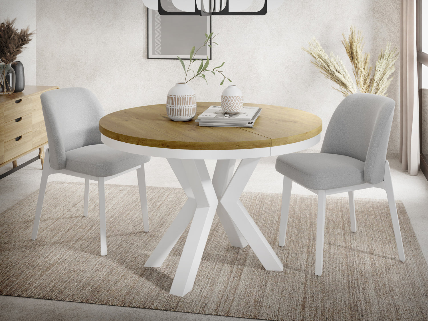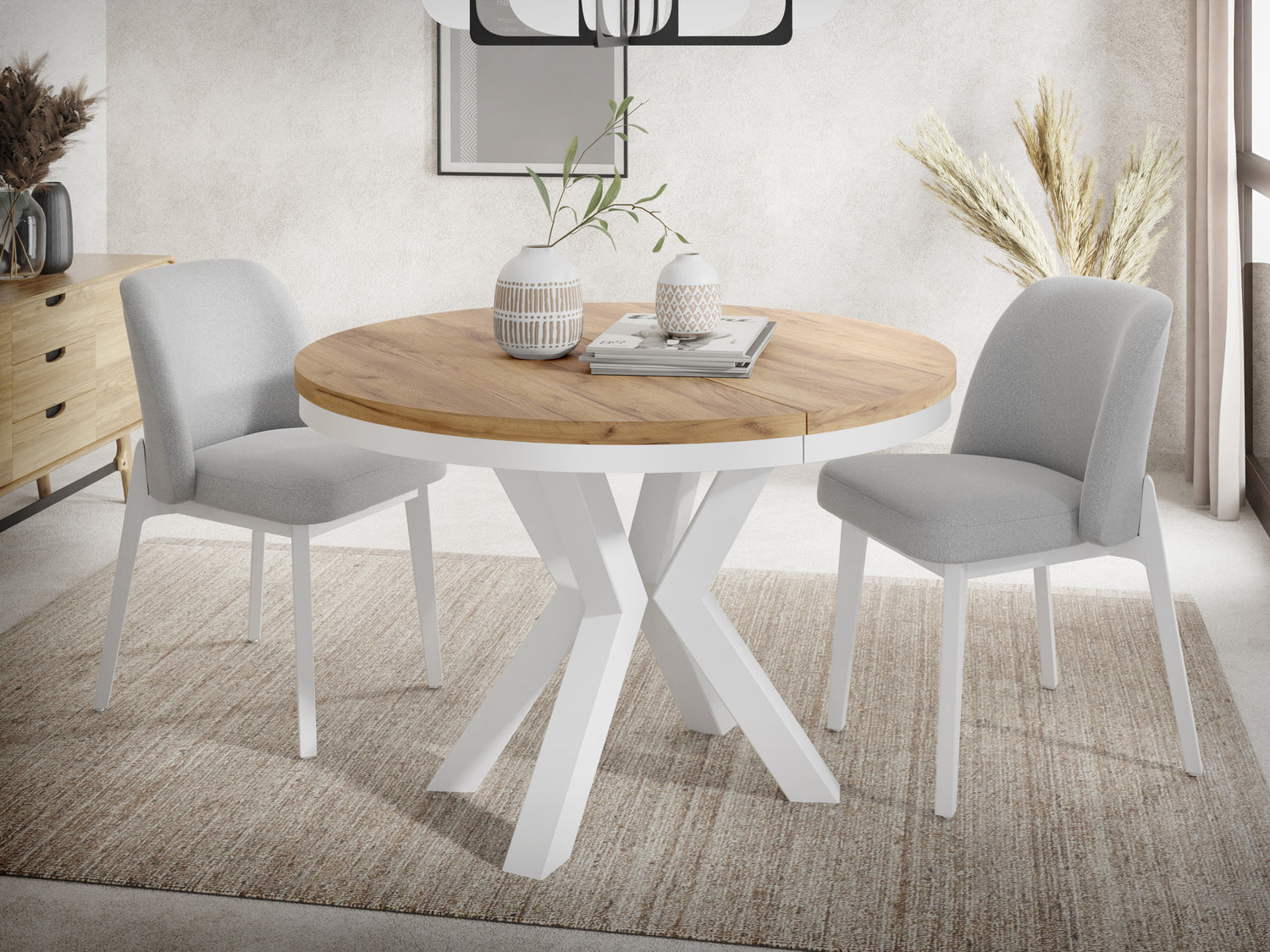 AUSZIEHBARER KOMFORT – Der Tisch ist in zwei Größen erhältlich: 100 cm und 120 cm Durchmesser, ausziehbar auf bis zu 180 cm und 200 cm. Ideal für Dinnerpartys und Familientreffen, bietet er Platz für 8 bis 10 Personen in der größeren Version