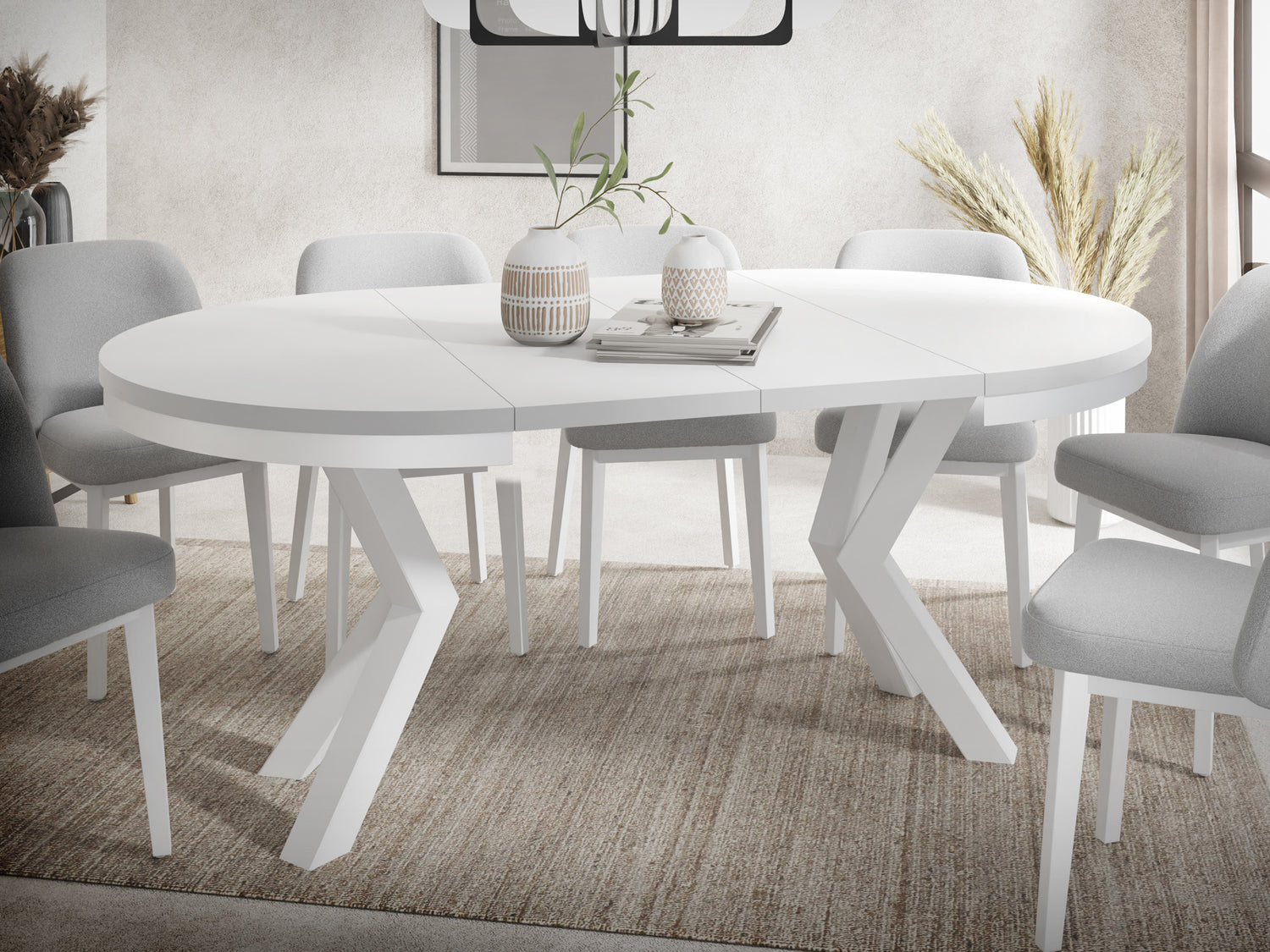 SKANDINAVISCHES X-GESTELL – Das charakteristische, weiße Stahlgestell in X-Form sorgt nicht nur für optimale Stabilität, sondern verleiht dem Tisch auch eine moderne, skandinavische Note