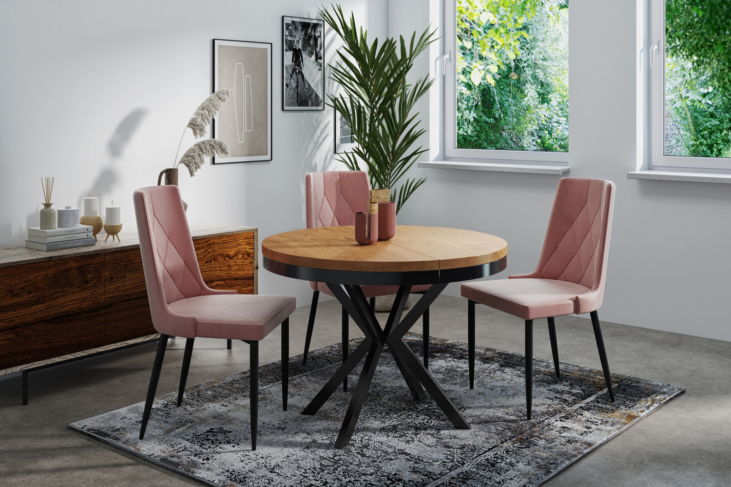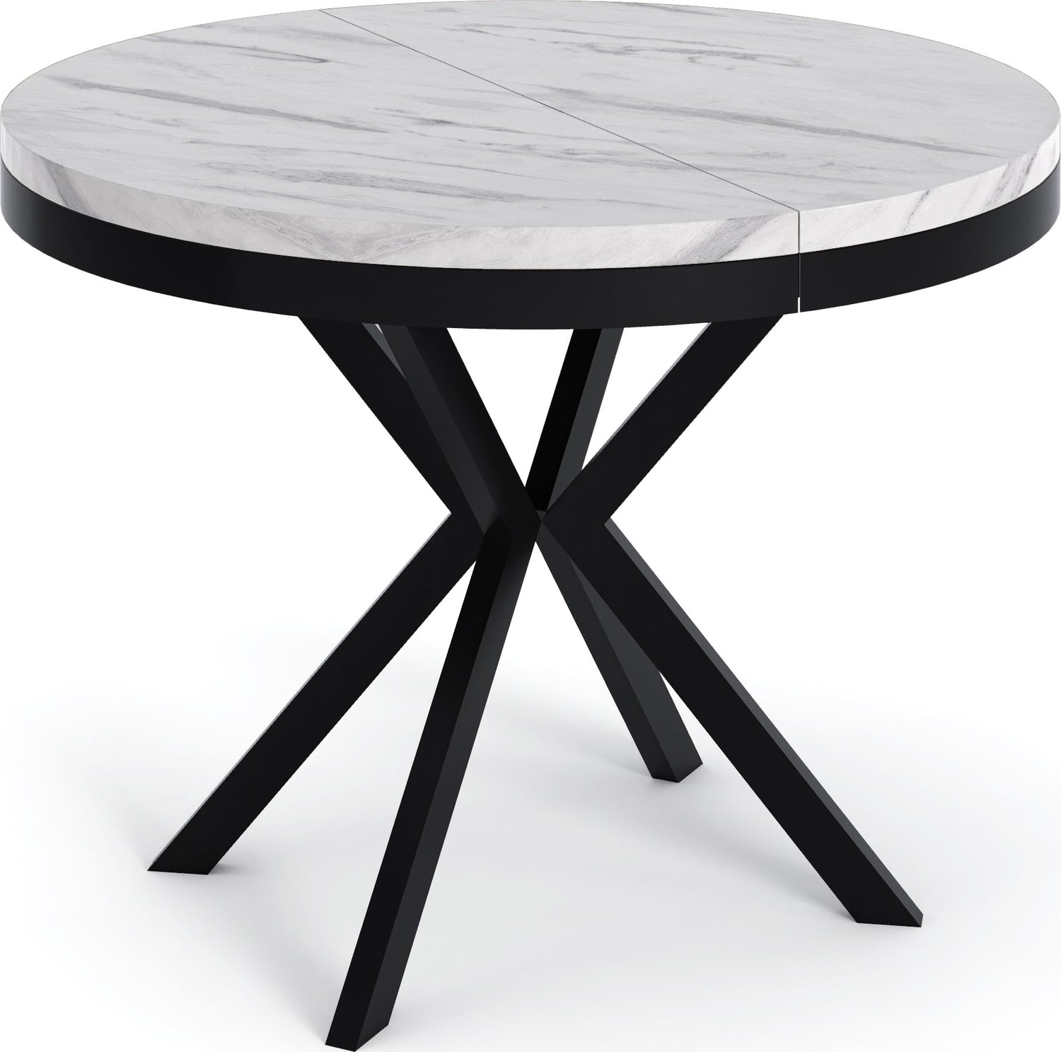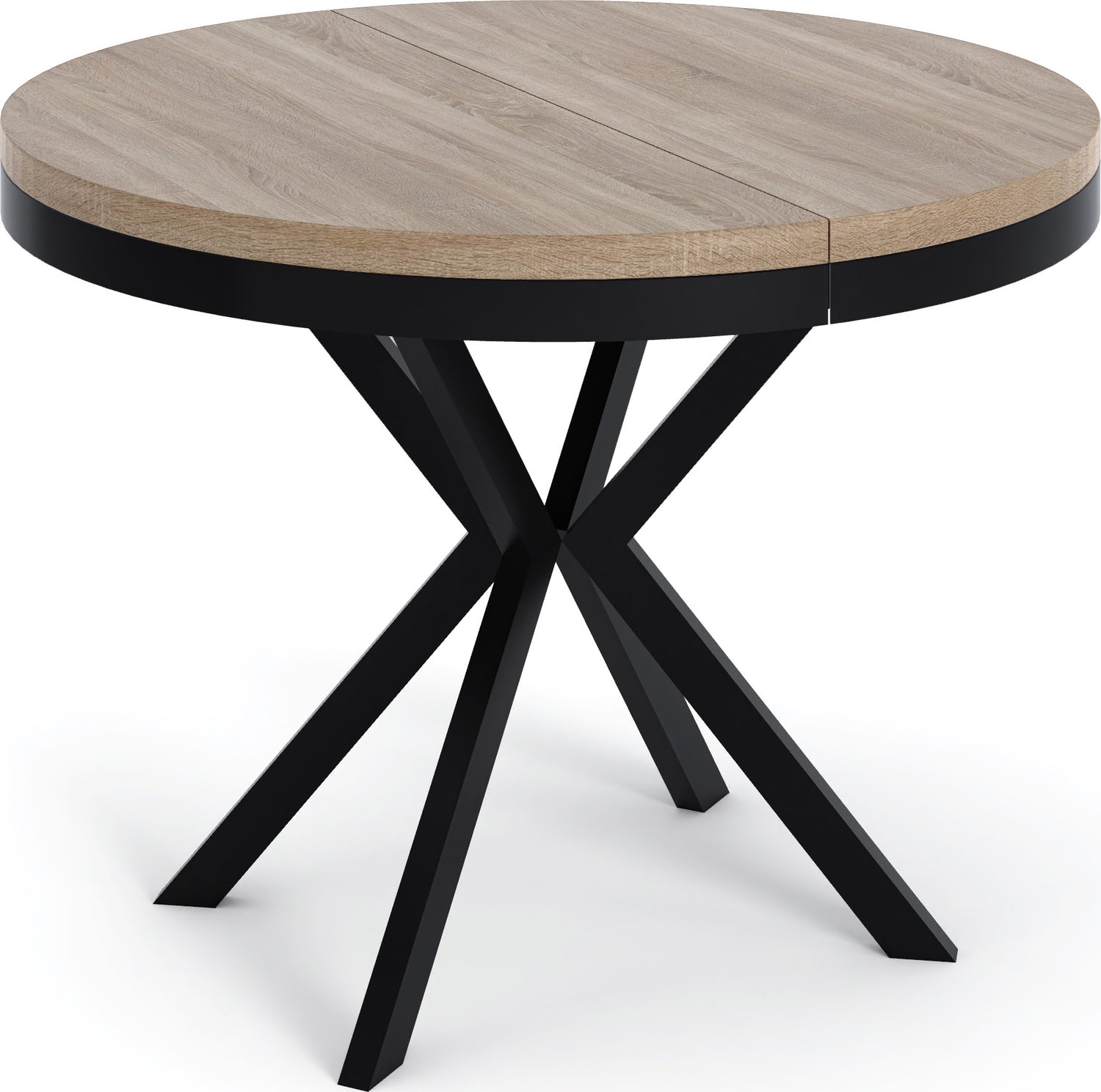 Eleganz und Funktionalität in einem - Der Ross Esstisch vereint modernes Design mit praktischer Funktionalität. Die runde Form und das markante X-Gestell in schwarzen schaffen einen zeitlosen Look, der sich harmonisch in Ihr Zuhause einfügt.