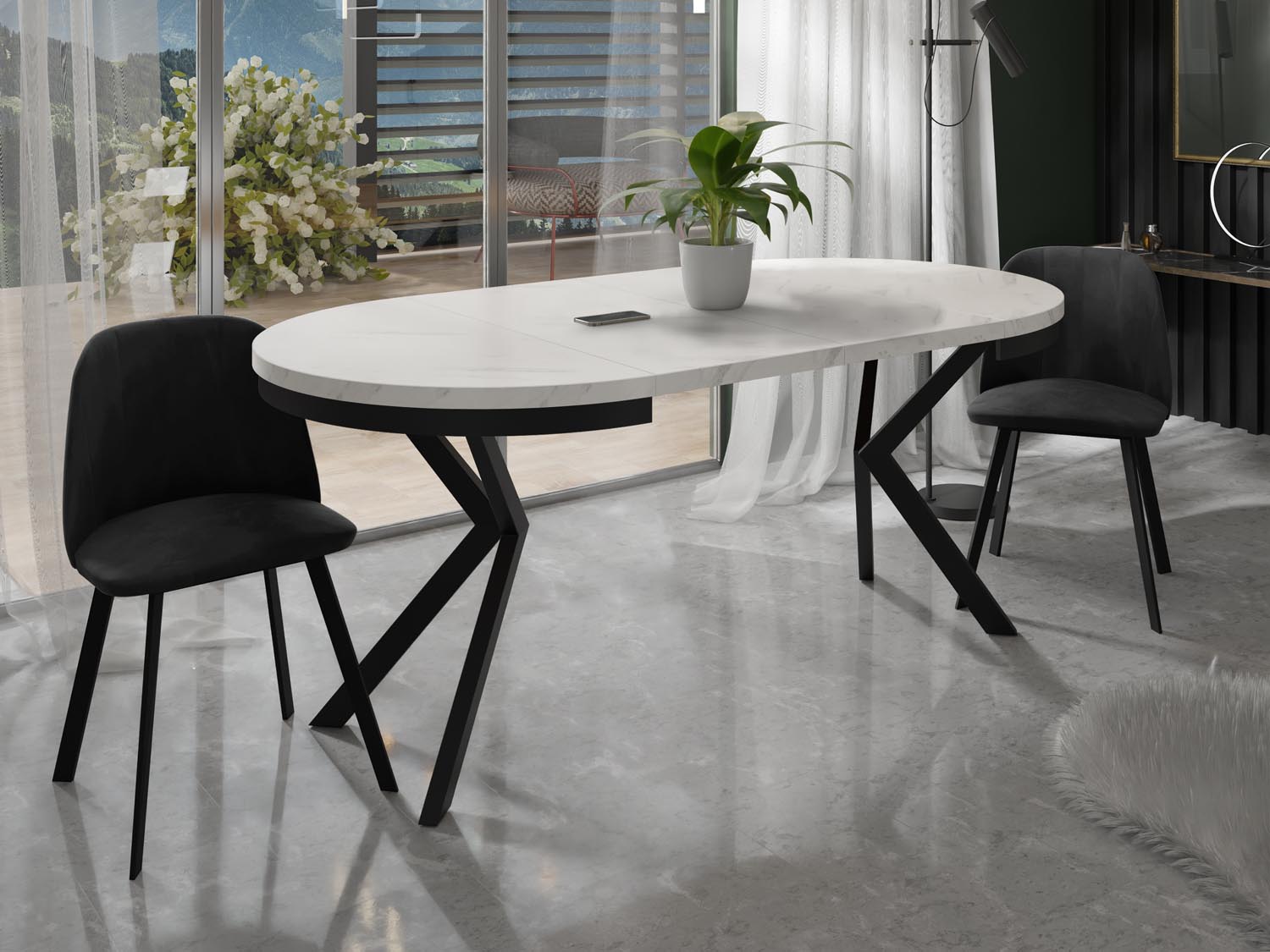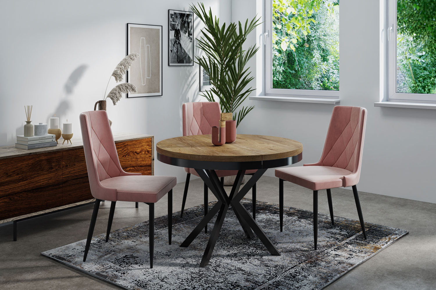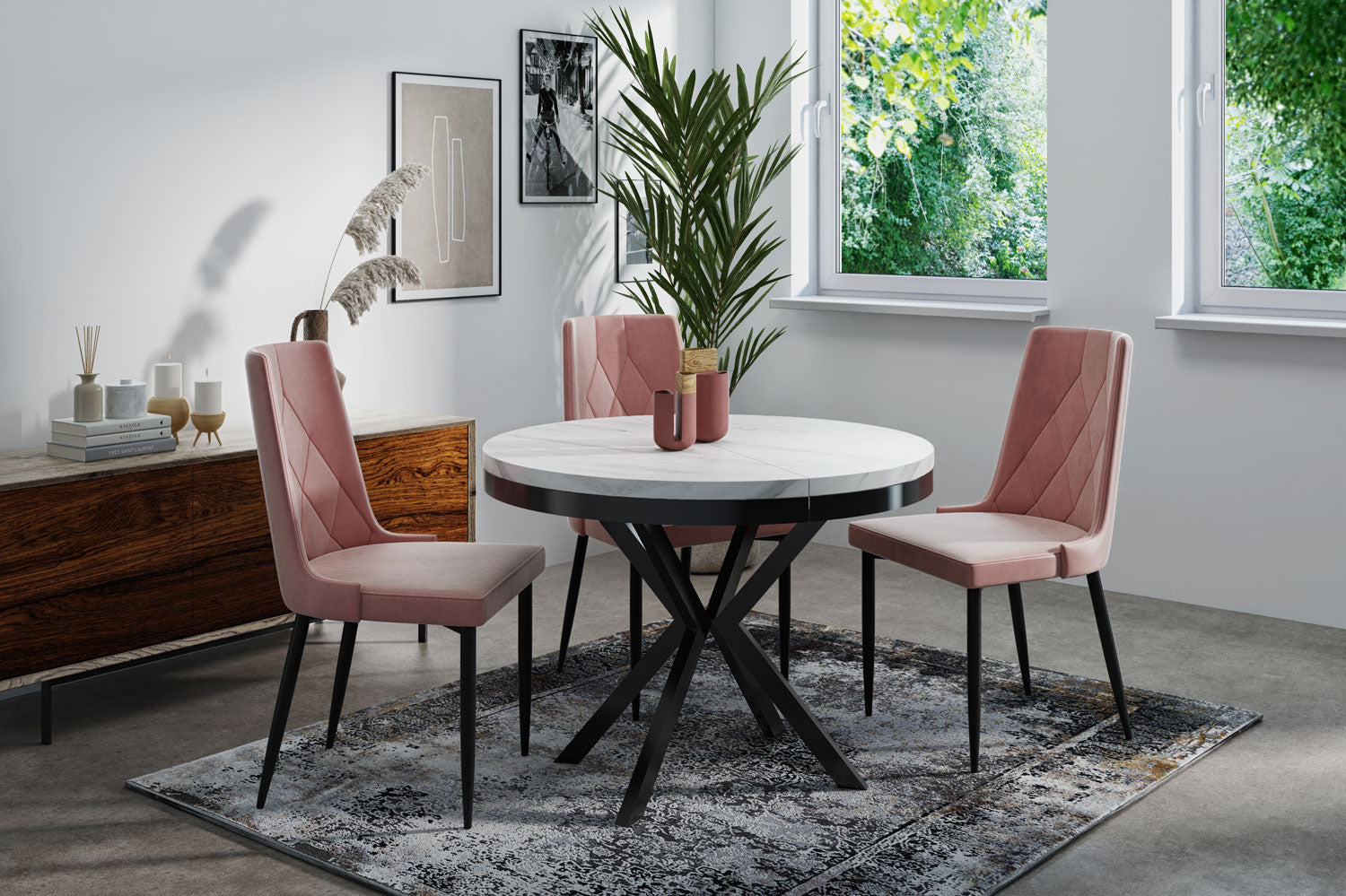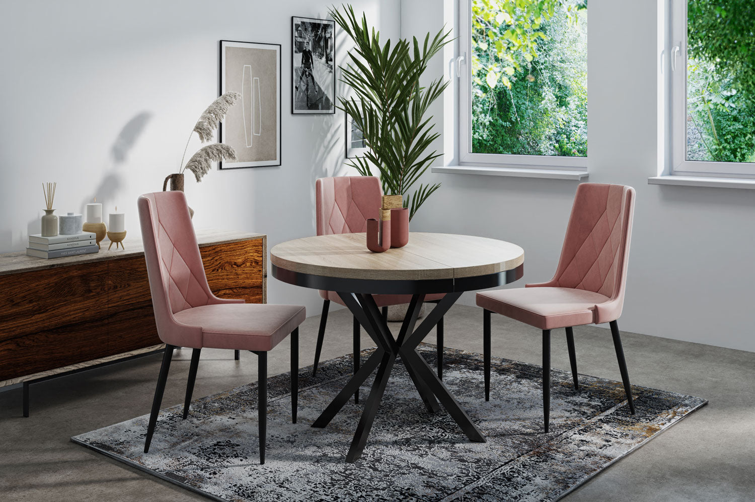 Eleganz und Funktionalität in einem - Der Ross Esstisch vereint modernes Design mit praktischer Funktionalität. Die runde Form und das markante X-Gestell in schwarzen schaffen einen zeitlosen Look, der sich harmonisch in Ihr Zuhause einfügt.