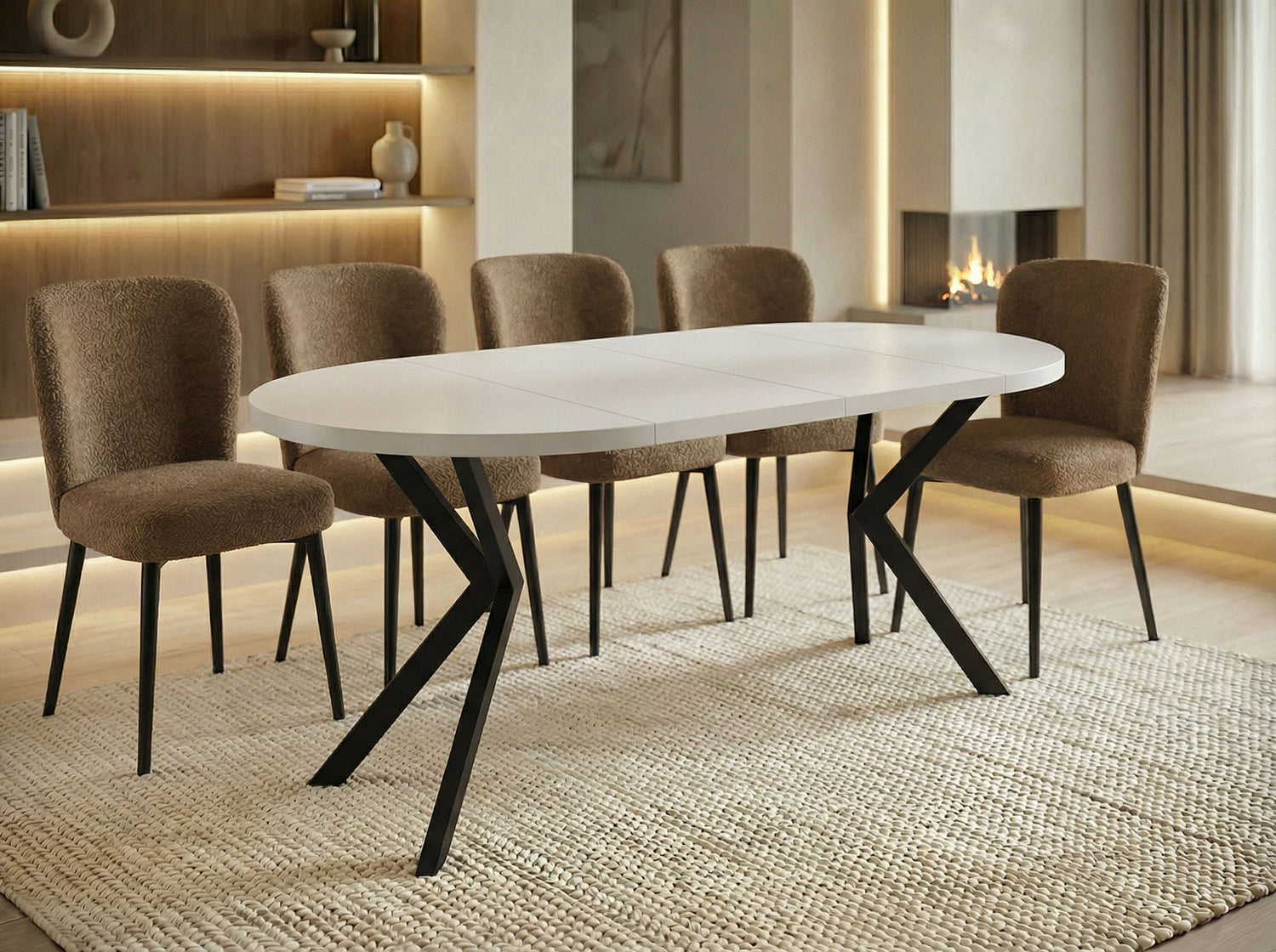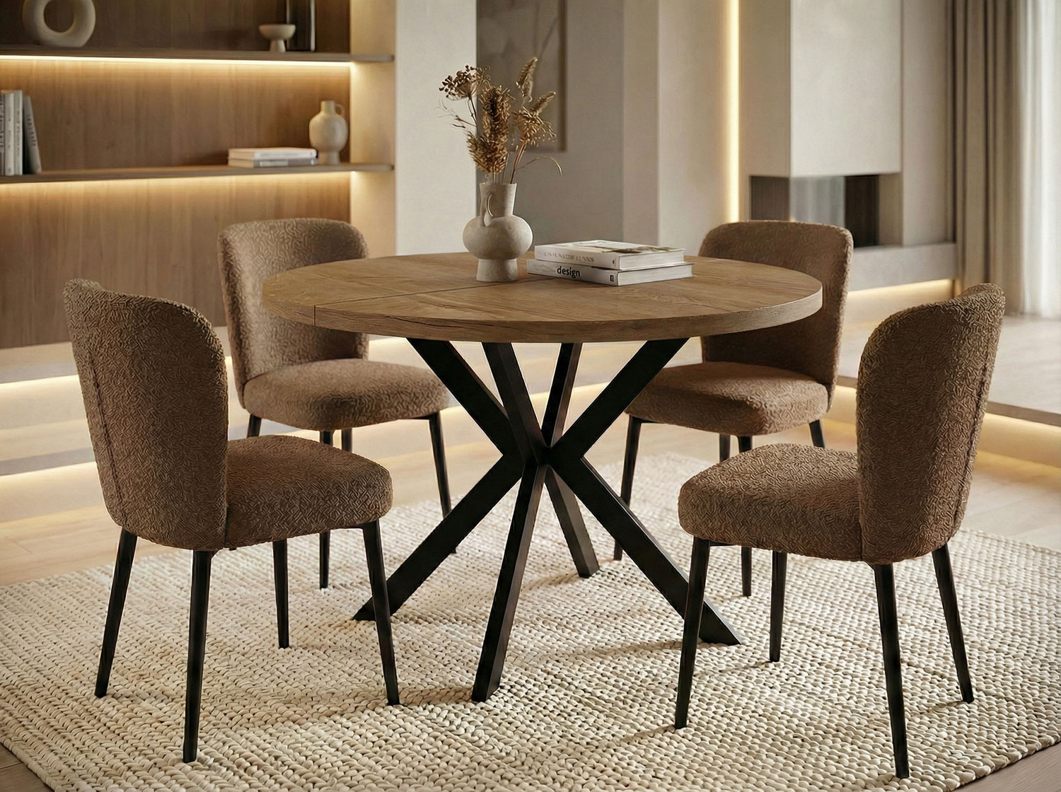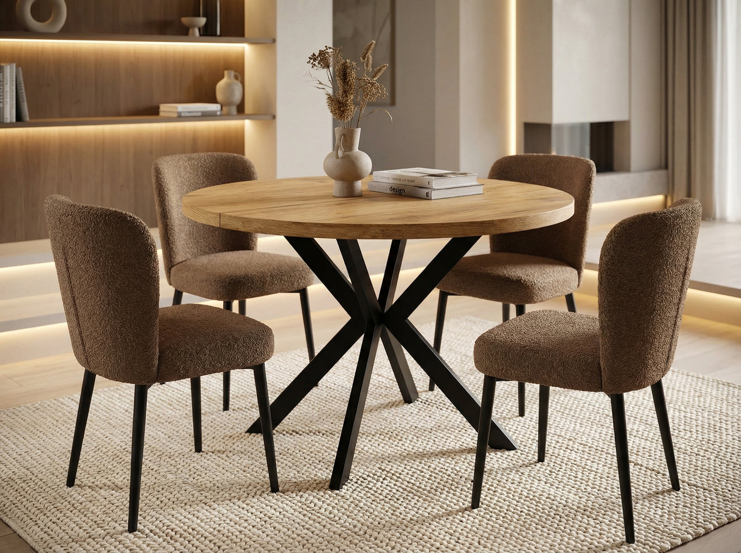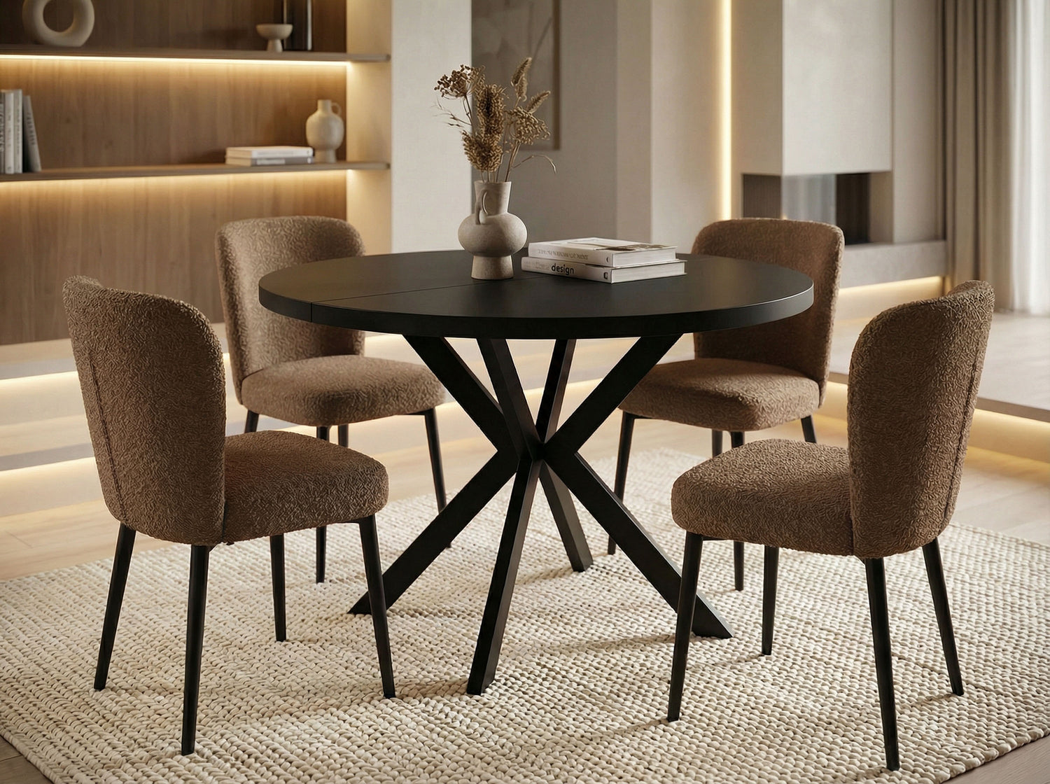 Eleganz und Funktionalität in einem Der Valeo Esstisch vereint modernes Design mit praktischer Funktionalität. Die runde Form und das markante X-Gestell in schwarzen schaffen einen zeitlosen Look, der sich harmonisch in Ihr Zuhause einfügt.