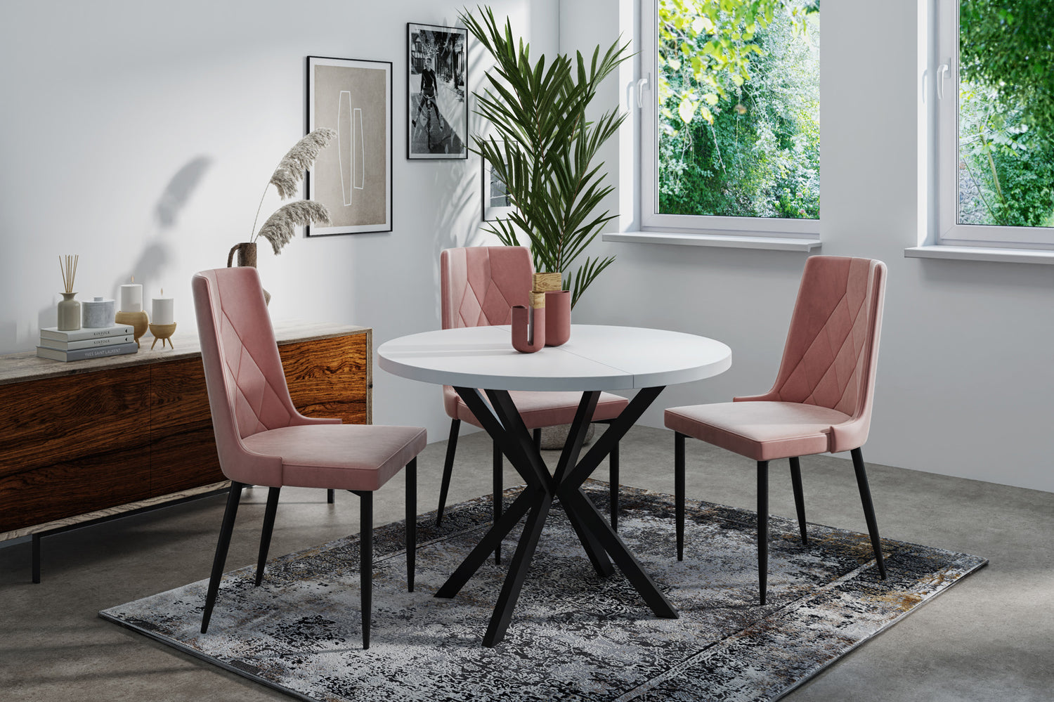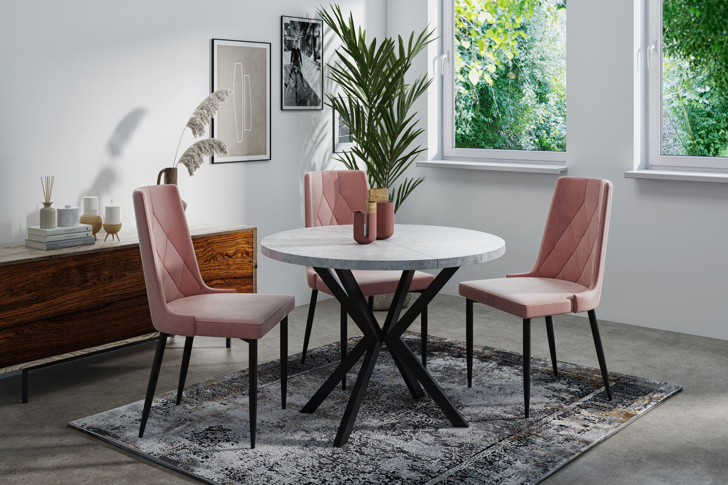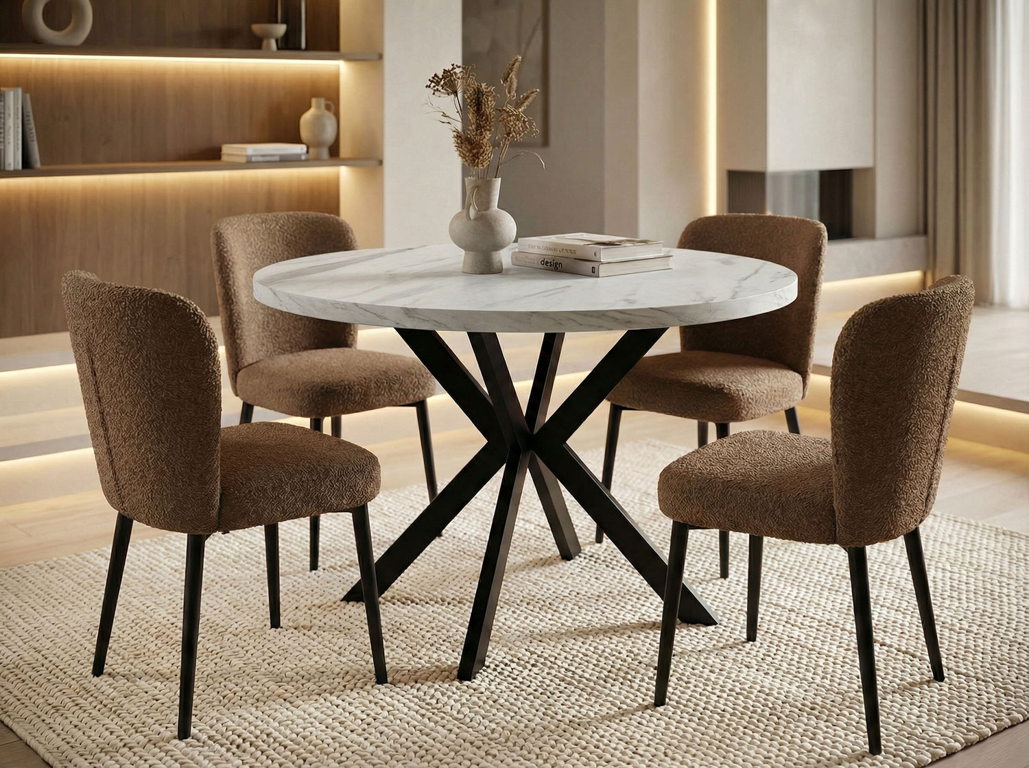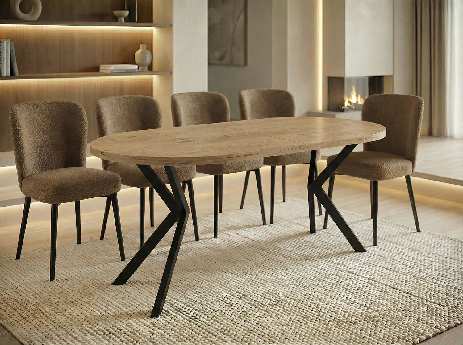 Eleganz und Funktionalität in einem Der Valeo Esstisch vereint modernes Design mit praktischer Funktionalität. Die runde Form und das markante X-Gestell in schwarzen schaffen einen zeitlosen Look, der sich harmonisch in Ihr Zuhause einfügt.