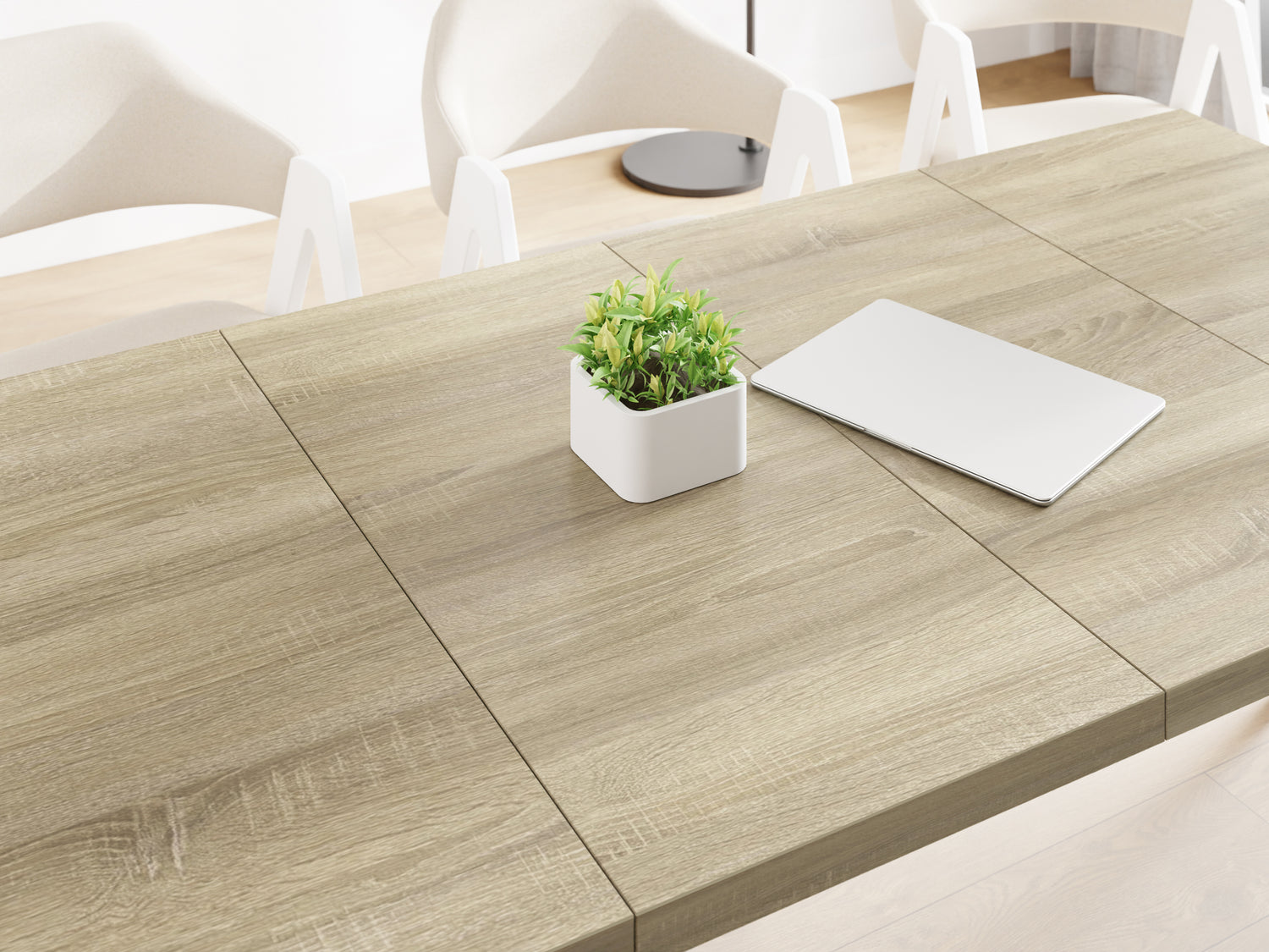 Erleben Sie moderne Eleganz mit unserem ausziehbaren Esstisch, der Funktionalität und stilvolles Design vereint.Diese Eigenschaften garantieren Ihnen Langlebigkeit und sorglose Nutzung. Die ausziehbare Funktion ermöglicht es, die Tischplatte von 100 cm auf beeindruckende 200 cm zu erweitern, sodass er bequem 4 Personen im kompakten Zustand und bis zu 8 Personen im erweiterten Zustand beherbergen kann.