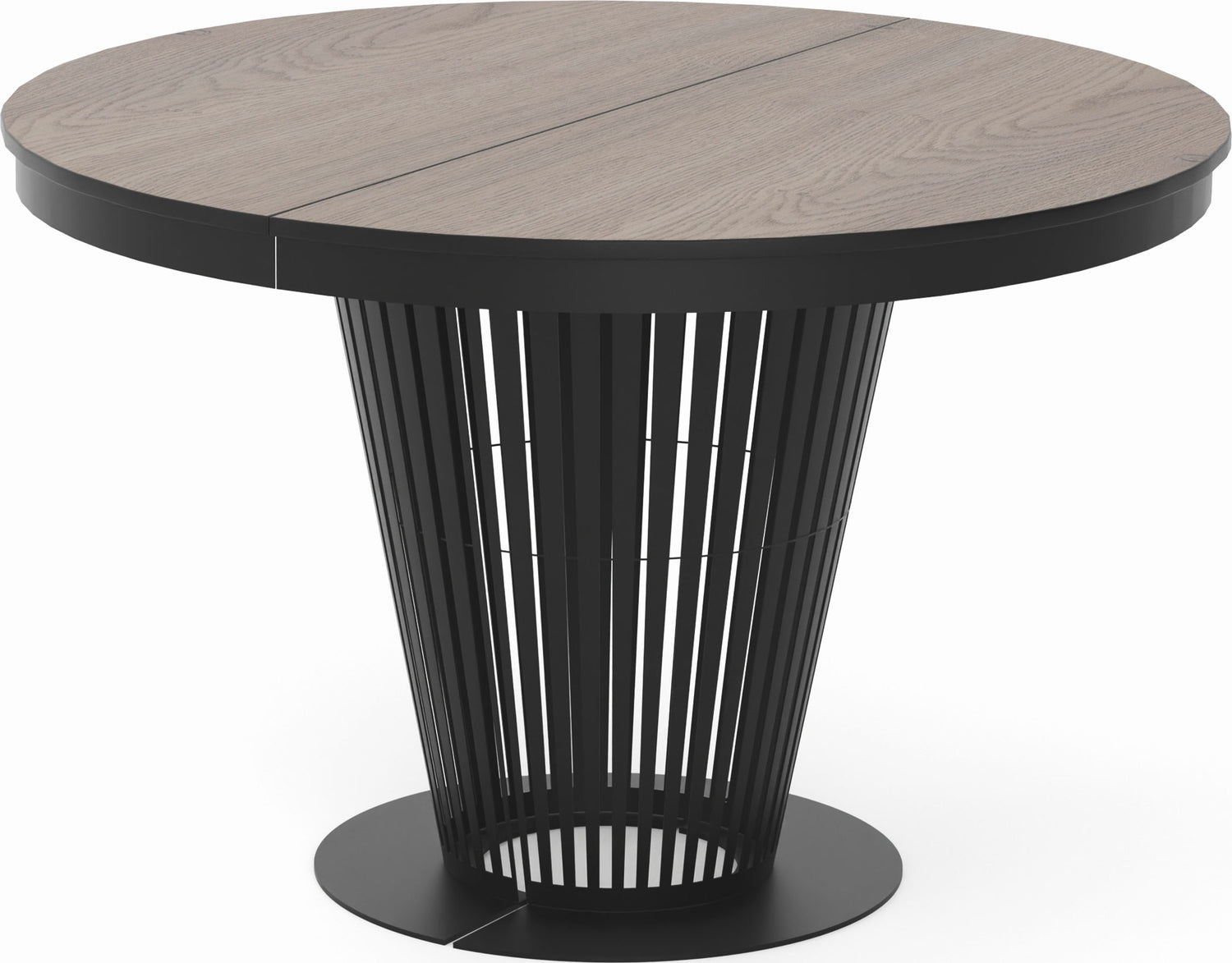 Der Esstisch Novera kombiniert zeitgemäßes Design mit praktischer Erweiterbarkeit. Die runde Tischplatte lässt sich im Handumdrehen zu einer großzügigen ovalen Tafel ausziehen – perfekt für gesellige Abende. Das auffällige, skulpturale Gestell aus schwarzen Metallstreben verleiht dem Tisch eine moderne, architektonische Note und sorgt gleichzeitig für Stabilität und Beinfreiheit.