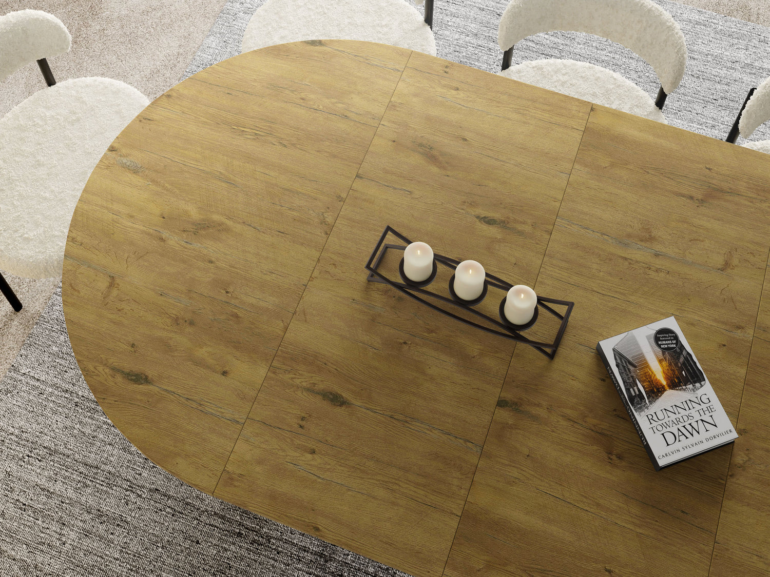 FLEXIBEL DANK AUSZIEHFUNKTION – Ob im Alltag oder bei Besuch – der Tisch lässt sich schnell von einer runden Form zu einer großzügigen ovalen Tafel erweitern. Ideal für 5 bis 8 Personen (100 cm) oder 6 bis 10 Personen (120 cm). Perfekt für Familien, Paare oder kleine Wohnungen mit Anspruch auf Flexibilität