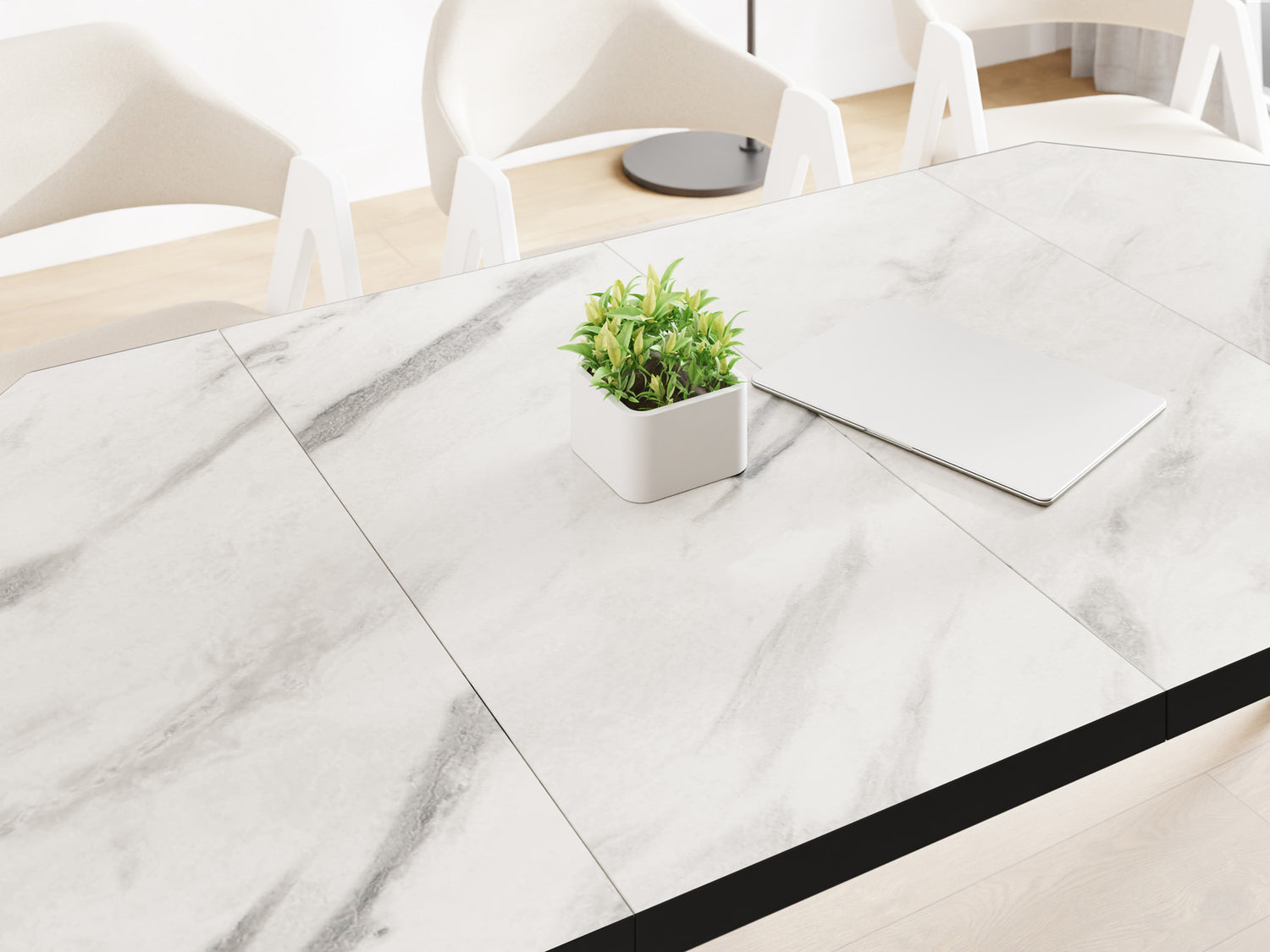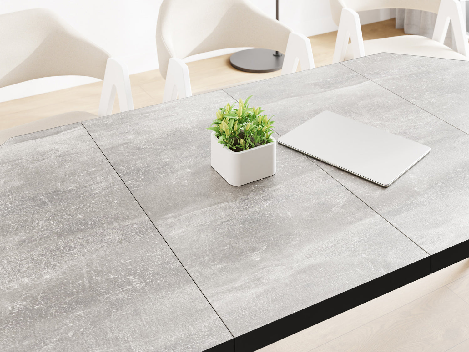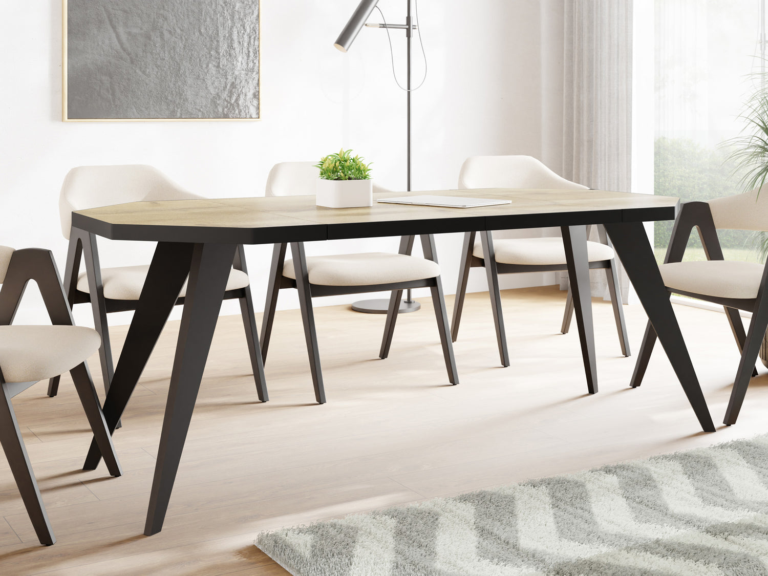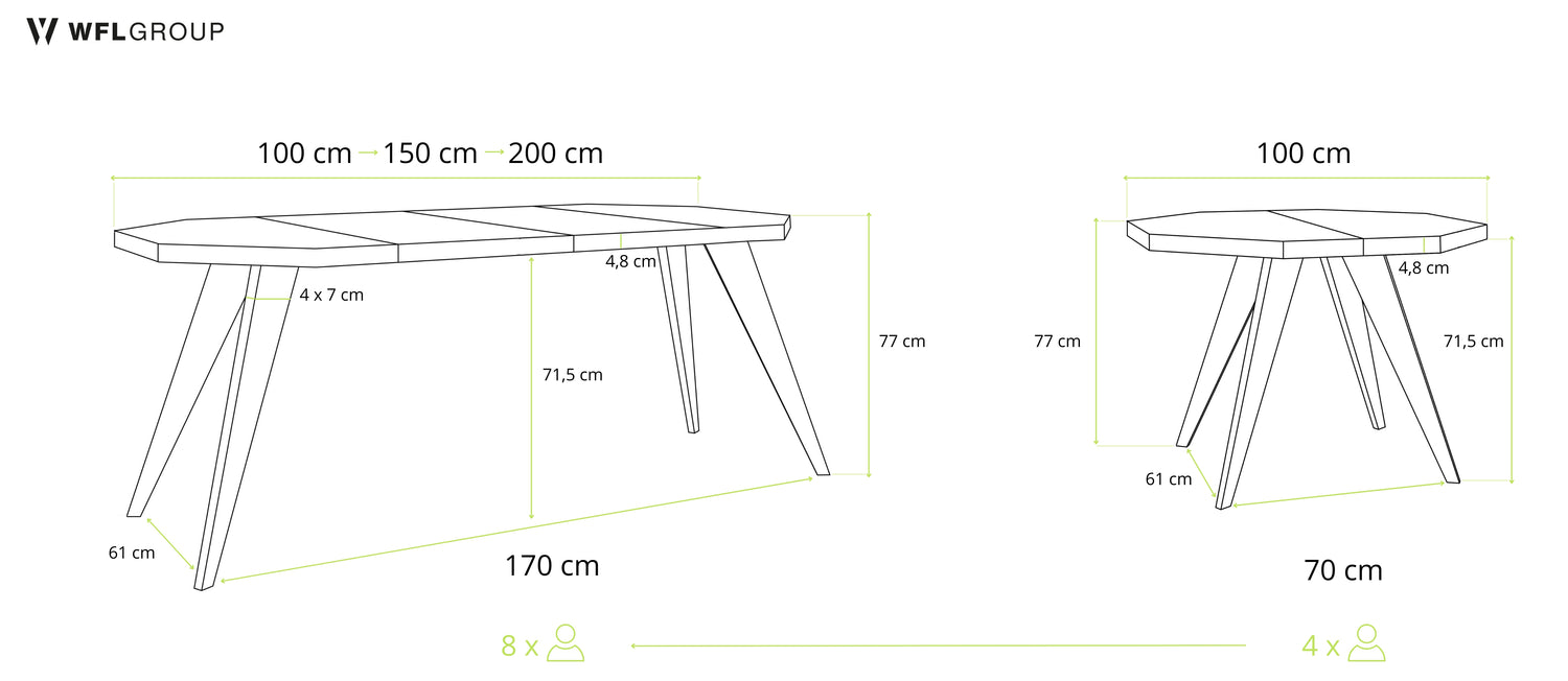 Erleben Sie moderne Eleganz mit unserem ausziehbaren Esstisch, der Funktionalität und stilvolles Design vereint. Diese Eigenschaften garantieren Ihnen Langlebigkeit und sorglose Nutzung. Die ausziehbare Funktion ermöglicht es, die Tischplatte von 100 cm auf beeindruckende 200 cm zu erweitern, sodass er bequem 4 Personen im kompakten Zustand und bis zu 8 Personen im erweiterten Zustand beherbergen kann.