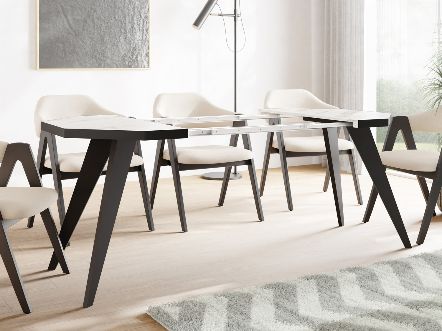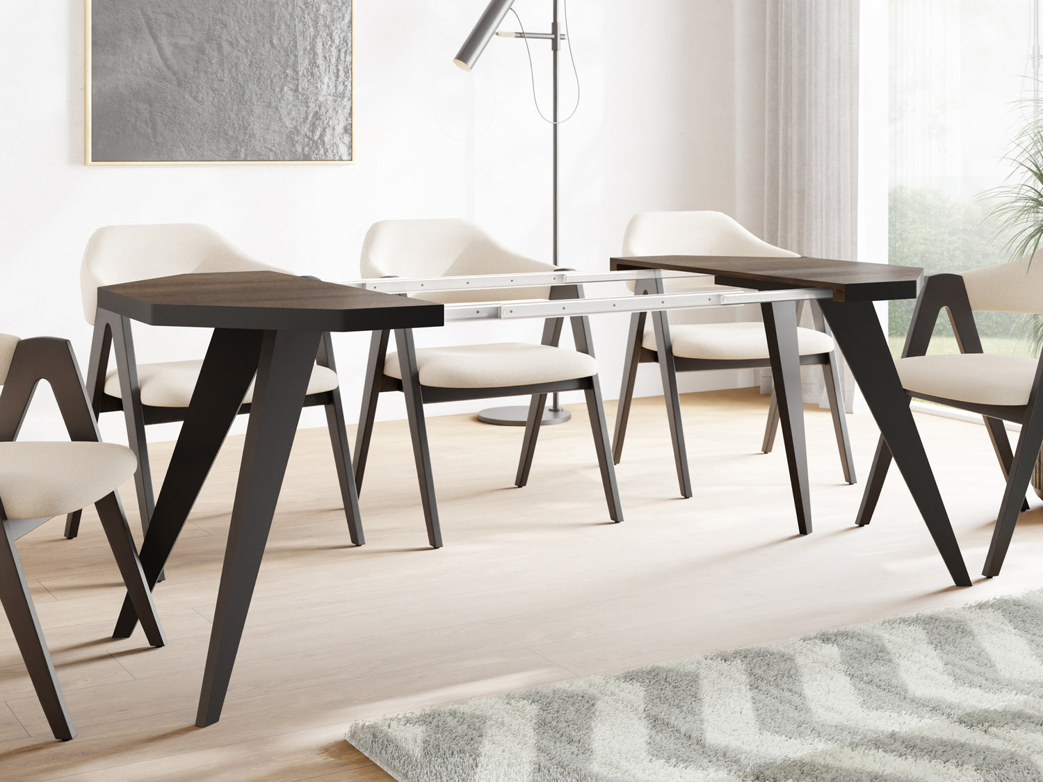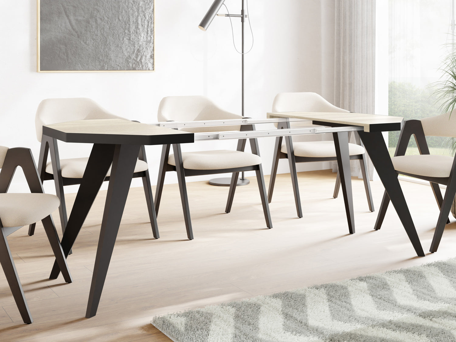 FLEXIBEL UND ANPASSBAR – Der Tisch ist in zwei Versionen erhältlich: von 100 cm auf 150 cm für bis zu 6 Personen und von 100 cm auf 200 cm für bis zu 8 Personen ausziehbar