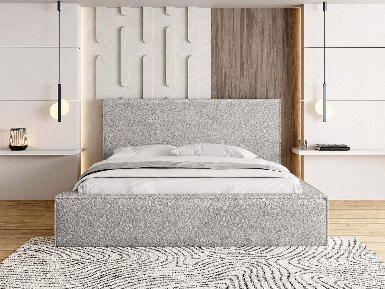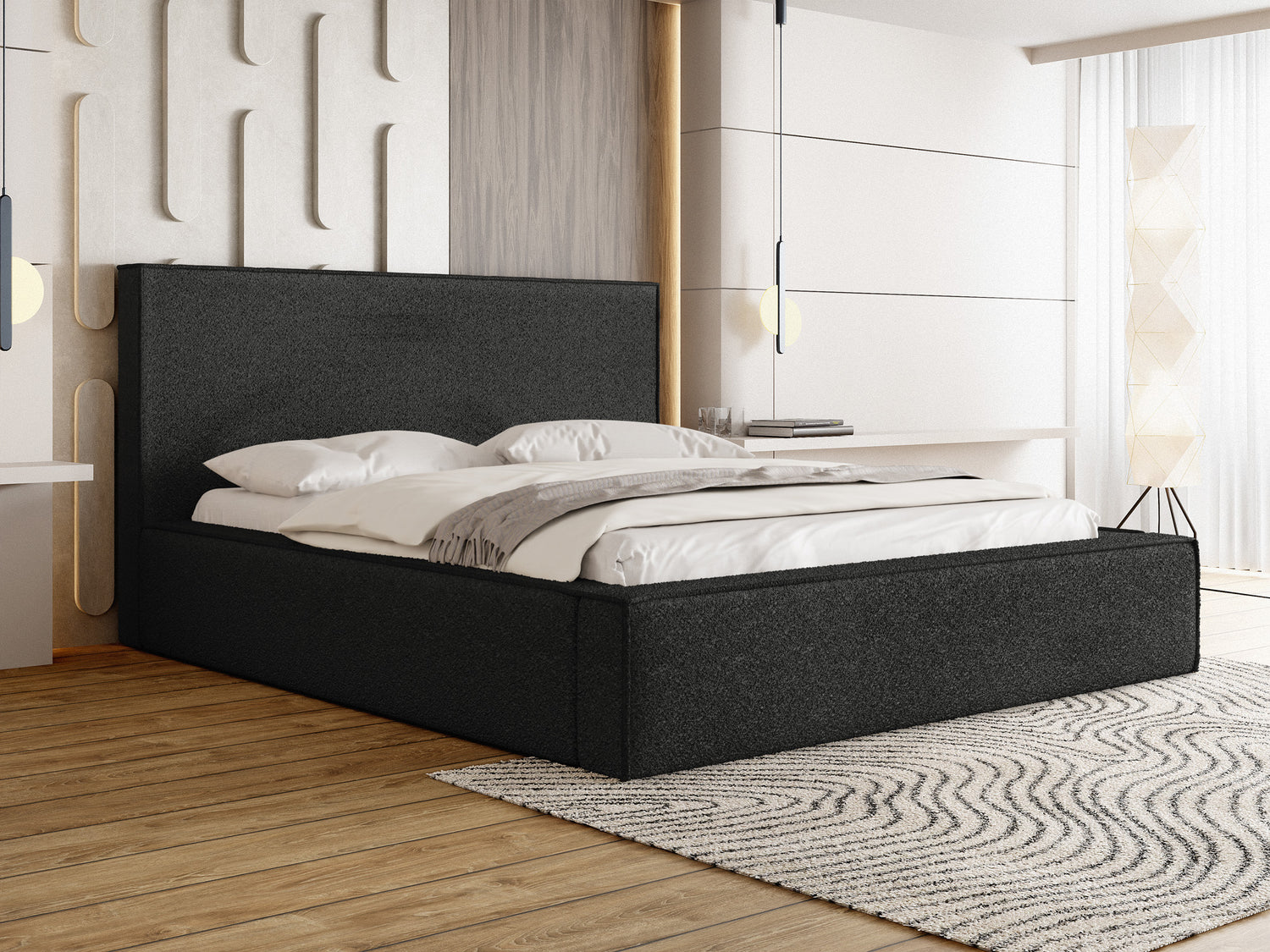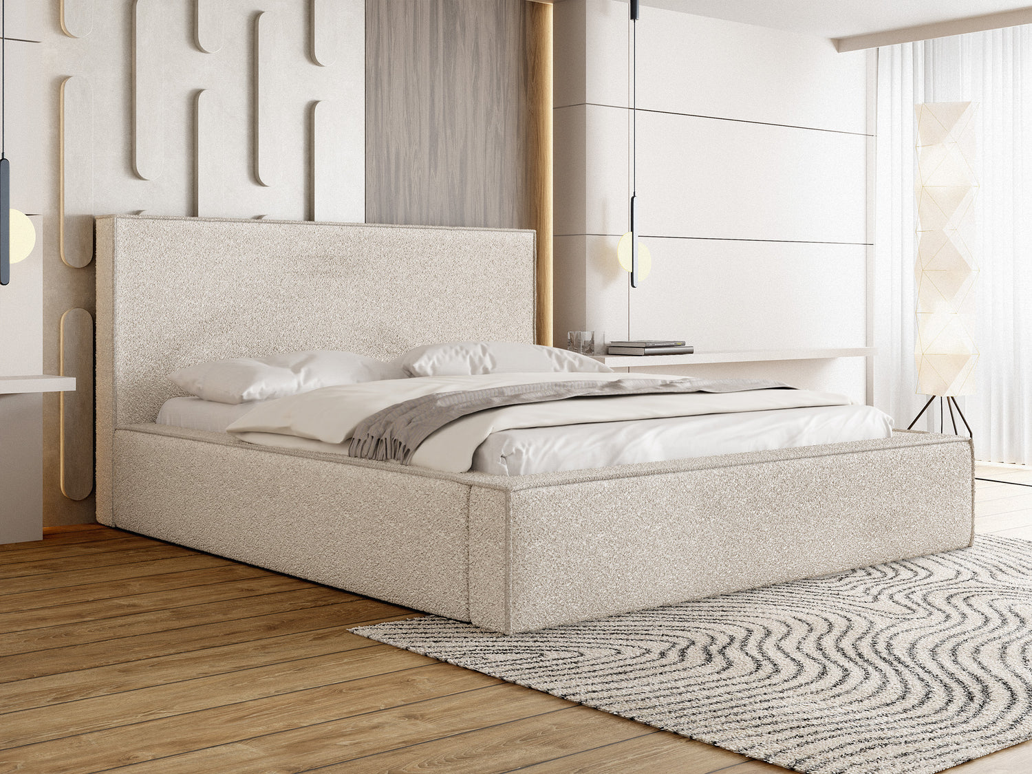 MODERNES DESIGN – Dieses elegante Bett im trendigen Polsterstil mit geometrischem Kopfteil lässt jedes Schlafzimmer stilvoll und gemütlich wirken. Das großzügig gepolsterte Kopfteil bietet höchsten Komfort für entspannte Abende, während das klare Design eine luxuriöse Note verleiht. Ideal für moderne, skandinavische oder minimalistische Einrichtungsstile