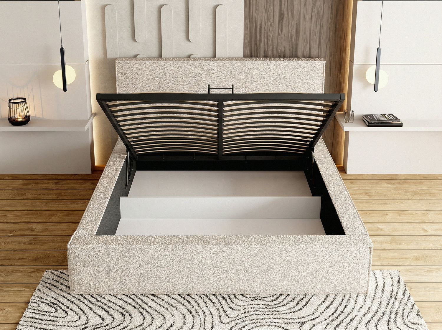 INTEGRIERTER BETTKASTEN MIT VIEL STAURAUM – Dank praktischem Bettkasten mit leichtgängiger Hubmechanik bietet dieses Bett großzügigen Stauraum für Bettwäsche, Kleidung oder saisonale Gegenstände. Perfekt geeignet, um Ordnung und zusätzlichen Komfort im Schlafzimmer zu schaffen