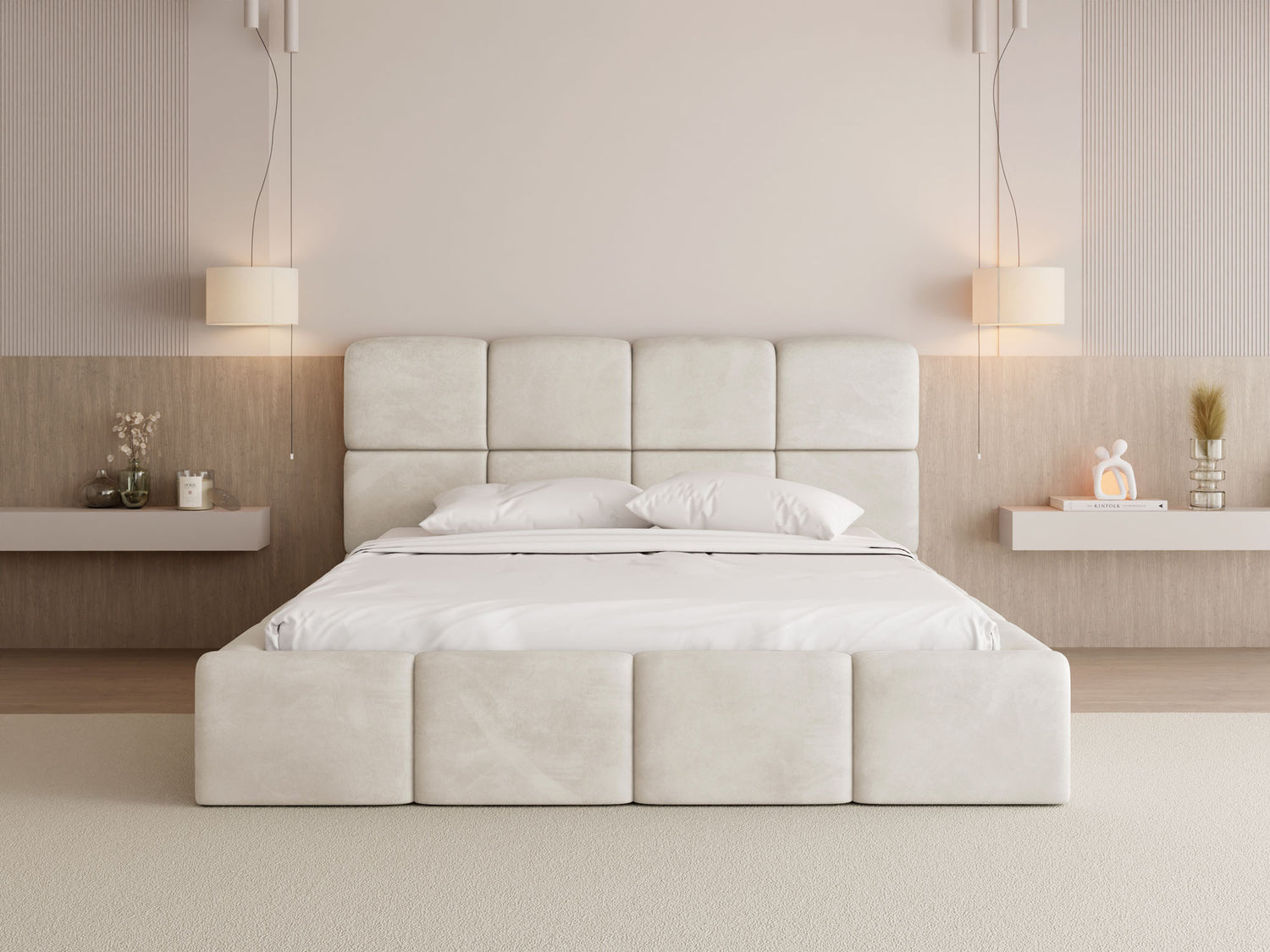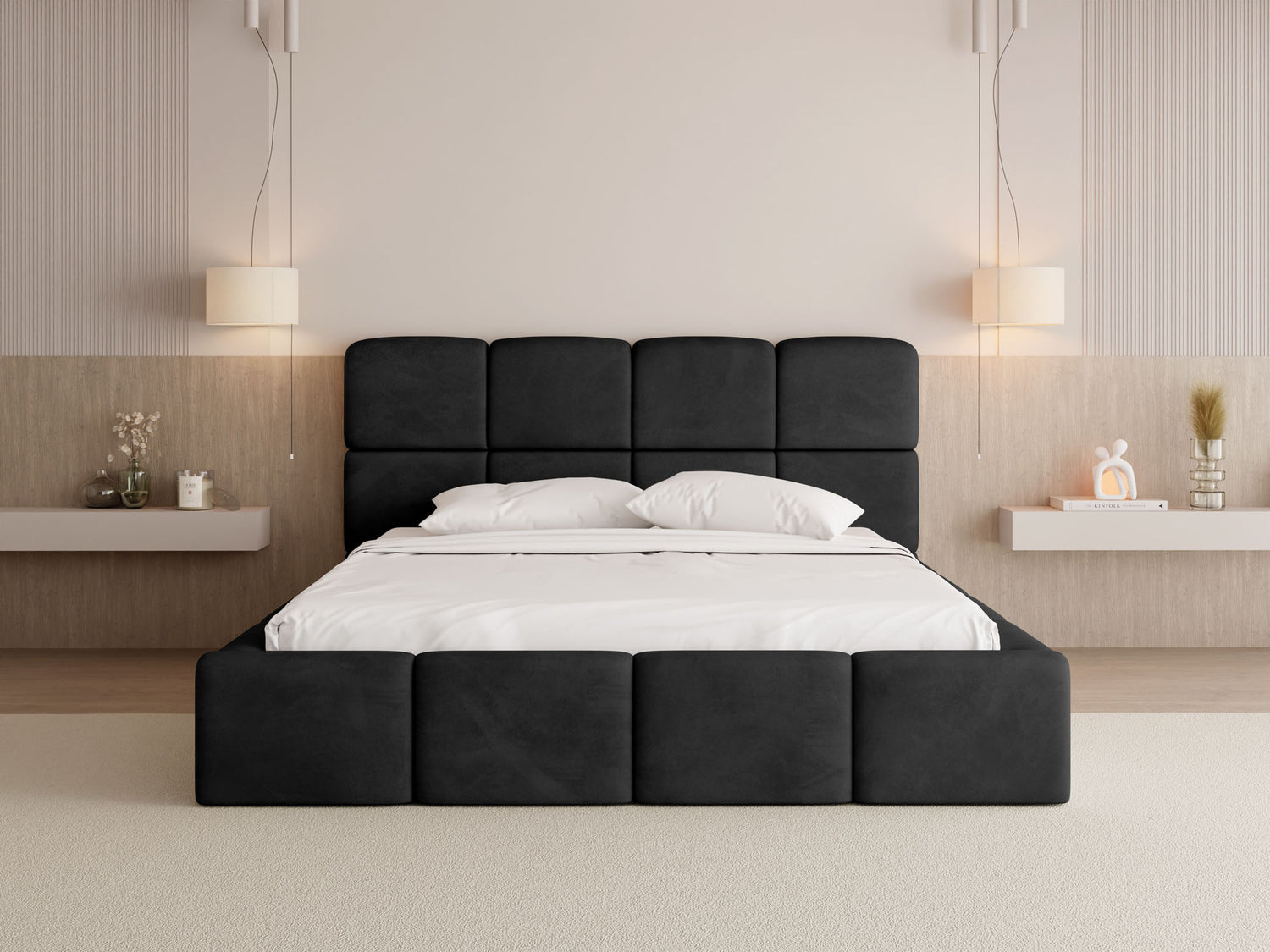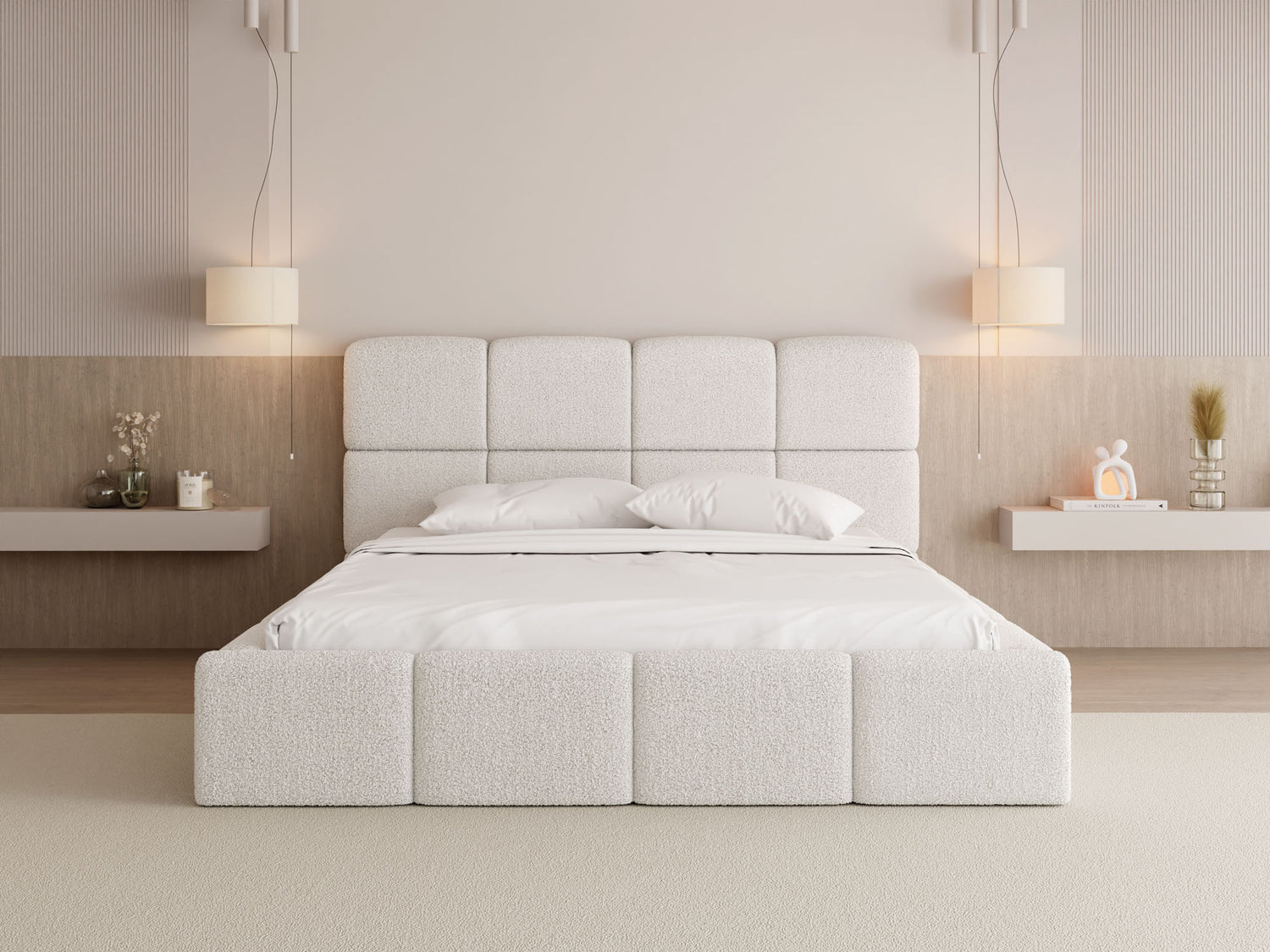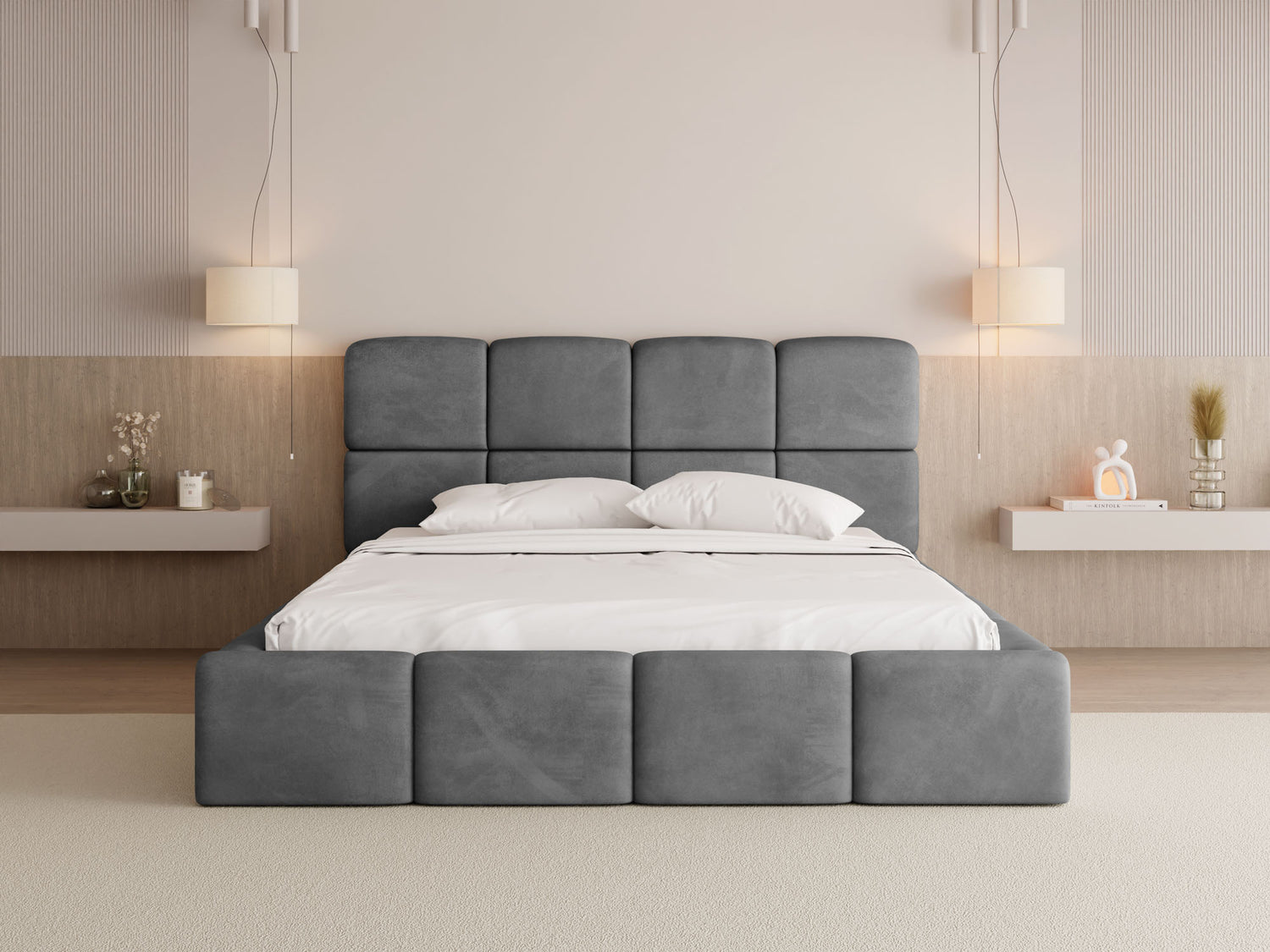 EIN BLICKFANG FÜR JEDES SCHLAFZIMMER – Mit seiner voluminösen Form, markanten Kastensteppung und rundum gepolsterten Elementen wird dieses Bett zum stilvollen Mittelpunkt jedes Schlafzimmers. Die weichen Konturen und das harmonische Design verleihen dem Raum eine moderne, gemütliche Atmosphäre – ideal für alle, die Design und Komfort stilvoll verbinden möchten