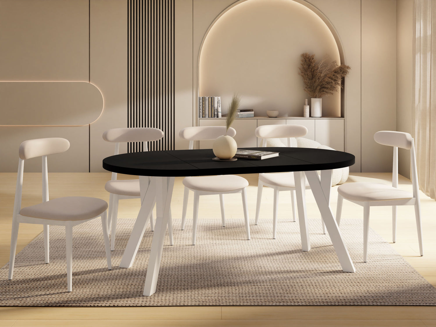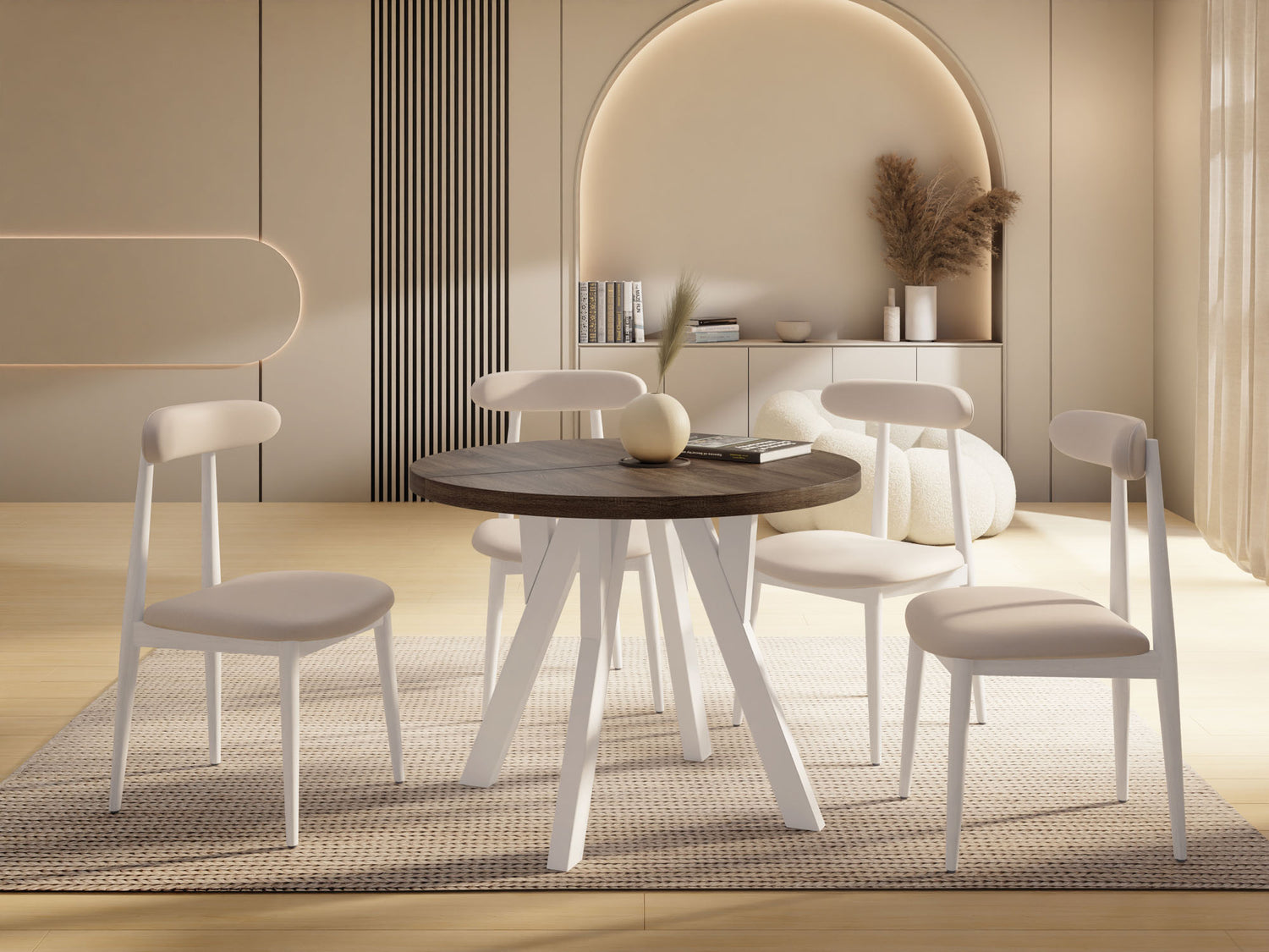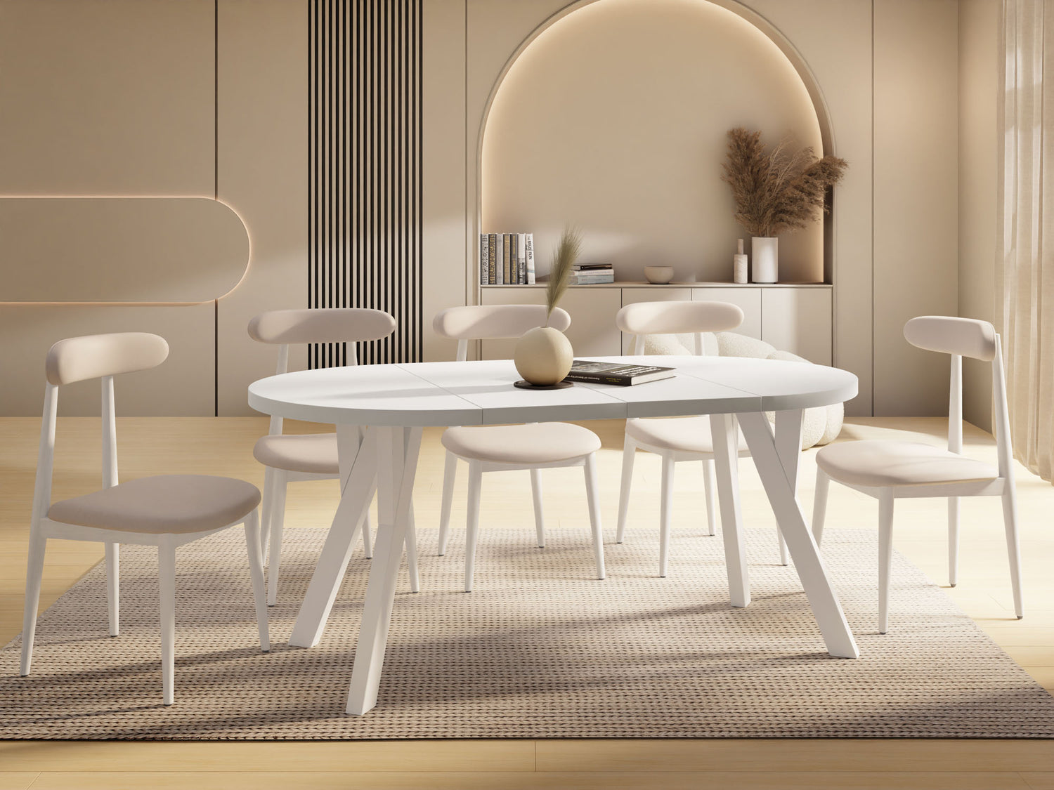 Dieser runde Tisch verbindet minimalistisches Design mit maximaler Funktionalität. Je nach gewählter Variante lässt er sich mühelos ausziehen: von 80 auf 160 cm (bietet damit ausreichend Platz für 4–8 Personen), 90 auf 190 cm (für 5–9 Personen), 100 auf 140 cm (für 5–7 Personen) oder 100 auf 200 cm (für 5–10 Personen). Perfekt für den Alltag, spontane Gäste, Familienfeiern oder entspannte Dinnerabende.