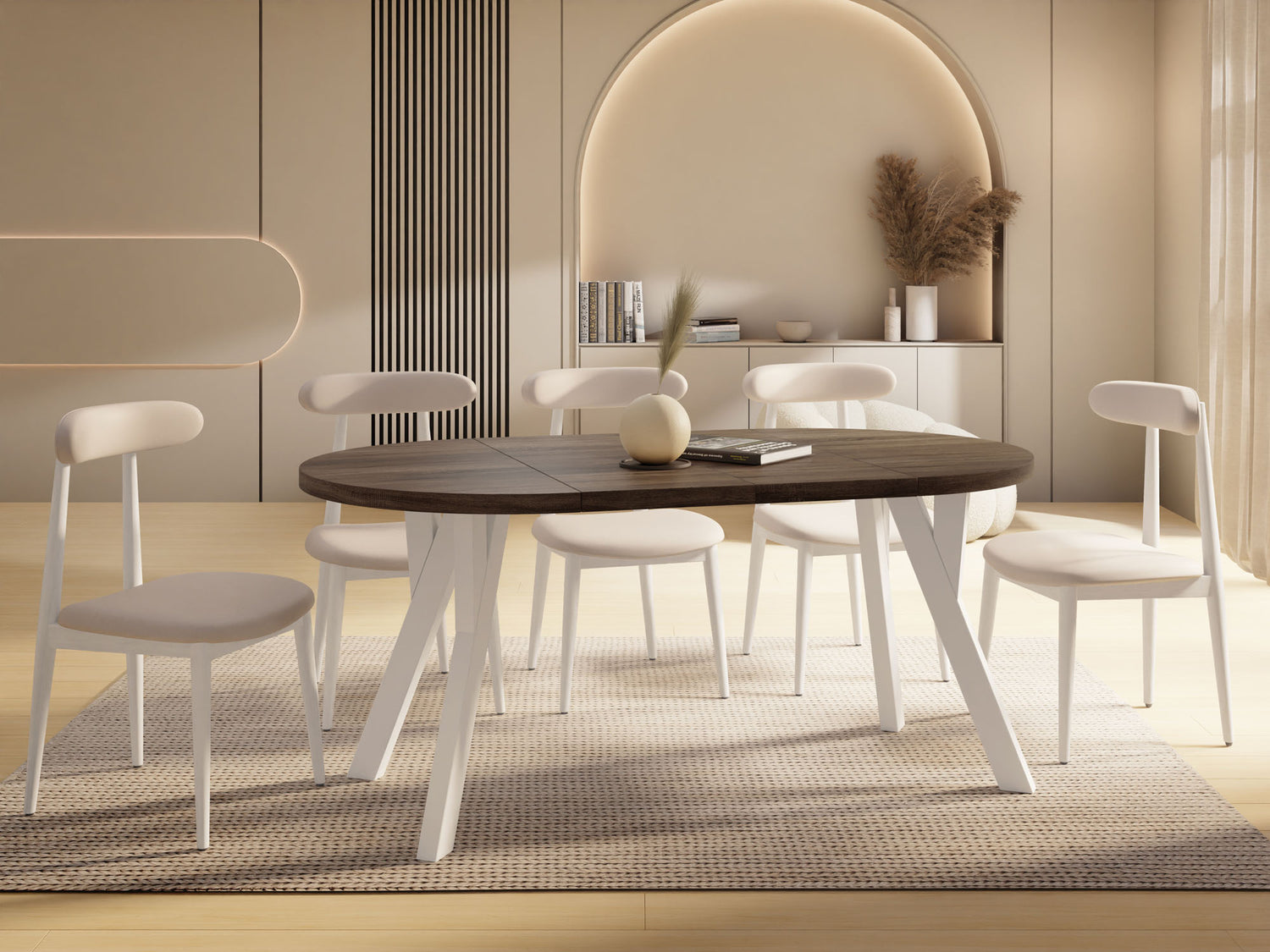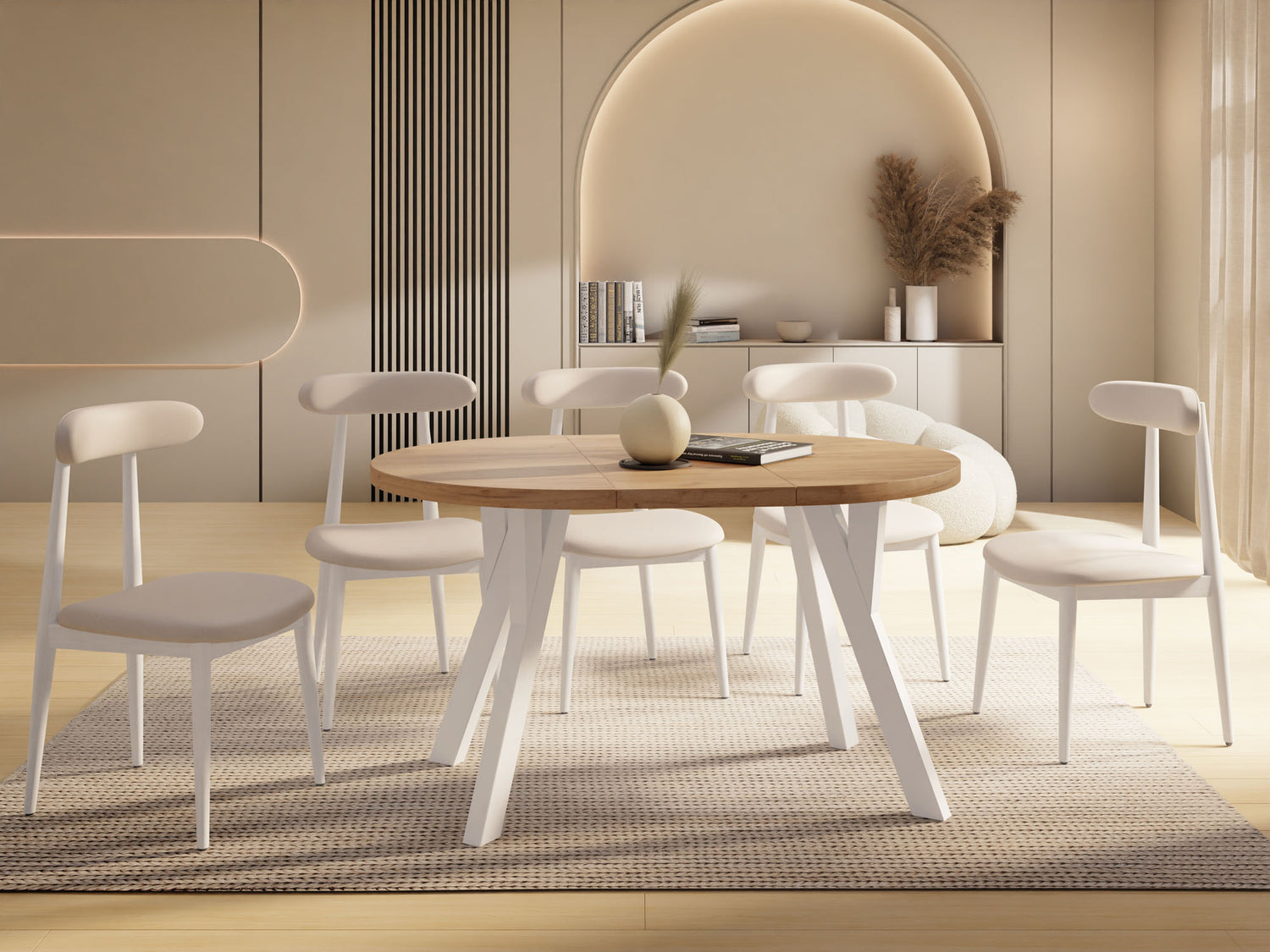 Moderner Esstisch mit cleverer Funktion – stilvoll, rund, ausziehbarer