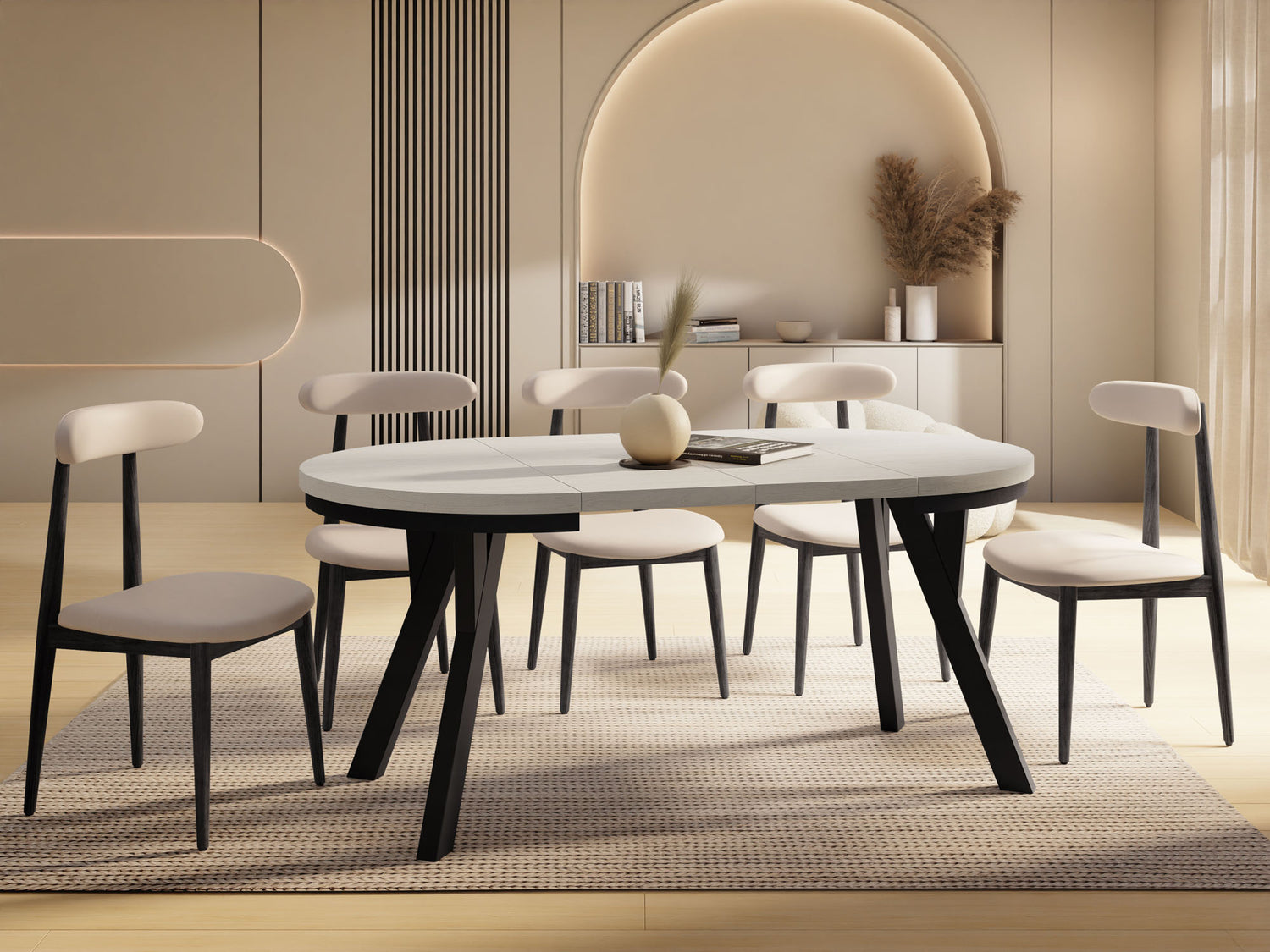 Moderner Esstisch mit cleverer Funktion – stilvoll, rund, ausziehbarer