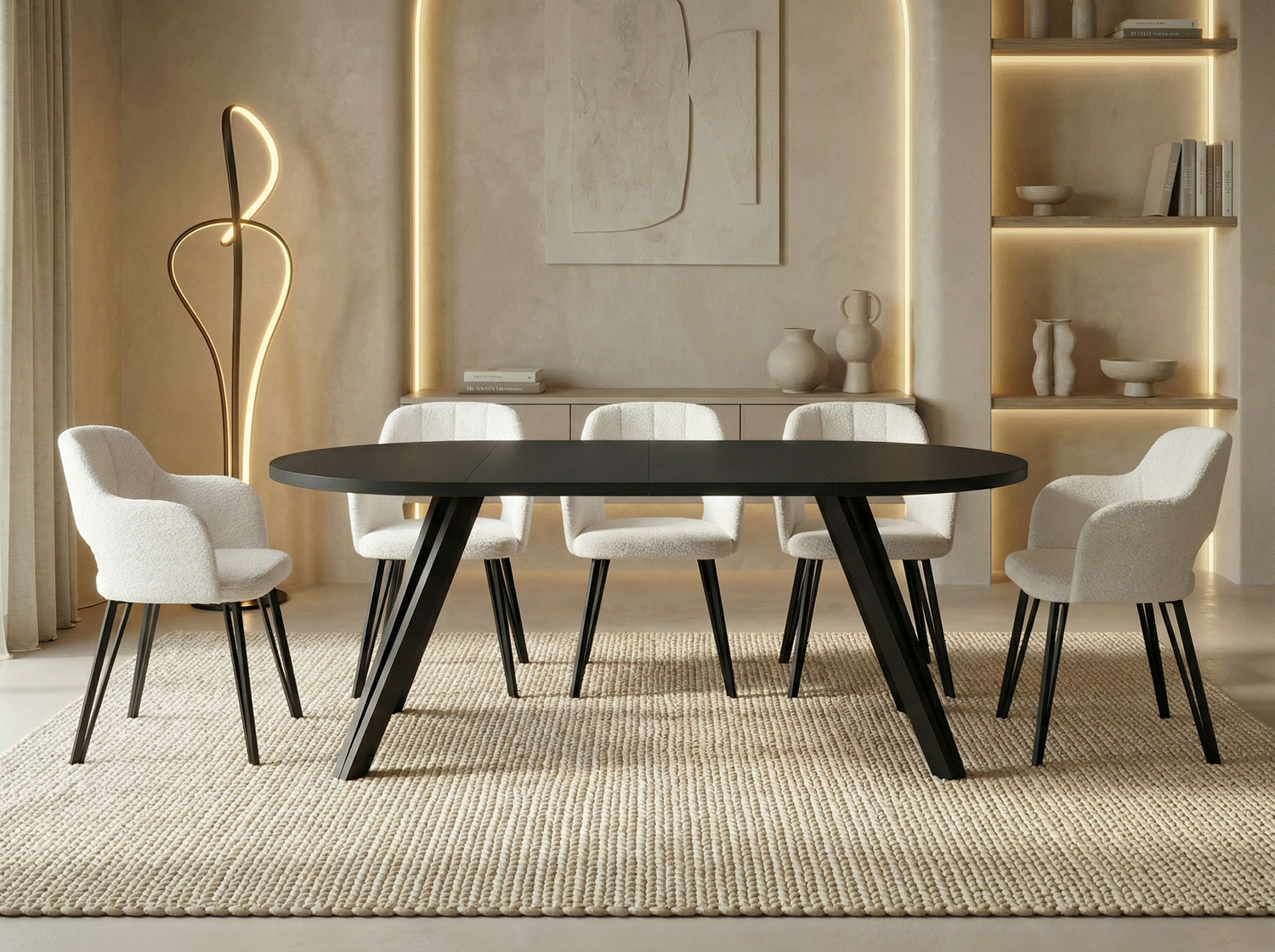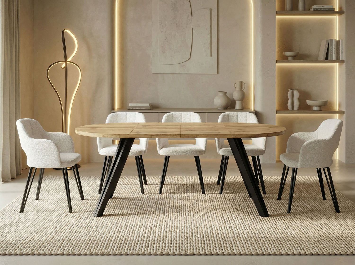 Der runde Esstisch RAVANO verbindet minimalistisches Design mit praktischer Funktionalität. Je nach gewählter Variante steht er als kompakter Tisch mit 100 cm Durchmesser für den Alltag zur Verfügung oder lässt sich komfortabel auf 140 cm bzw. 180 cm verlängern – ideal für gemeinsame Mahlzeiten im kleinen Rahmen ebenso wie für Familienfeiern oder Abende mit Gästen.