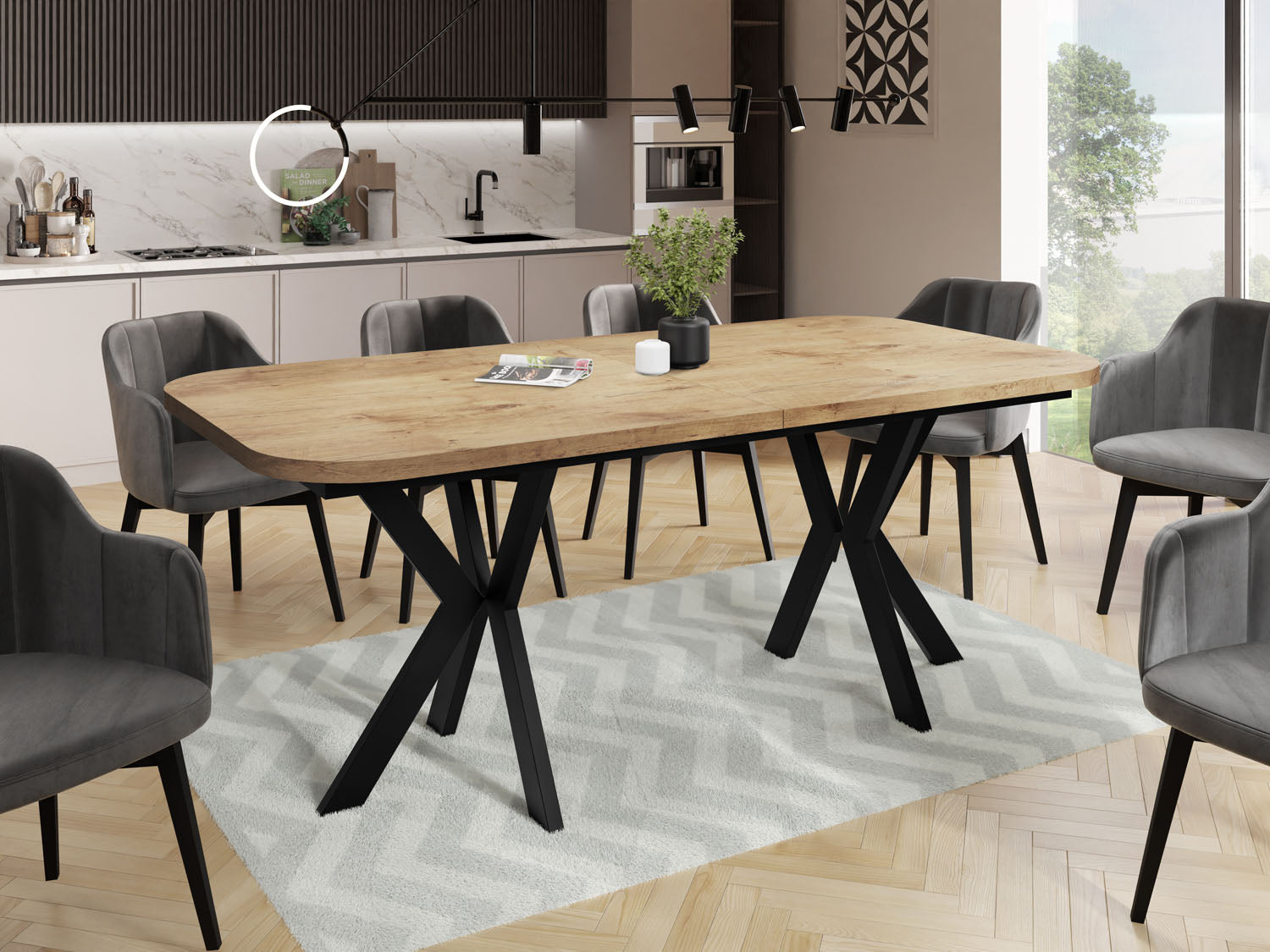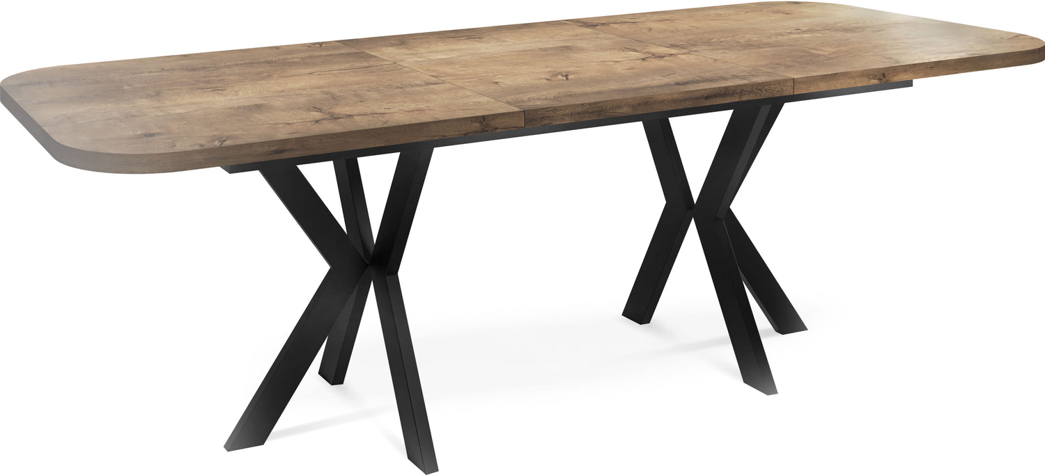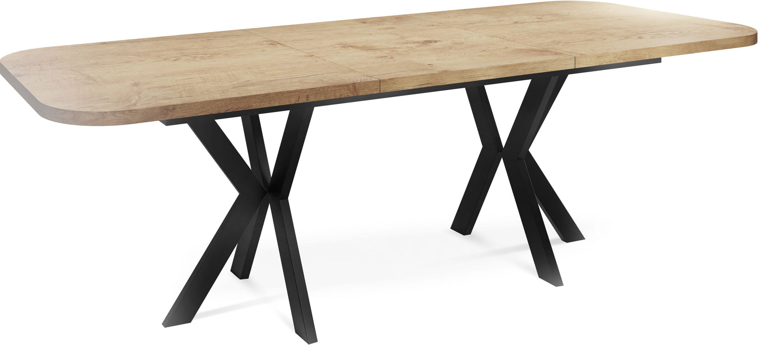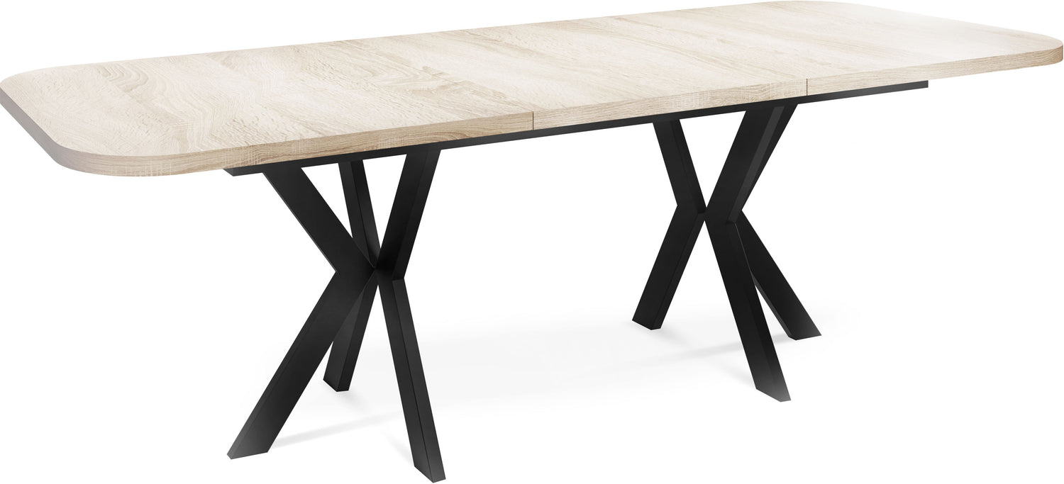 Ausziehbarer Esstisch im Modern-Stil – Rechteckiger Tisch mit Schwarzen Metallbeinen – Industrie Stil, mit Abgerundeten Ecken – Spacesaver – 200 x 100 cm