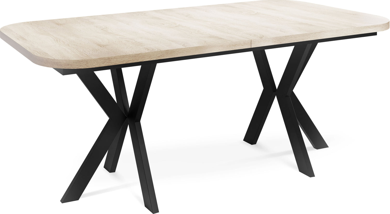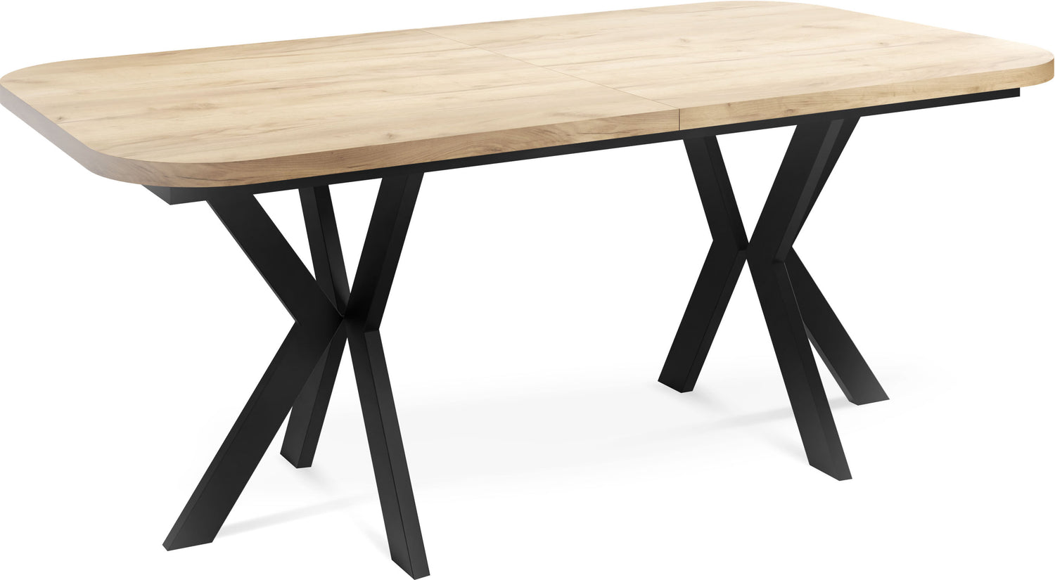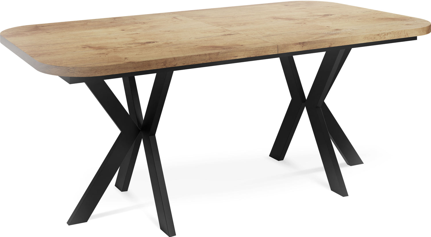 Ausziehbarer Esstisch im Modern-Stil – Rechteckiger Tisch mit Schwarzen Metallbeinen – Industrie Stil, mit Abgerundeten Ecken – Spacesaver – 200 x 100 cm