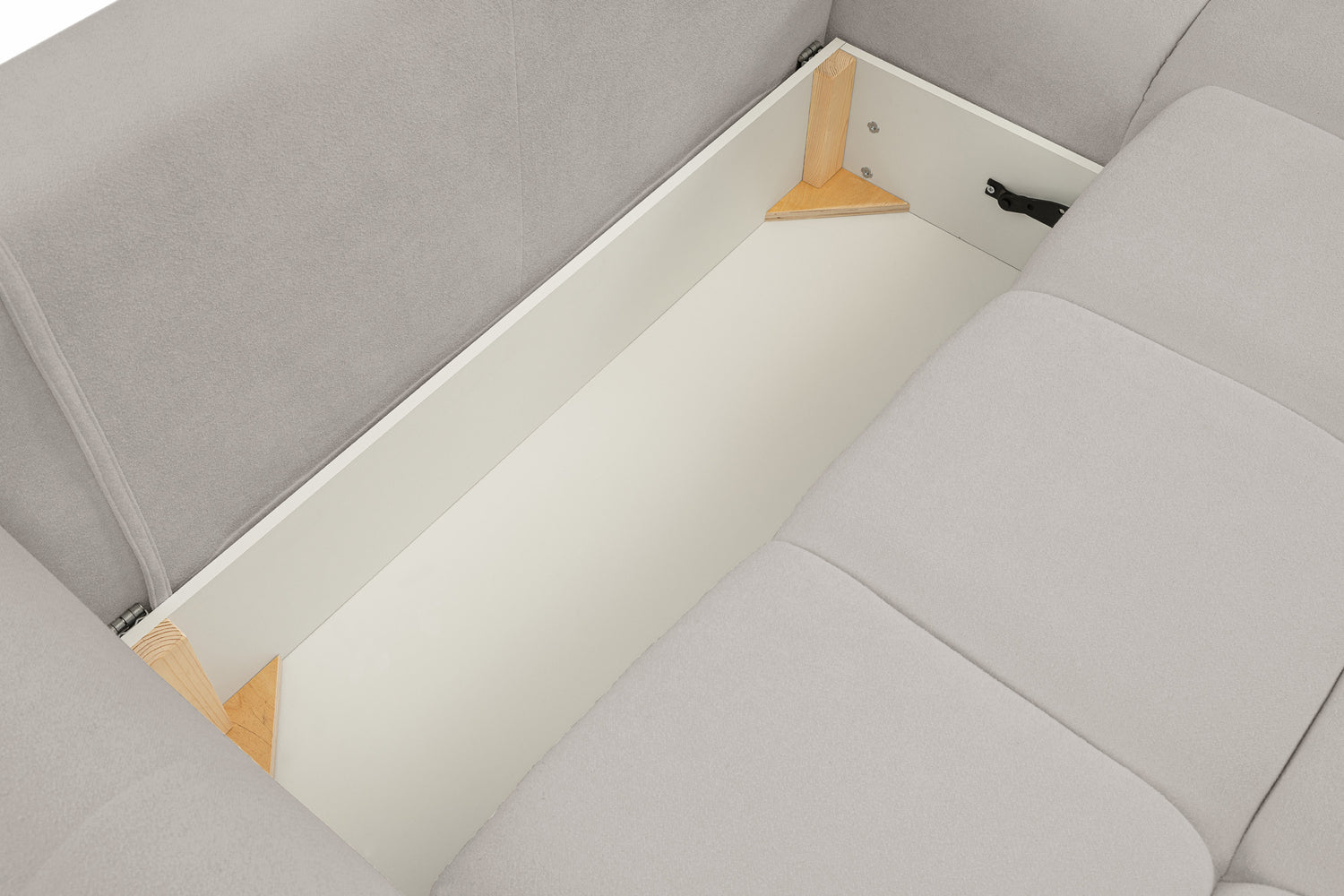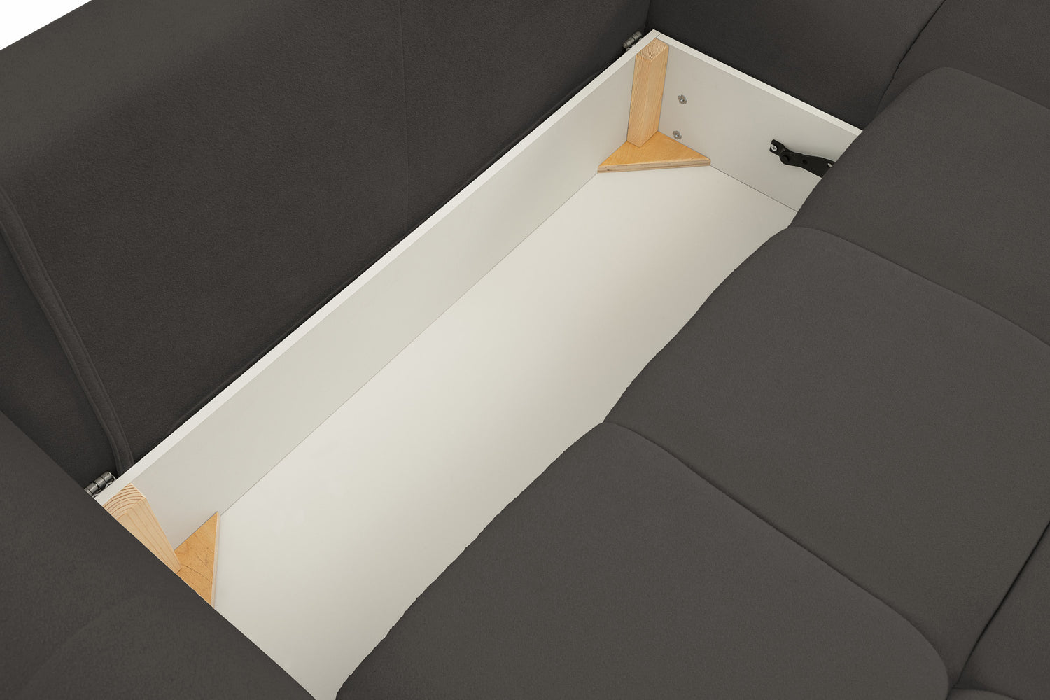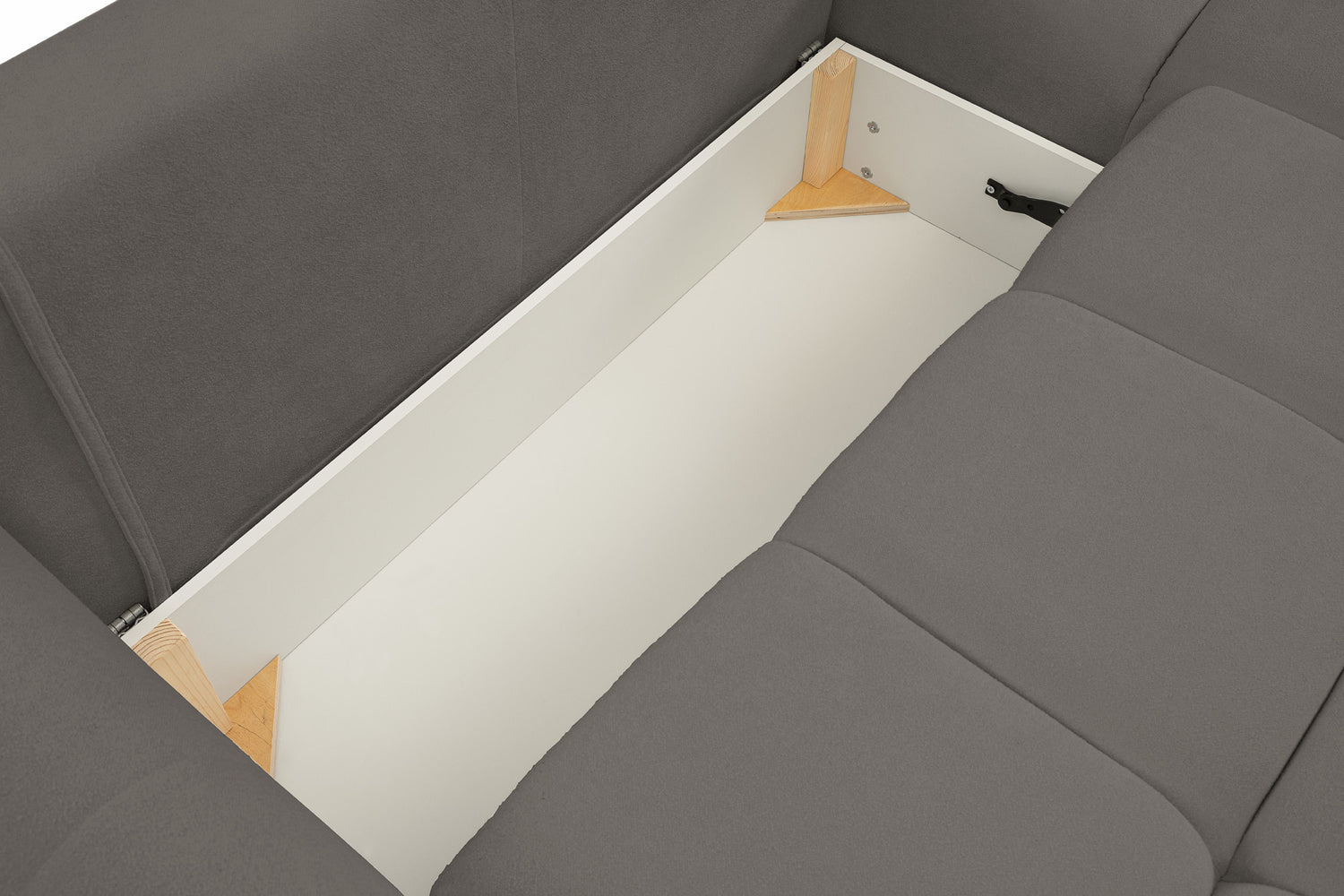 SMART STAURAUM – Das Ecksofa mit Bettkasten bietet viel Platz für Bettwäsche, Decken und Kissen. Eine praktische Lösung für eine aufgeräumte und stilvolle Wohnlandschaft