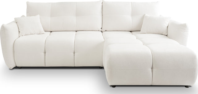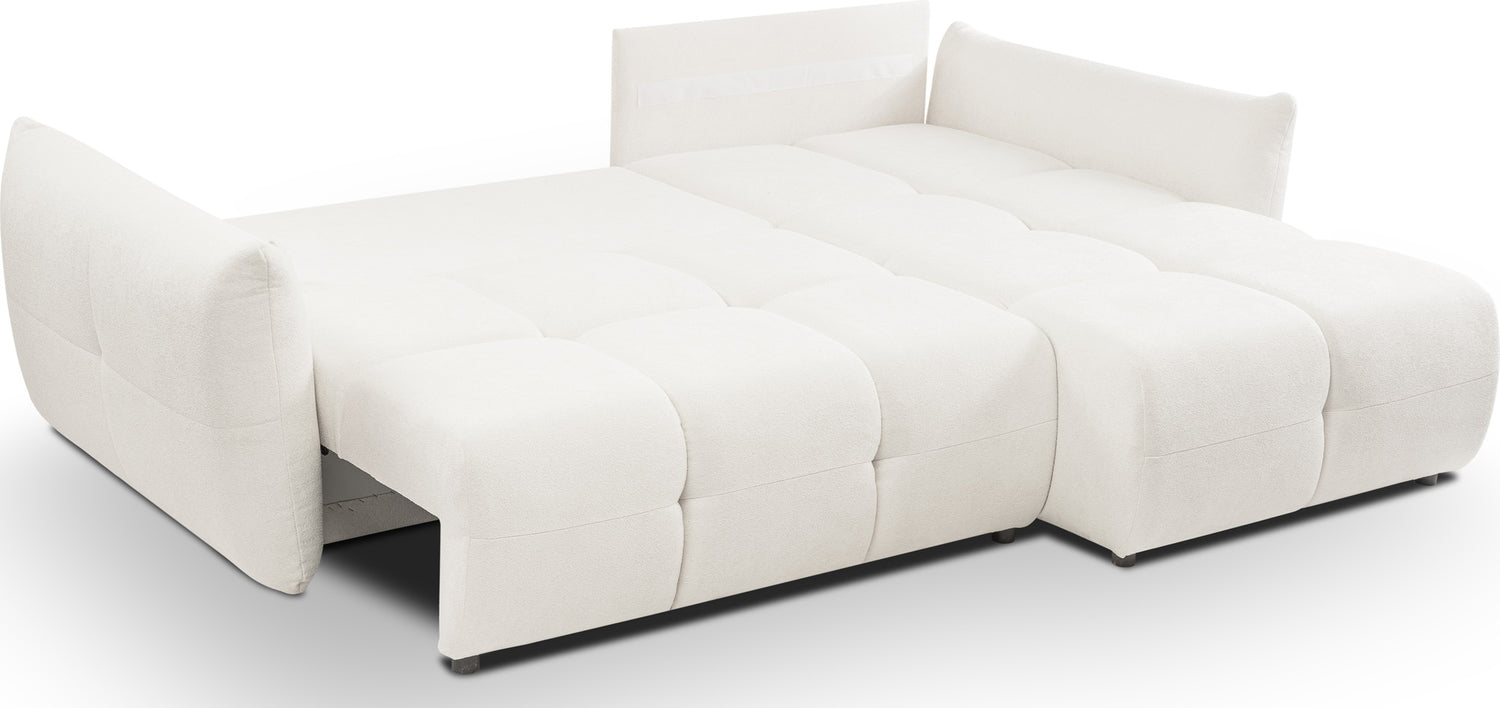 2 IN 1 ECKSOFA MIT SCHLAFFUNKTION – Modernes Schlafsofa mit Bettkasten, das sich mit nur wenigen Handgriffen in ein gemütliches Gästebett verwandelt. Ideal für kleine Wohnungen oder als praktische Lösung für Gäste