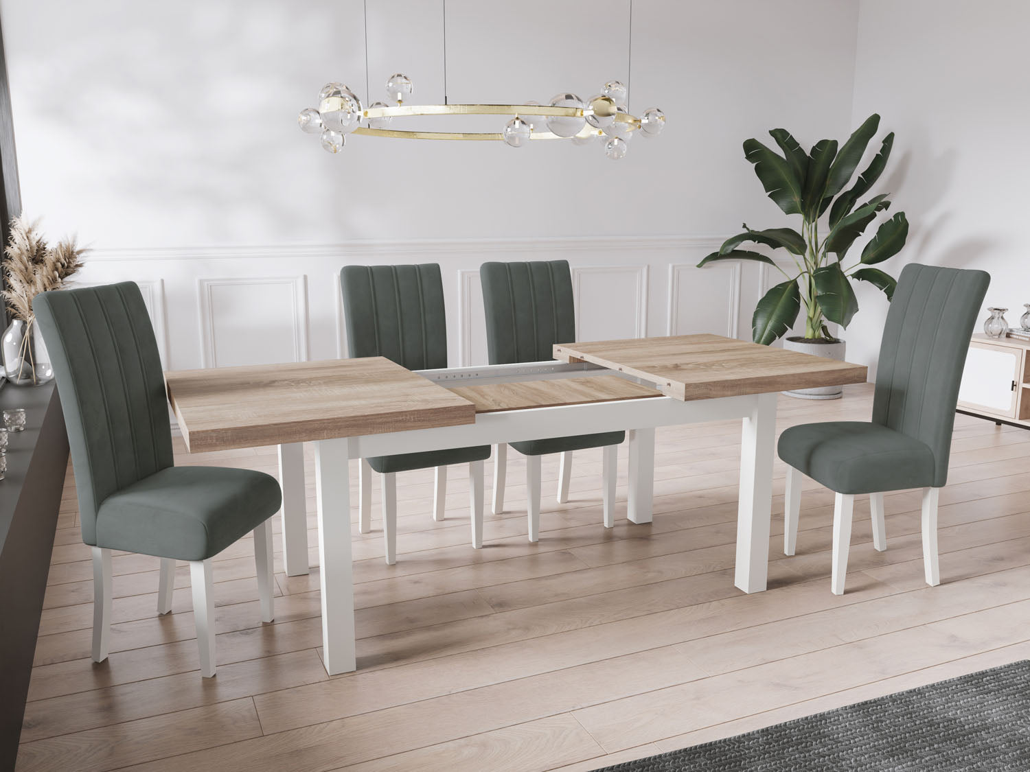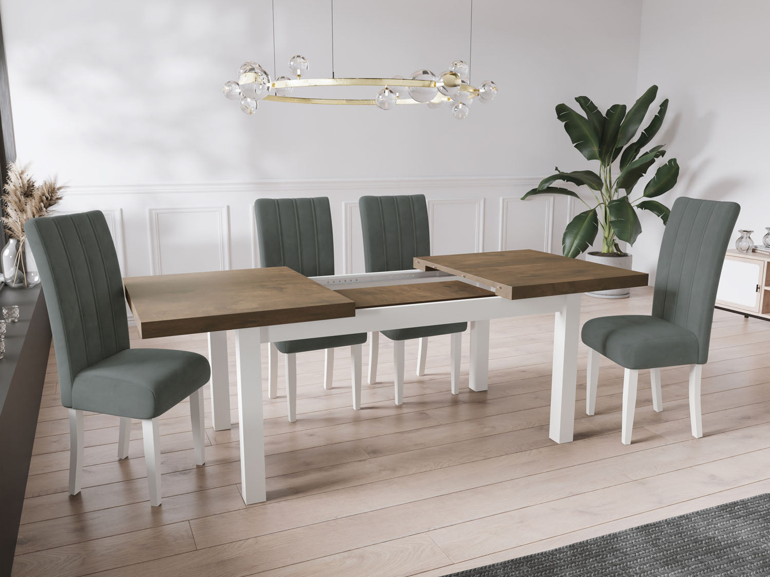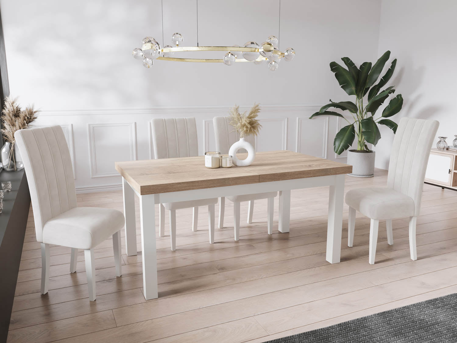 140 x 80 cm, Höhe 75 cm, Tischplatte bis 180 cm ausziehbar (1x Einlegeplatte 40 cm)