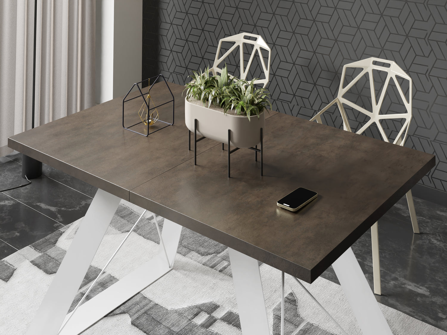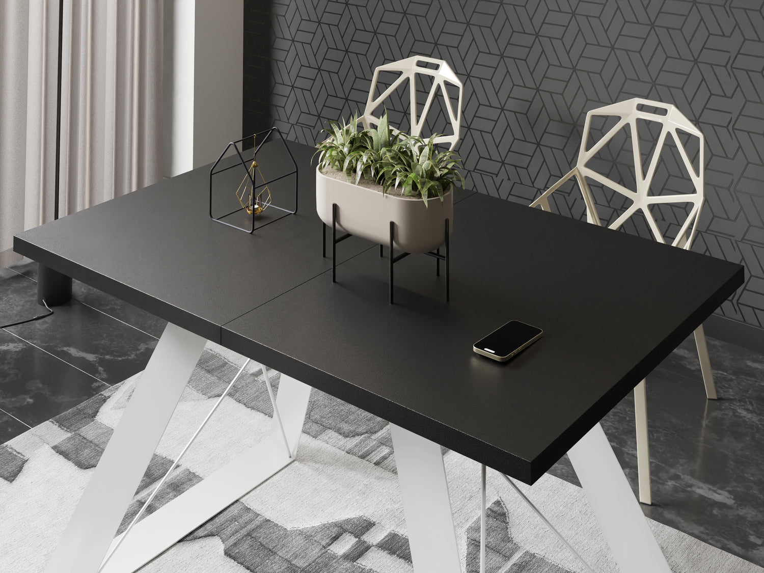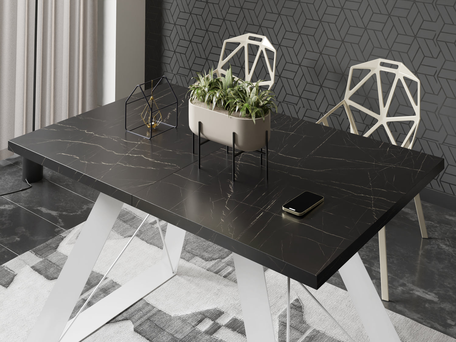 VIELFÄLTIGE OBERFLÄCHEN – Wählen Sie aus verschiedenen Tischplattenoptionen, darunter Holzdekore, Marmoroptik oder Beton. Jede Oberfläche ist strapazierfähig und verleiht Ihrem Esszimmer Eleganz