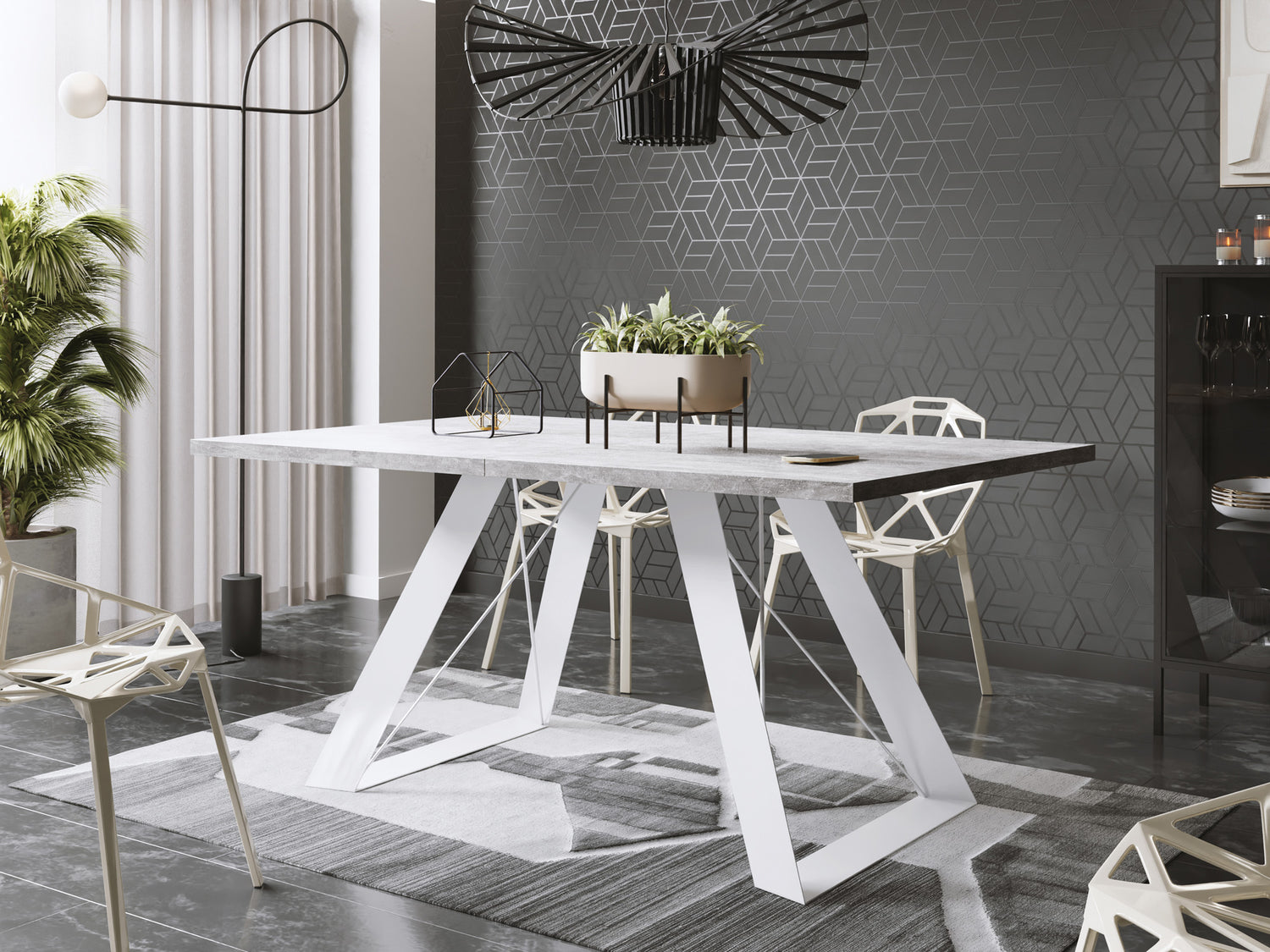 Esstisch Colter Weiß im Modern Stil, Rechteckiger Tisch – Ausziehbar – Pulverbeschichtete Weiße Metallbeine – Made in EU - Betongrau / 140 x 80 cm ist auf Lager und wird versandt, sobald es wieder verfügbar ist