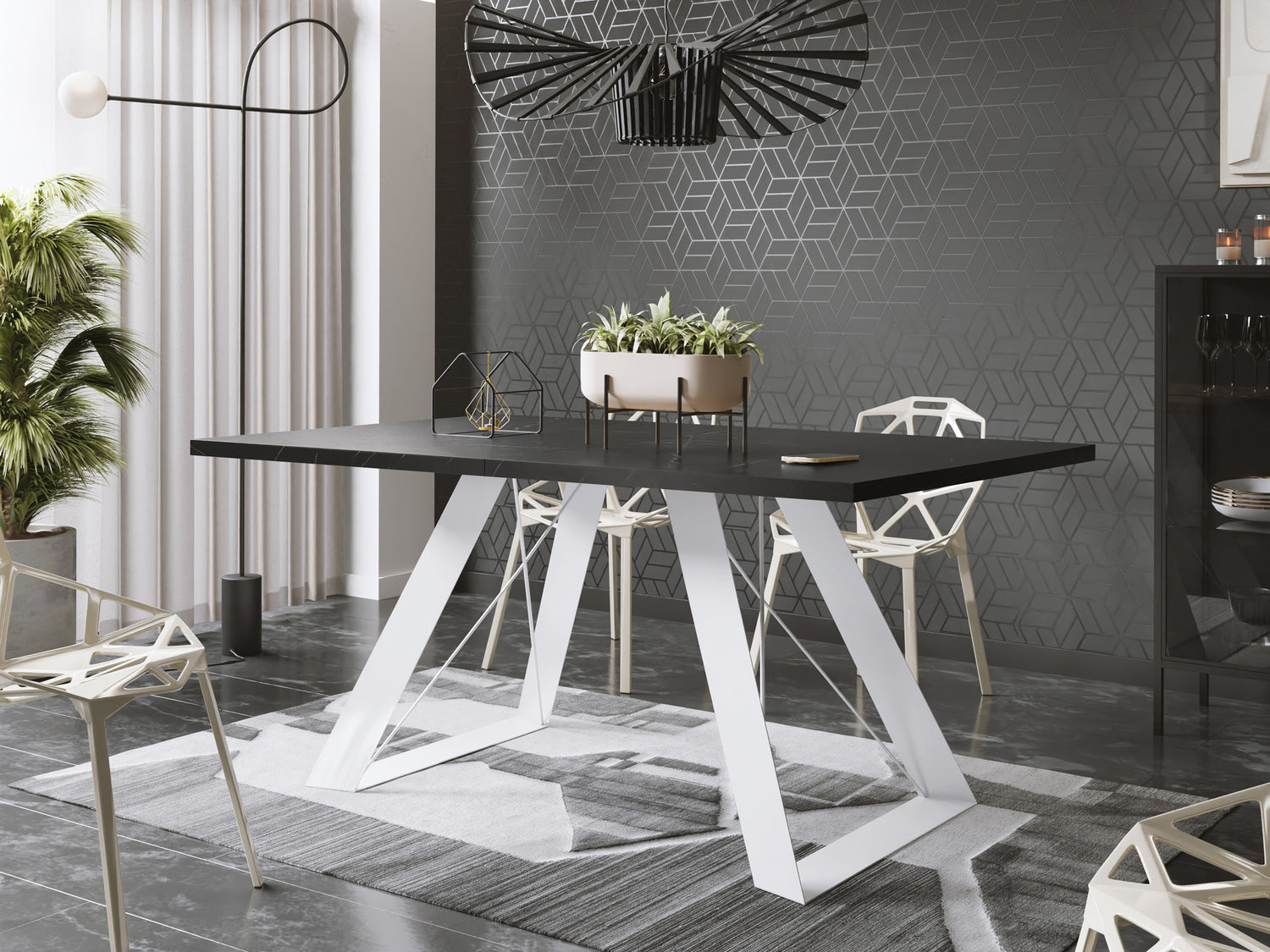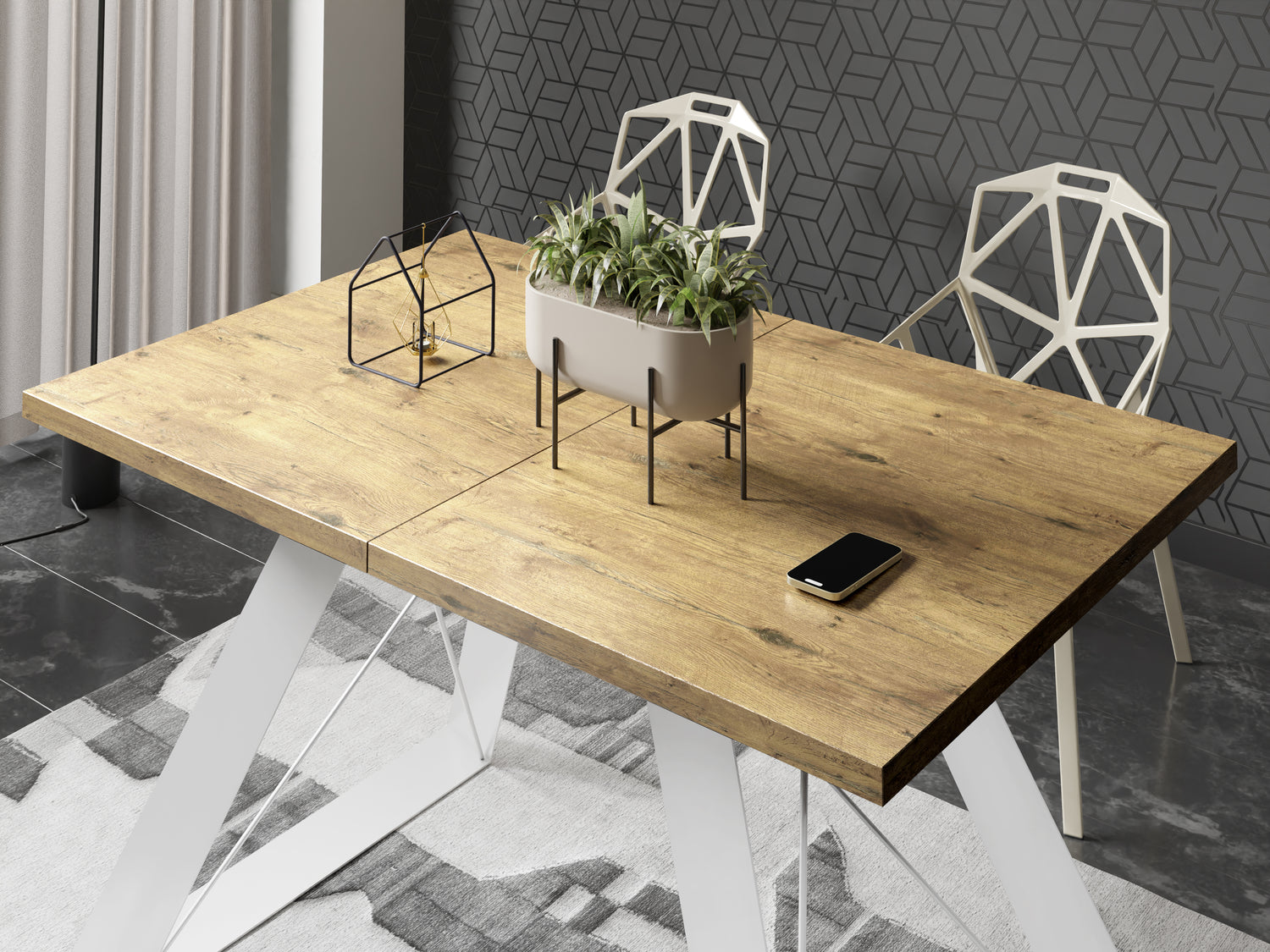 Jeder Tisch ist mit einer Reihe von Oberflächenausführungen erhältlich. Sie haben die Wahl zwischen authentisch wirkenden Holzdekoren, die ein natürliches Ambiente erzeugen, oder der raffinierten Marmoroptik, die Ihrem Esszimmer einen Hauch von Eleganz verleiht. Diese Dekore werden fachmännisch aus hochwertigen Spanplatten hergestellt, die eine lange Lebensdauer und eine hohe Widerstandsfähigkeit gegen die täglichen Belastungen gewährleisten.