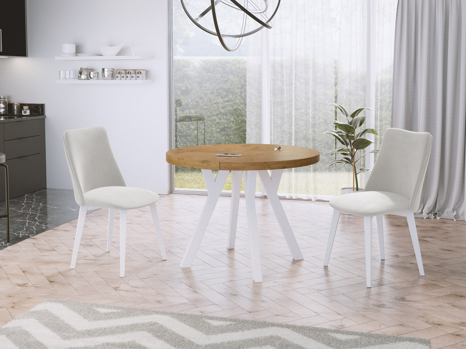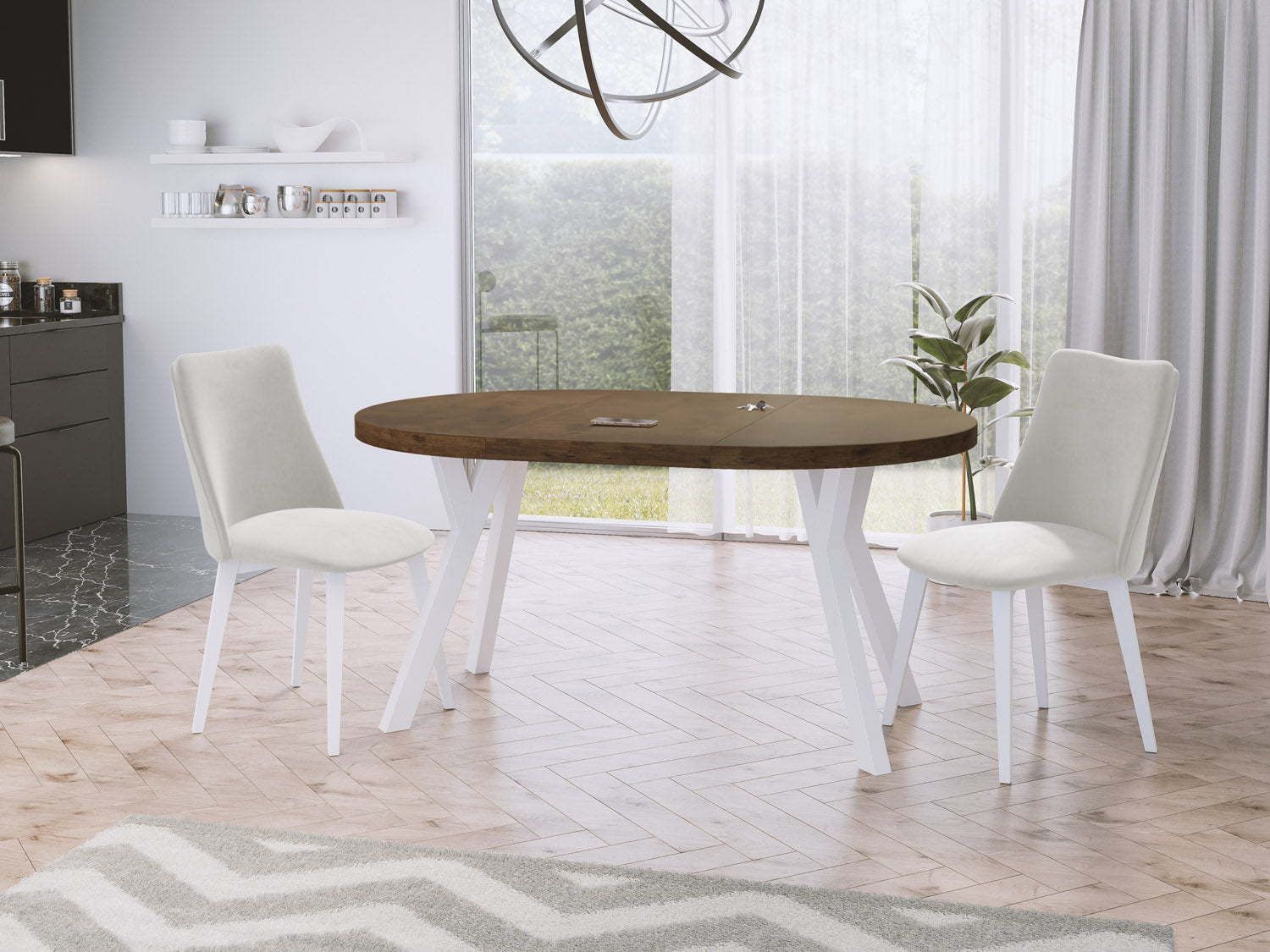 Erleben Sie moderne Eleganz mit unserem ausziehbaren Esstisch, der Funktionalität und stilvolles Design vereint.