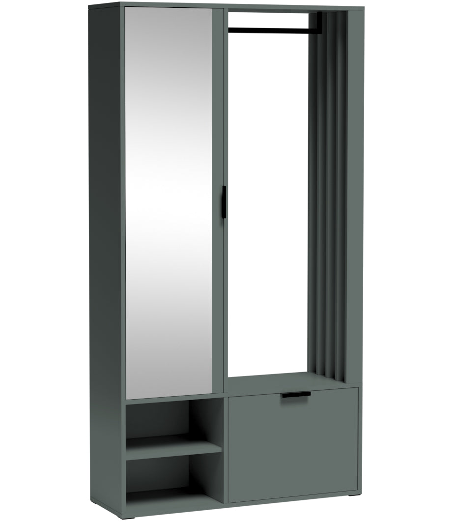 Garderoben-Set mit Spiegel & Sitzbank – Kompaktgarderobe 100 cm mit Kleiderstange, Schuhablage, Stauraum – Links oder Rechts – Flurgarderobe für Diele – Garderobenschrank Lena Uni