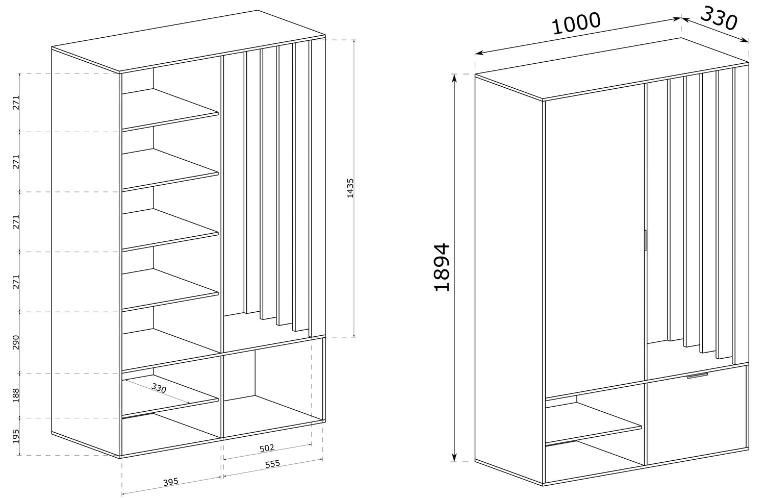 100/189/33 cm (Breite/Höhe/Tiefe)