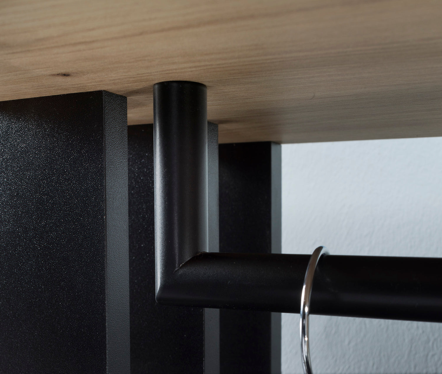 – Seitliches Fach mit Kleiderstange – ideal für Jacken oder Mäntel