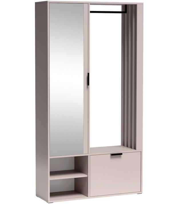 Garderoben-Set mit Spiegel & Sitzbank – Kompaktgarderobe 100 cm mit Kleiderstange, Schuhablage, Stauraum – Links oder Rechts – Flurgarderobe für Diele – Garderobenschrank Lena Uni - Beige Kaschmir / 100 cm ist auf Lager und wird versandt, sobald es wieder verfügbar ist