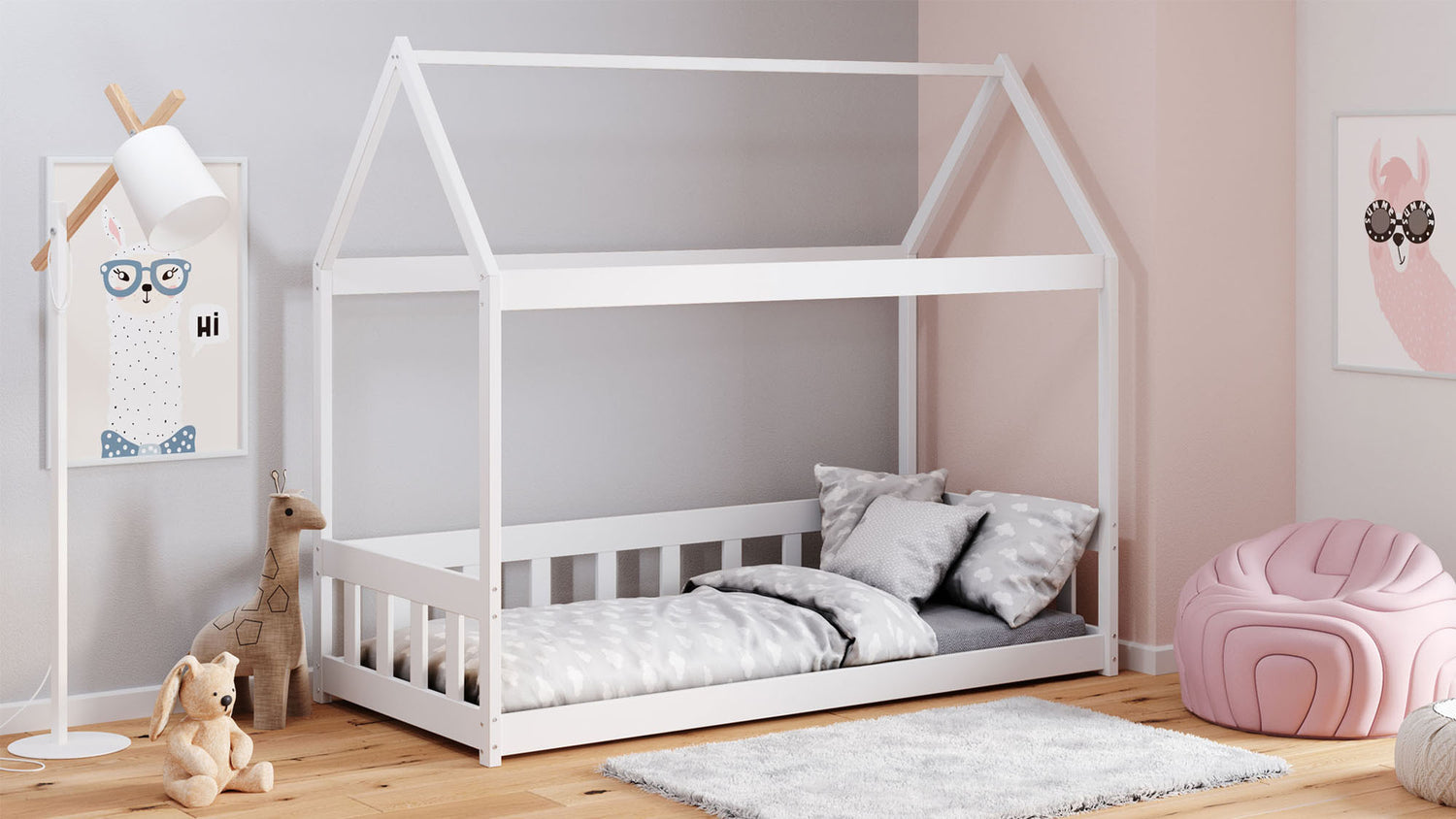 KIEFER-MASSIVHOLZ – NATÜRLICH UND LANGLEBIG – Das komplette Hausbett besteht aus hochwertigem, massivem Kiefernholz – robust, stabil und nachhaltig. Das Kinderbett ist mit einer kindersicheren, wasserbasierten Farbe lackiert – völlig schadstofffrei und geruchsneutral. Ideal für die gesunde Schlafumgebung von Kleinkindern