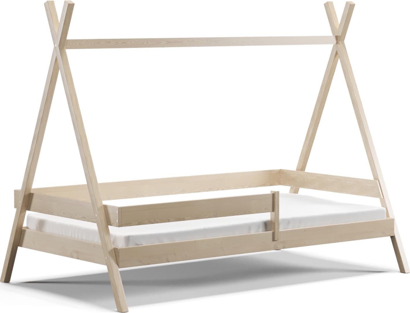 KIEFER-MASSIVHOLZ – NATÜRLICH UND LANGLEBIG – Das komplette Tipi Bett besteht aus hochwertigem, massivem Kiefernholz – robust, stabil und nachhaltig. Das Kinderbett ist mit einer kindersicheren, wasserbasierten Farbe lackiert – völlig schadstofffrei und geruchsneutral. Ideal für die gesunde Schlafumgebung von Kleinkindern
