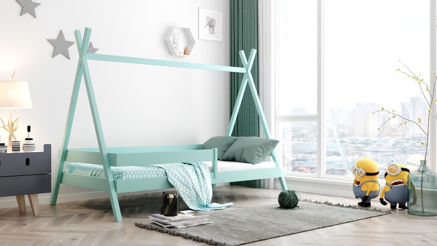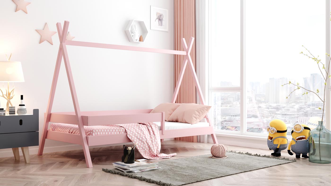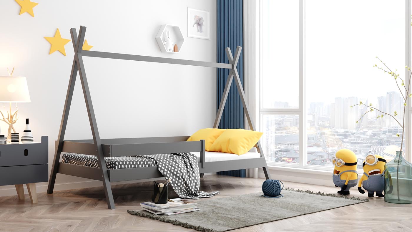 Ein Kinderbett soll mehr sein als nur ein Schlafplatz – es soll Sicherheit, Geborgenheit und zugleich Raum für Fantasie bieten. Das Tipi Bett der WFL GROUP erfüllt genau diesen Anspruch: liebevoll gestaltet, funktional durchdacht und aus hochwertigem Kiefer-Massivholz gefertigt. Durch die Konstruktion und das stilvolle Tipi-Design wird das Bett zu einem sicheren Rückzugsort.