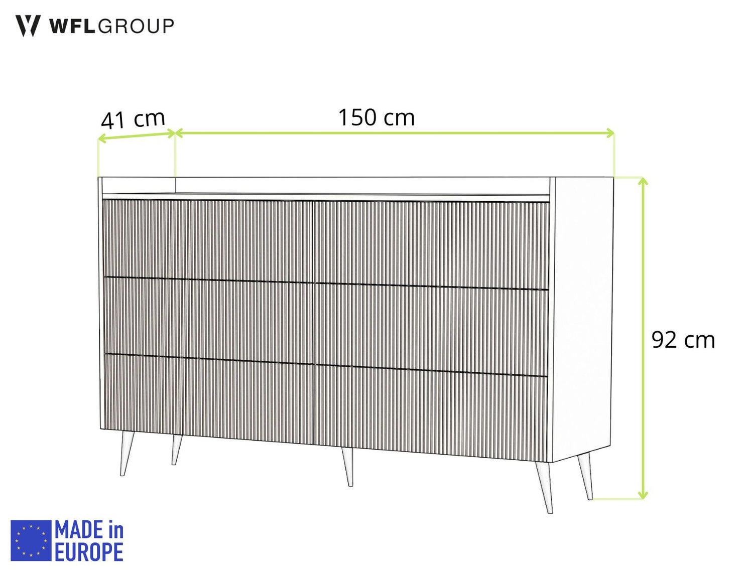 - Kommode 6 Schubladen: 150 x 92 x 41 cm