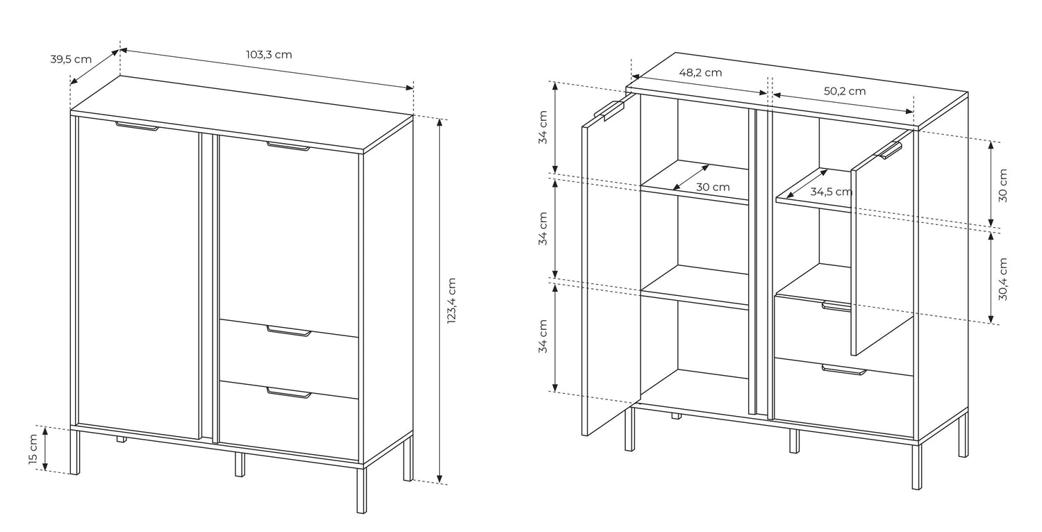 - Highboard 2d2s: 103,3/123,4/39,5 cm