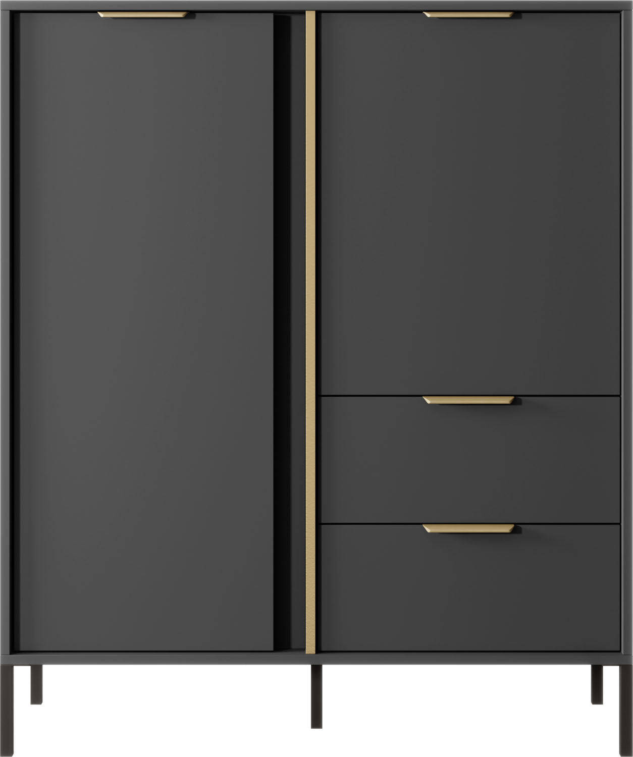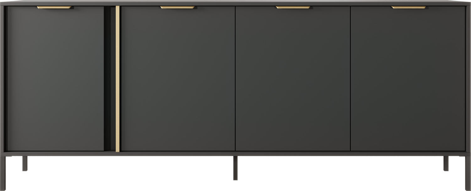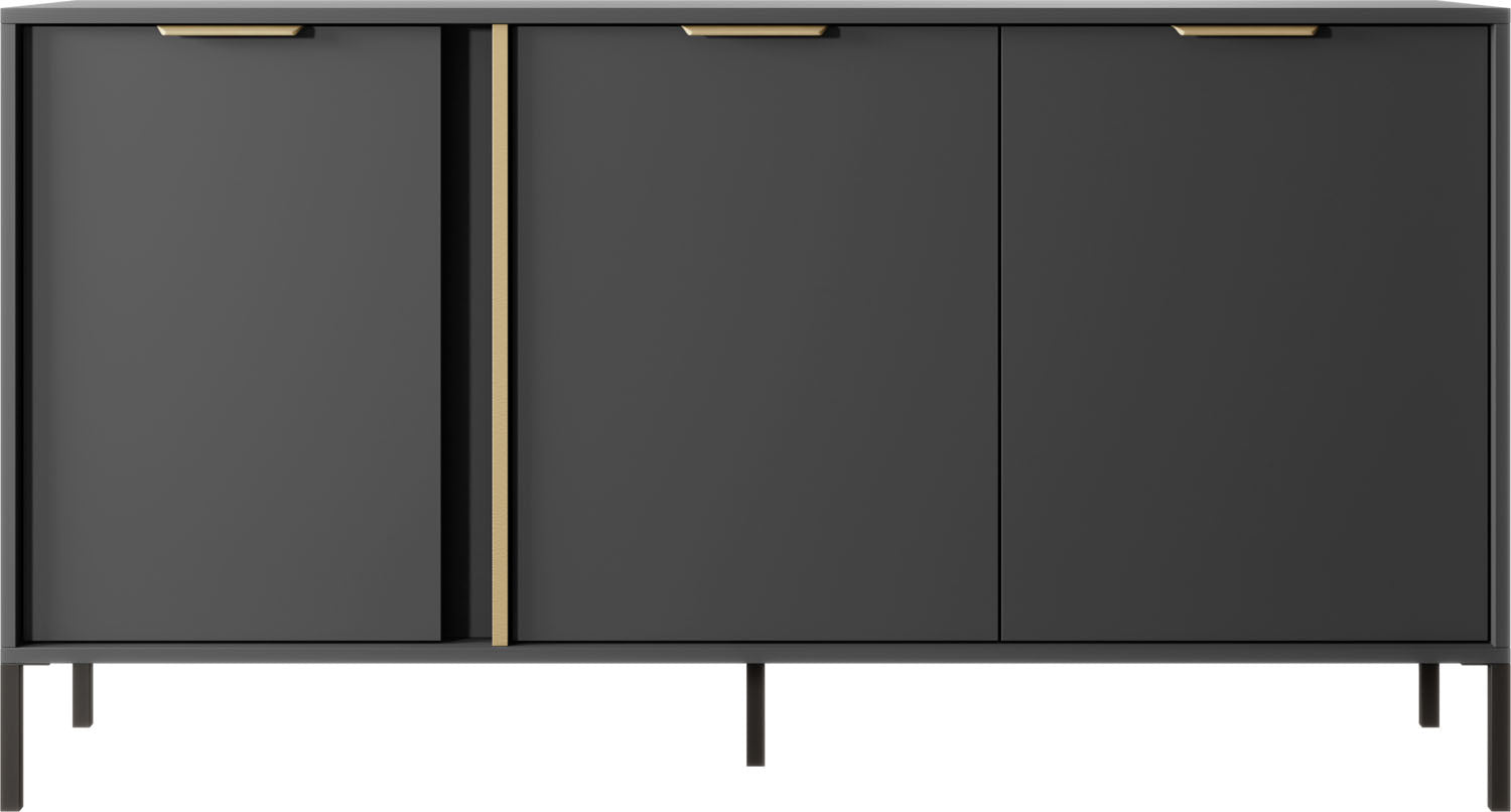 Bringen Sie stilvolle Eleganz in Ihr Wohnzimmer – mit der Möbelserie NOX in edlem Anthrazit mit goldfarbenen Details. Die klare Linienführung, integrierten Griffleisten und schlanken Metallfüße machen jedes Möbelstück zum modernen Highlight für Wohn- und Essbereiche.